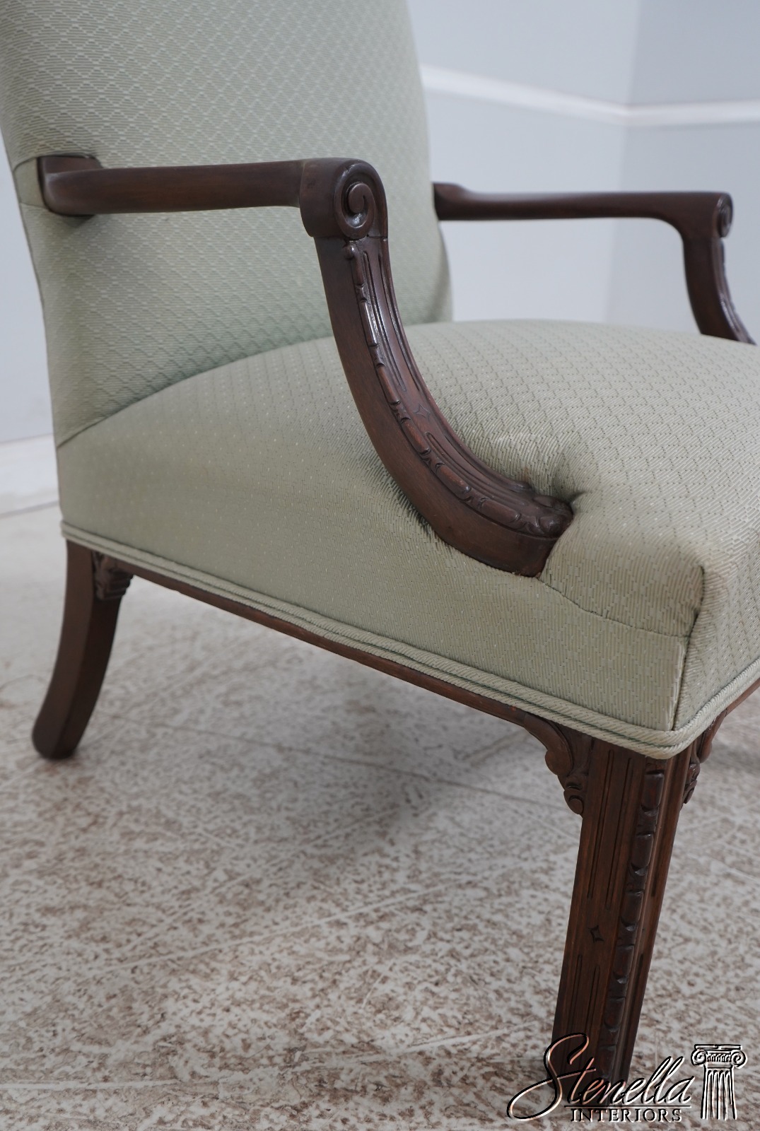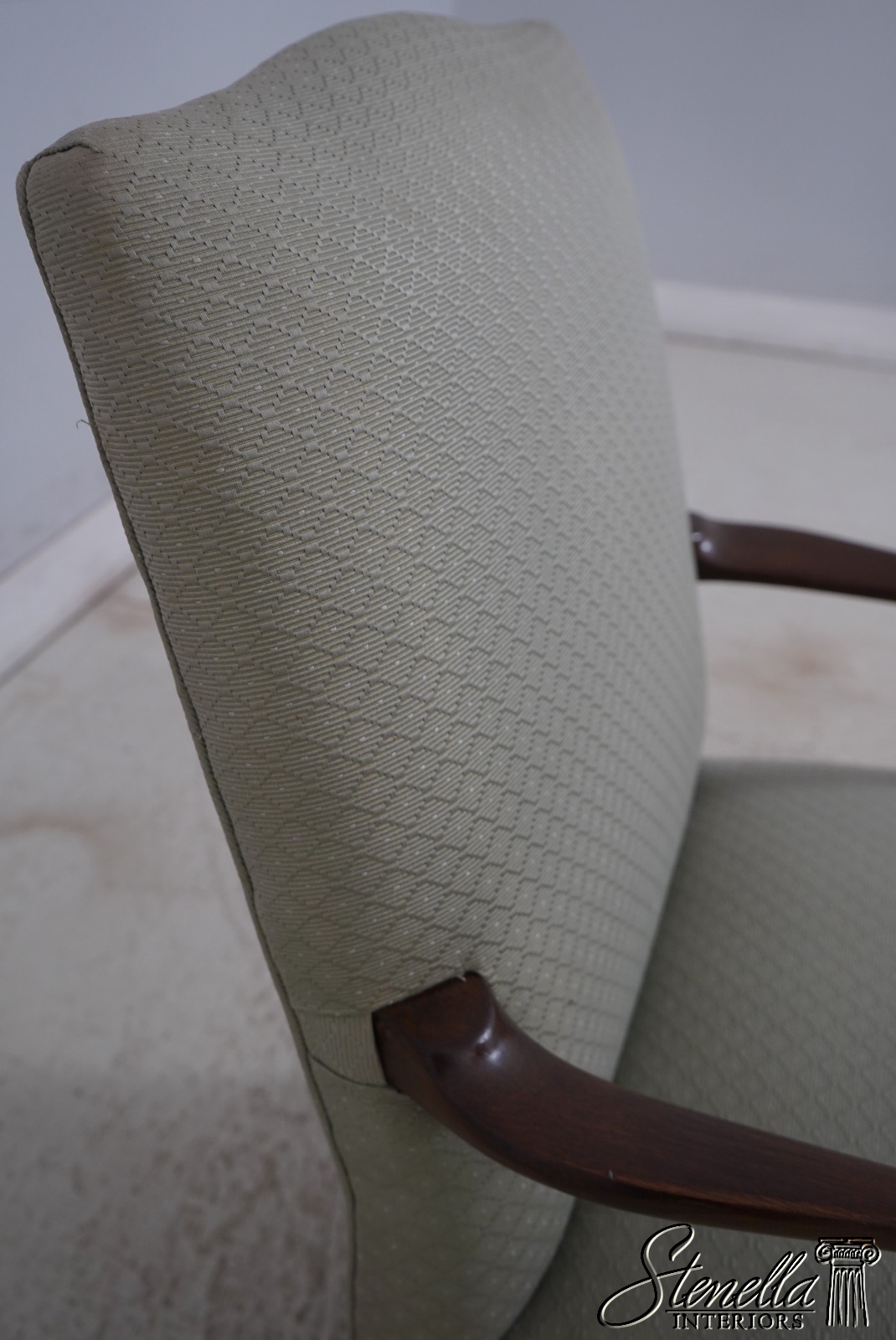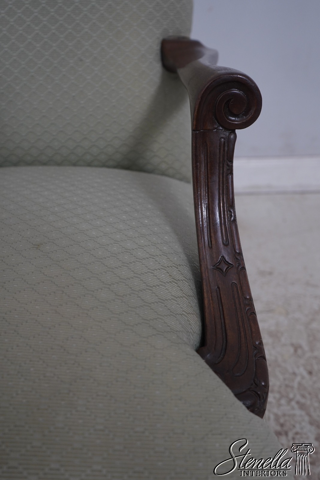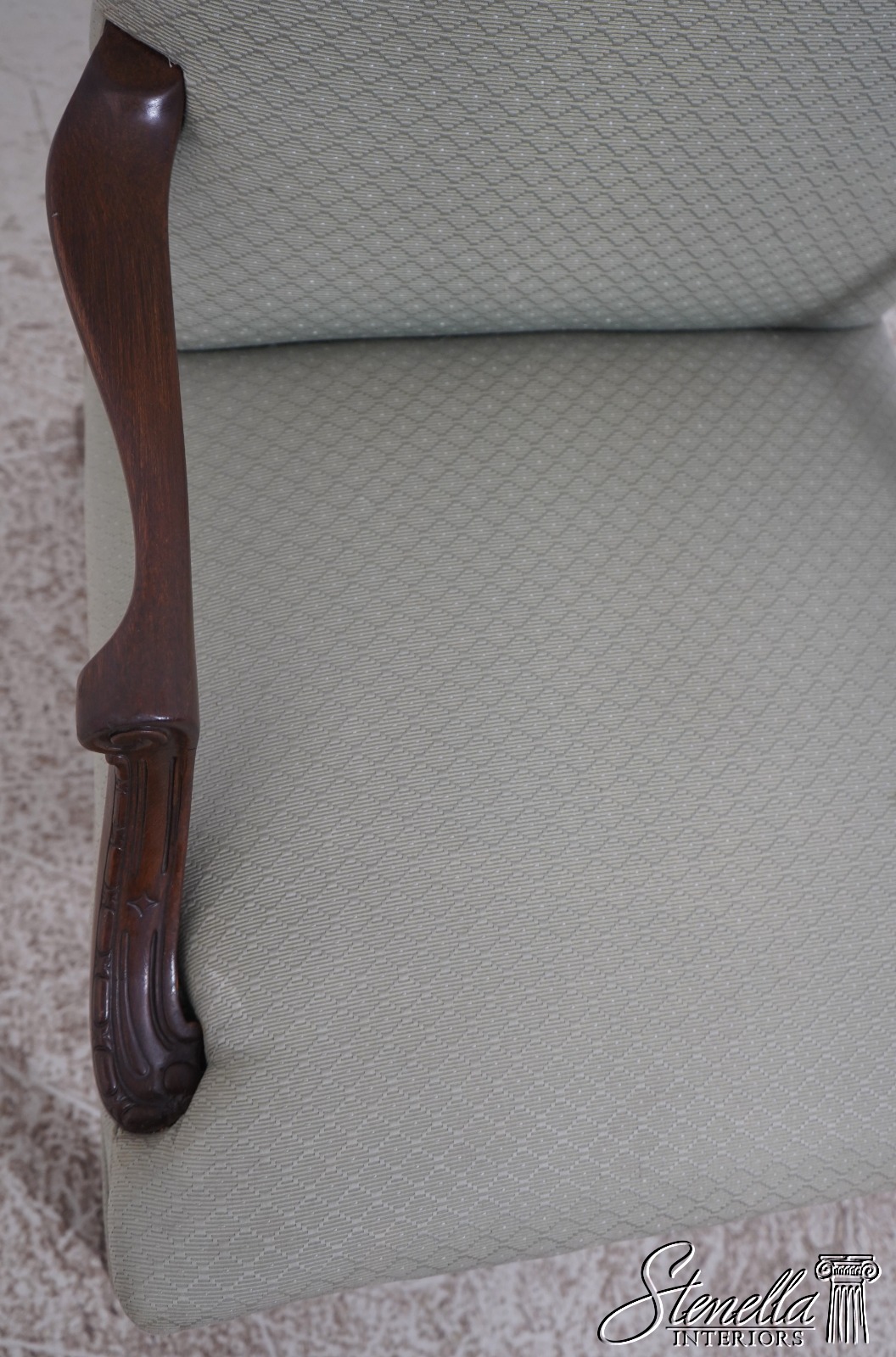 Details: Mahogany Fine Carved Details Quality Construction 18 C. Design Chippendale Style Traditional Style Nice Older Vintage Chairs Scroll Arms Curved Back Legs Un-Marked As To Manufacture Professionally Reupholstered Approx. 10 Years Ago Offered @ Fraction Original Retail Cost