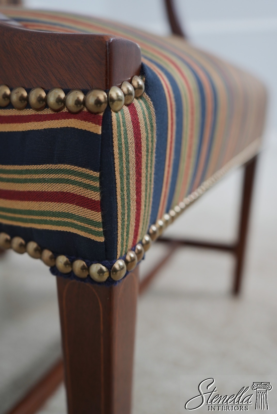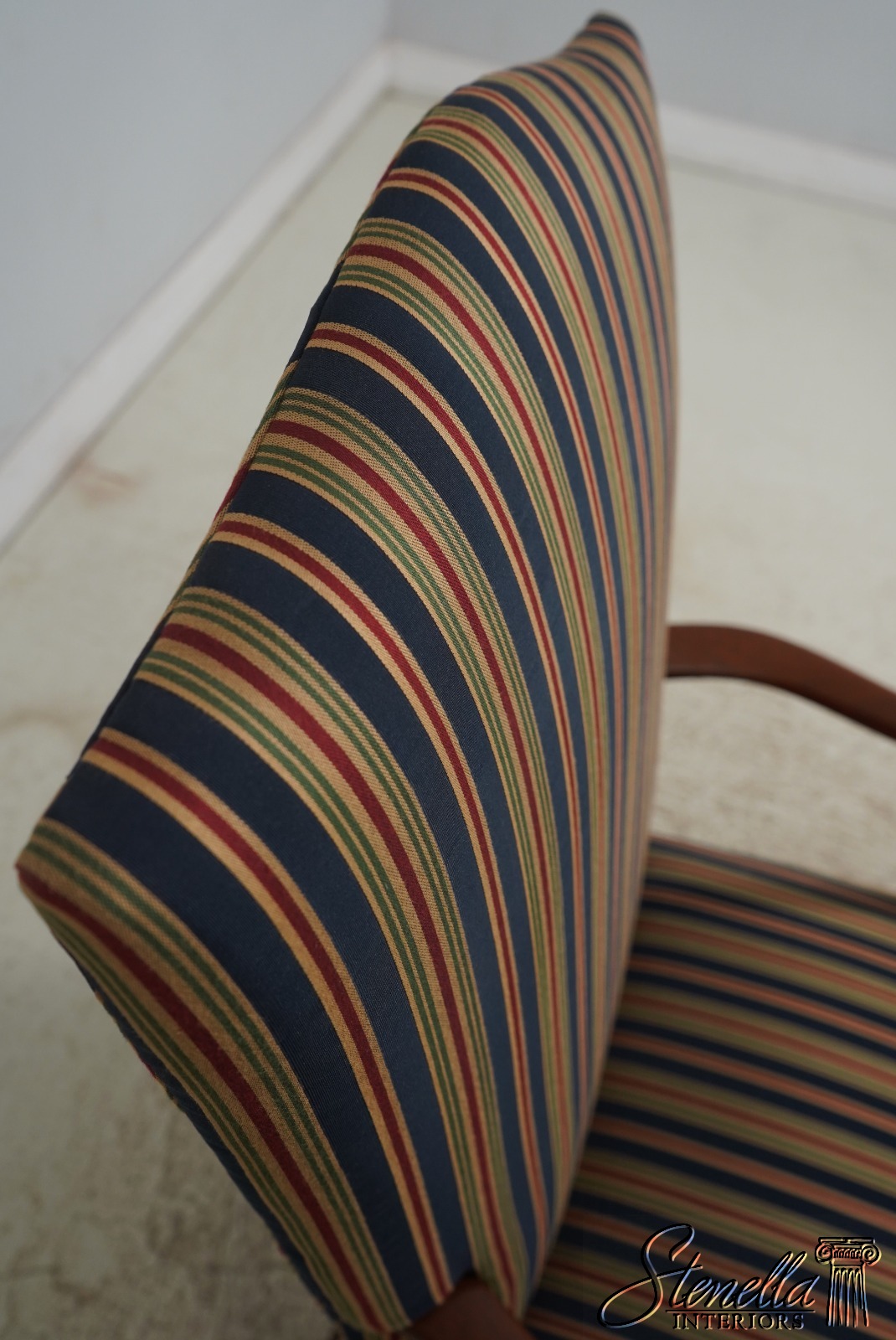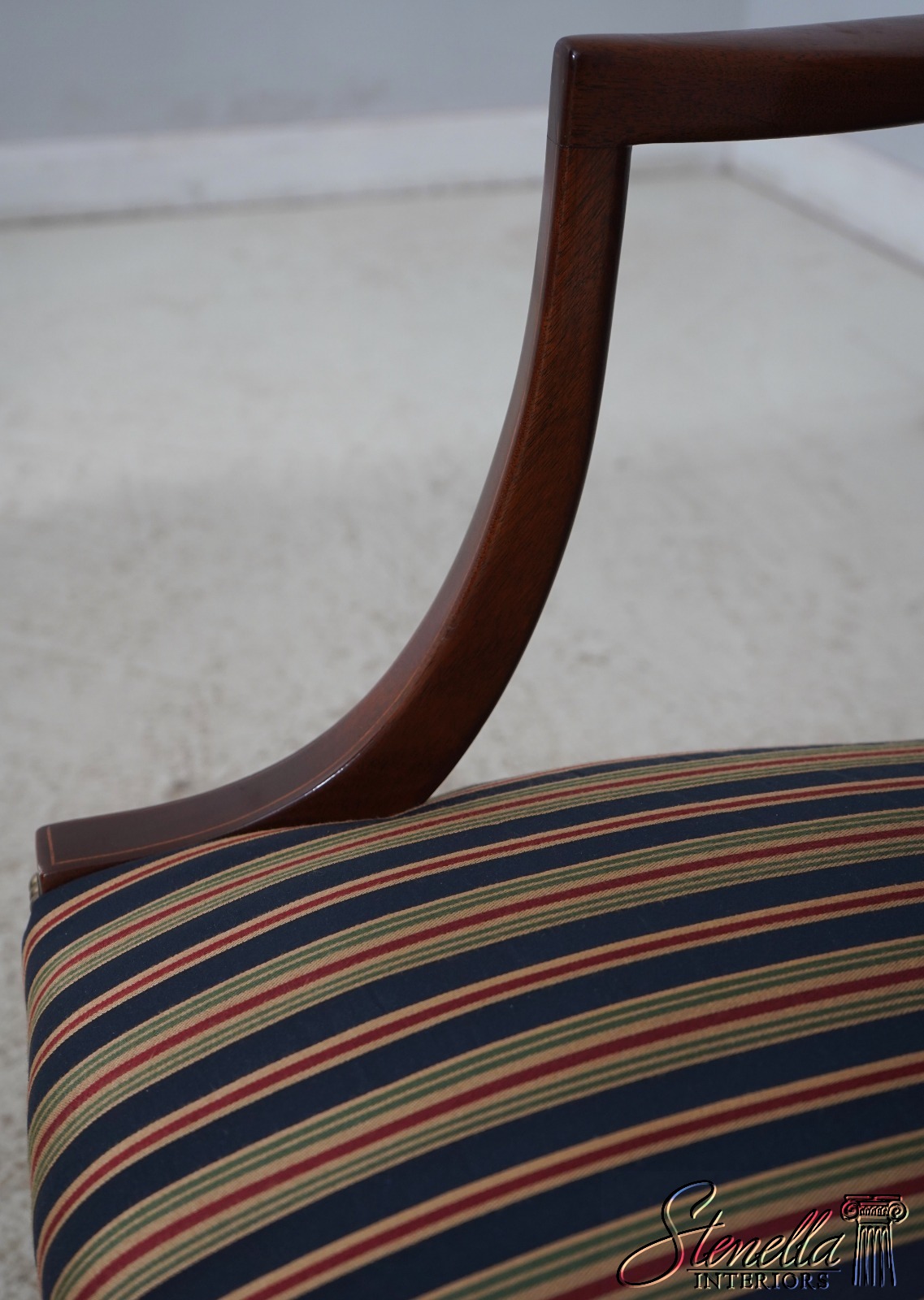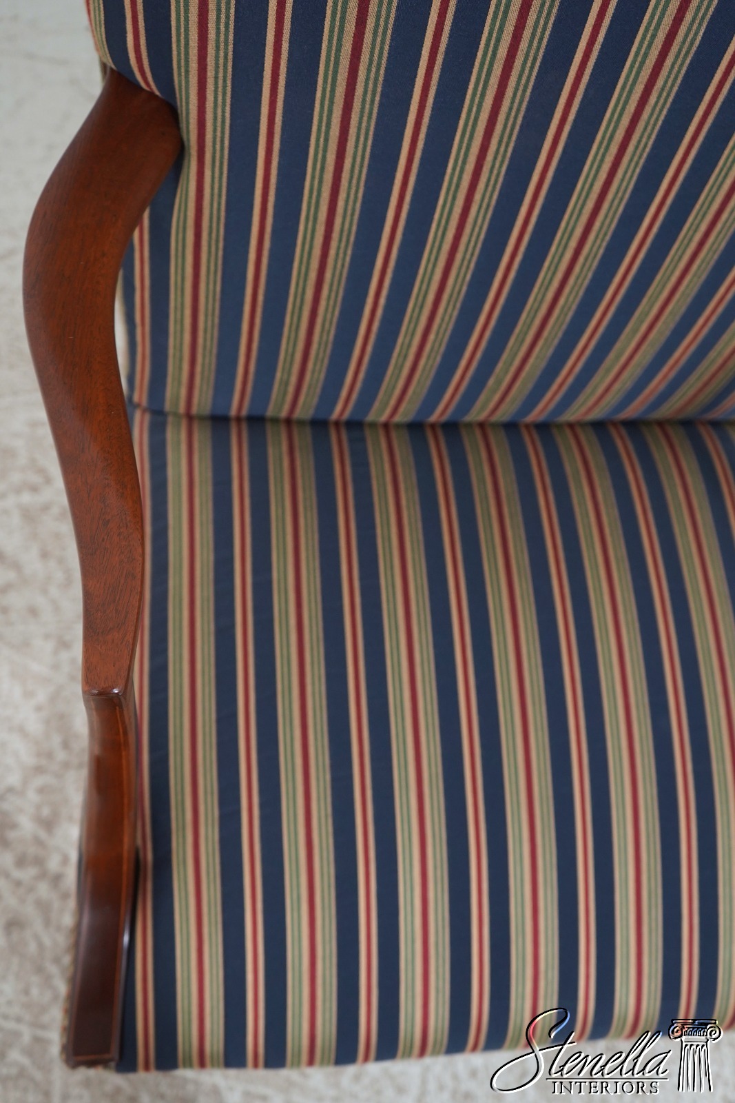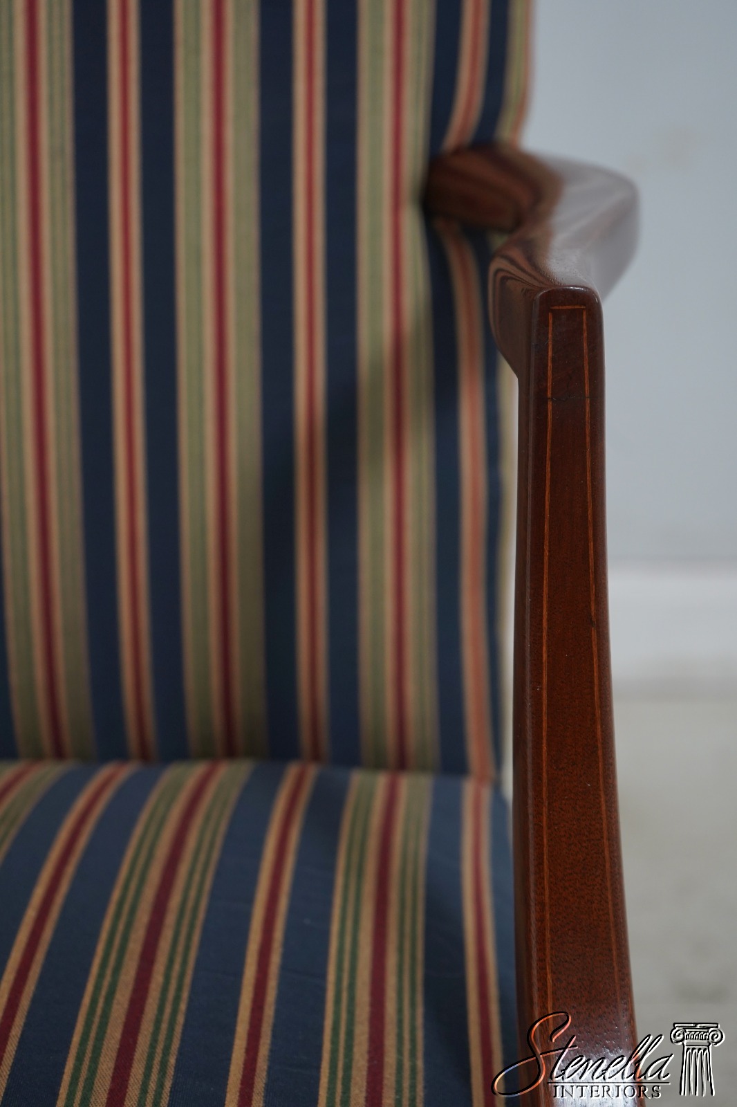 Details: Colonial Williamsburg CW-13 High Quality Construction Nice Inlay Work Professionally Reupholstered Approx. 2 Years Ago In Quality Striped Upholstery