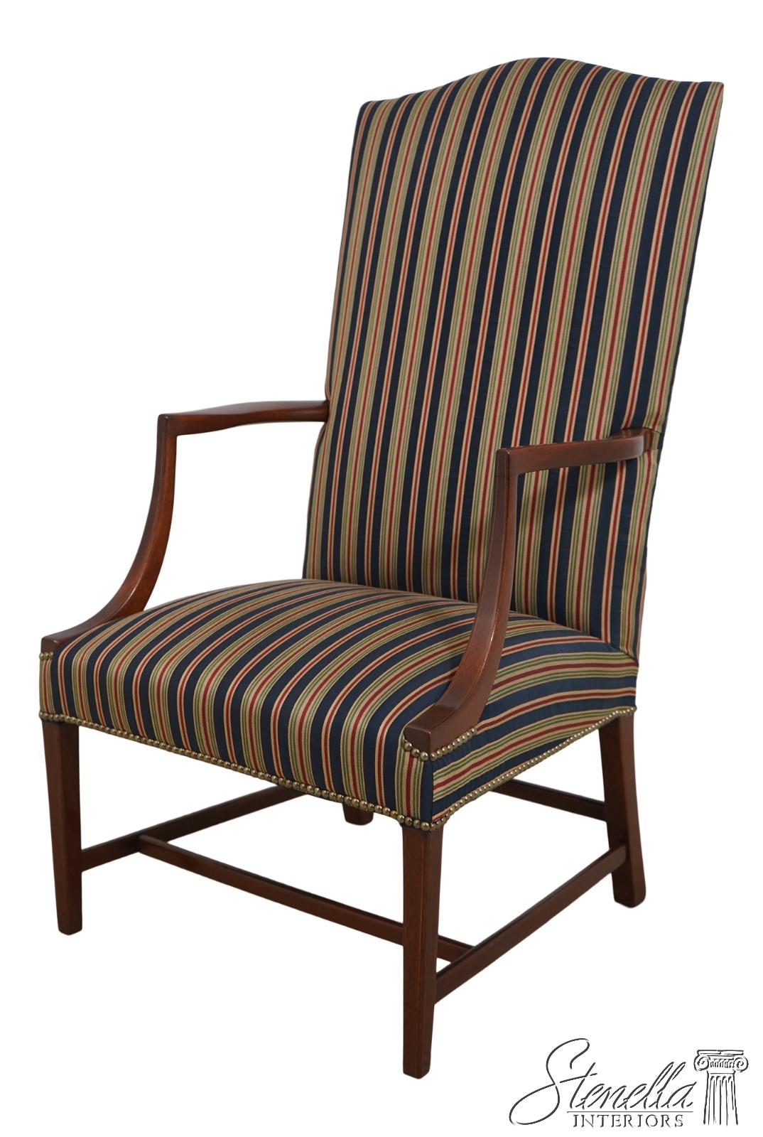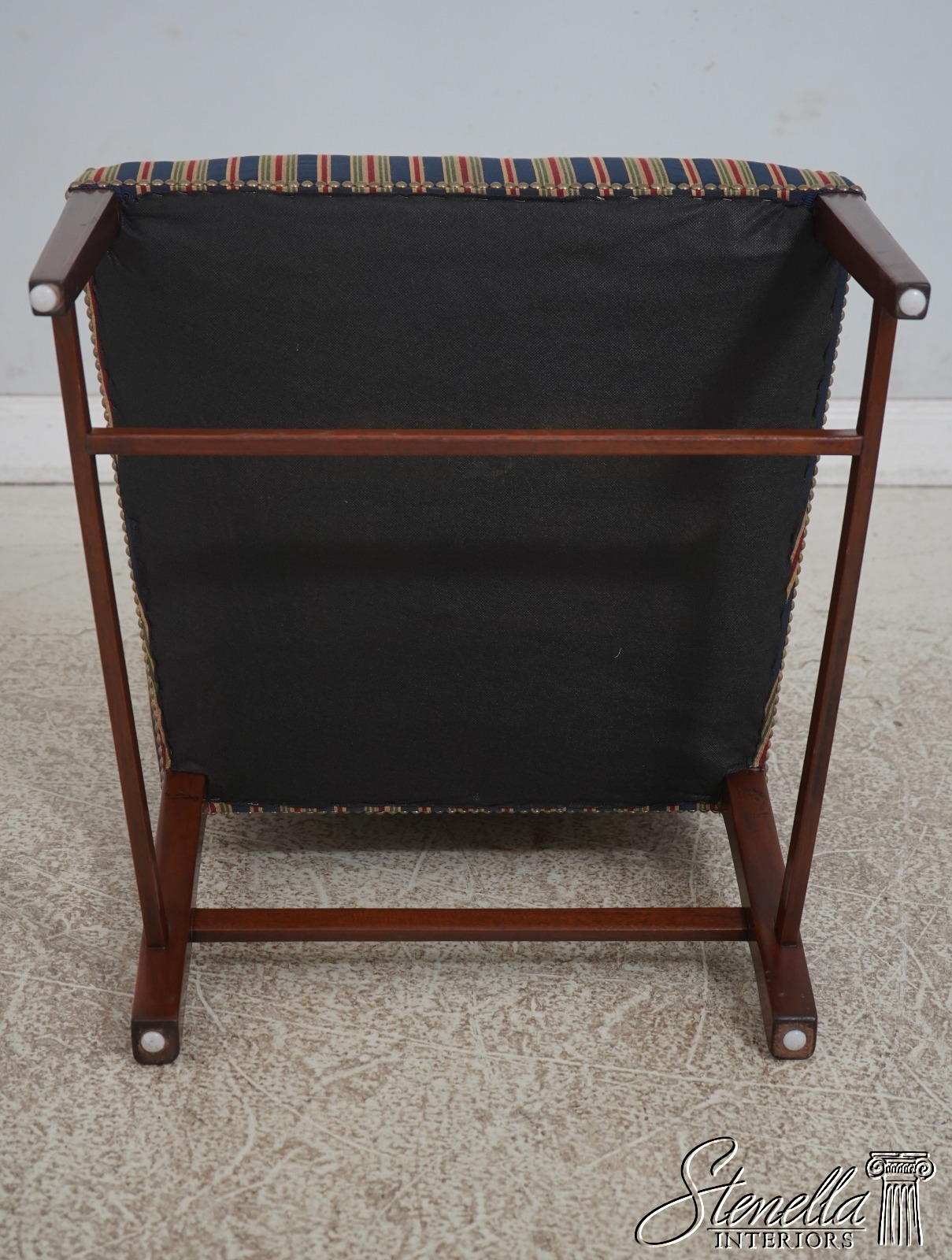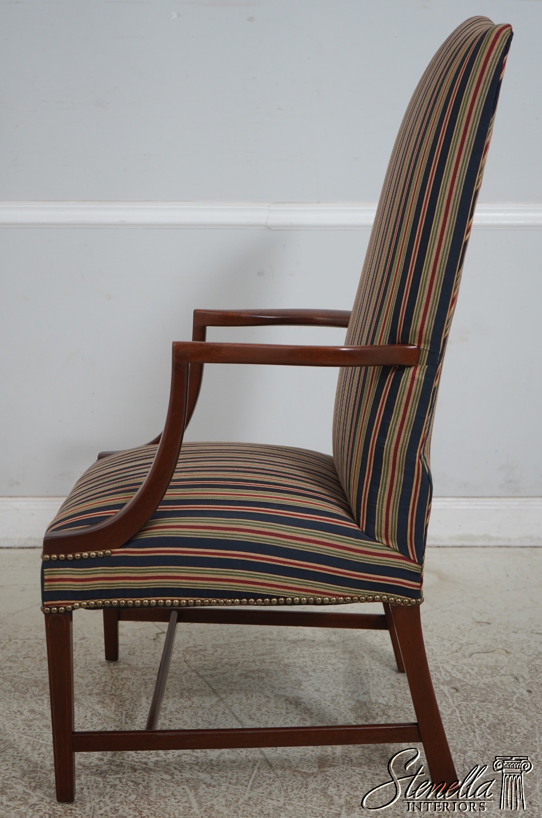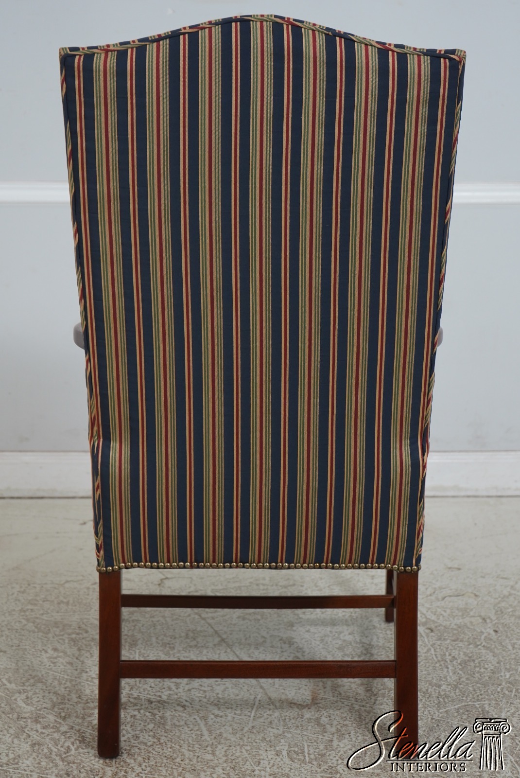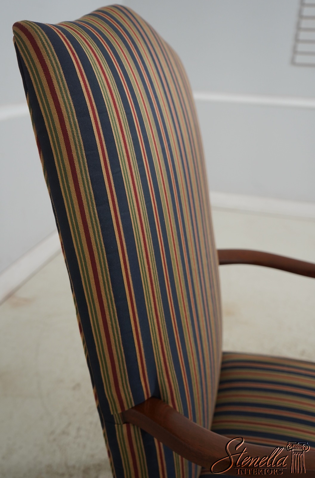Details: Colonial Williamsburg CW-13 High Quality Construction Nice Inlay Work Professionally Reupholstered Approx. 2 Years Ago In Quality Striped Upholstery