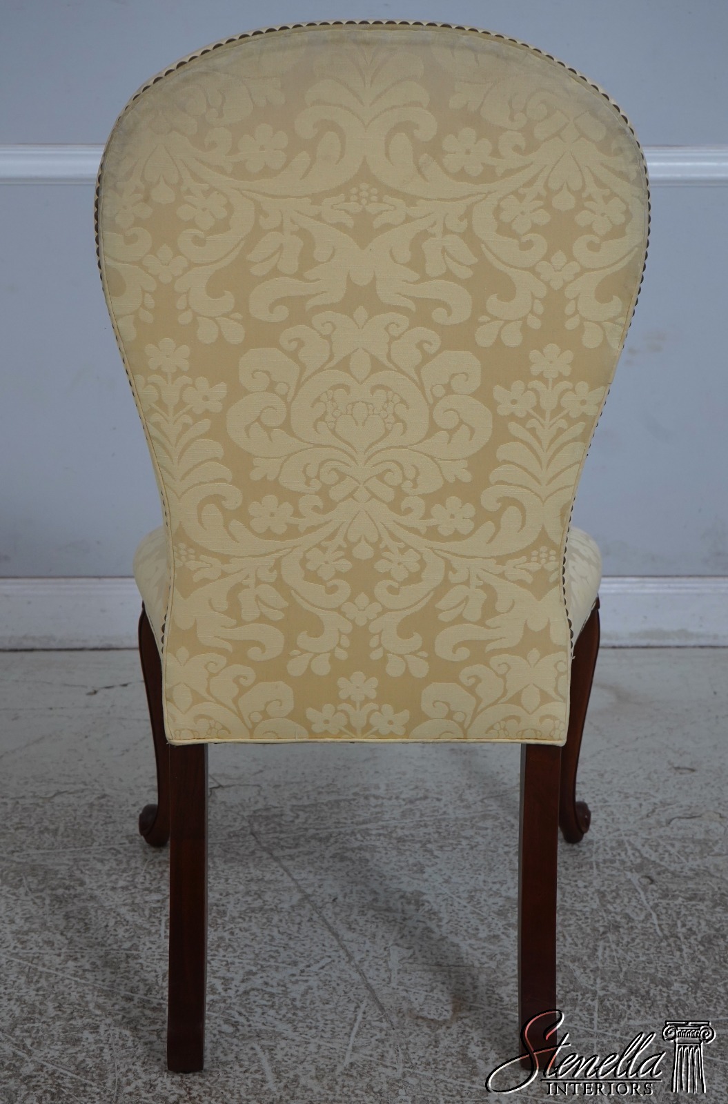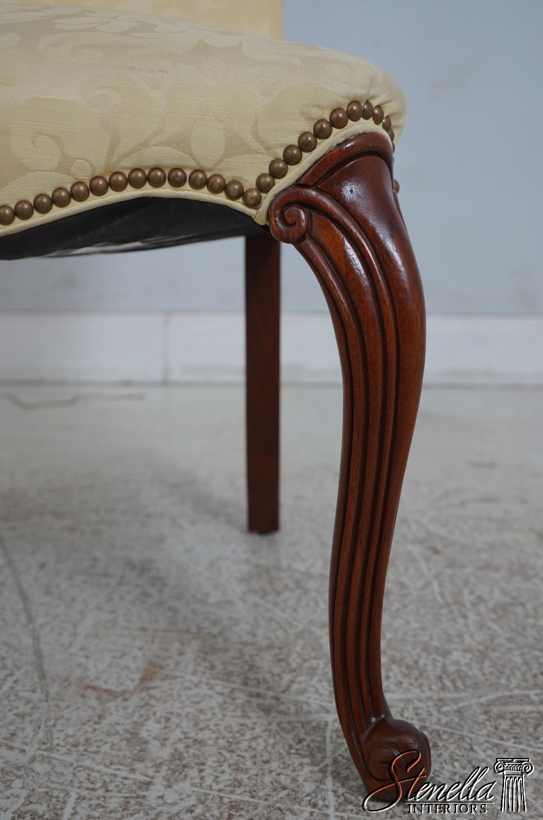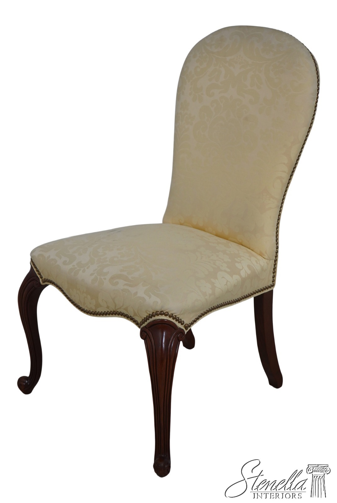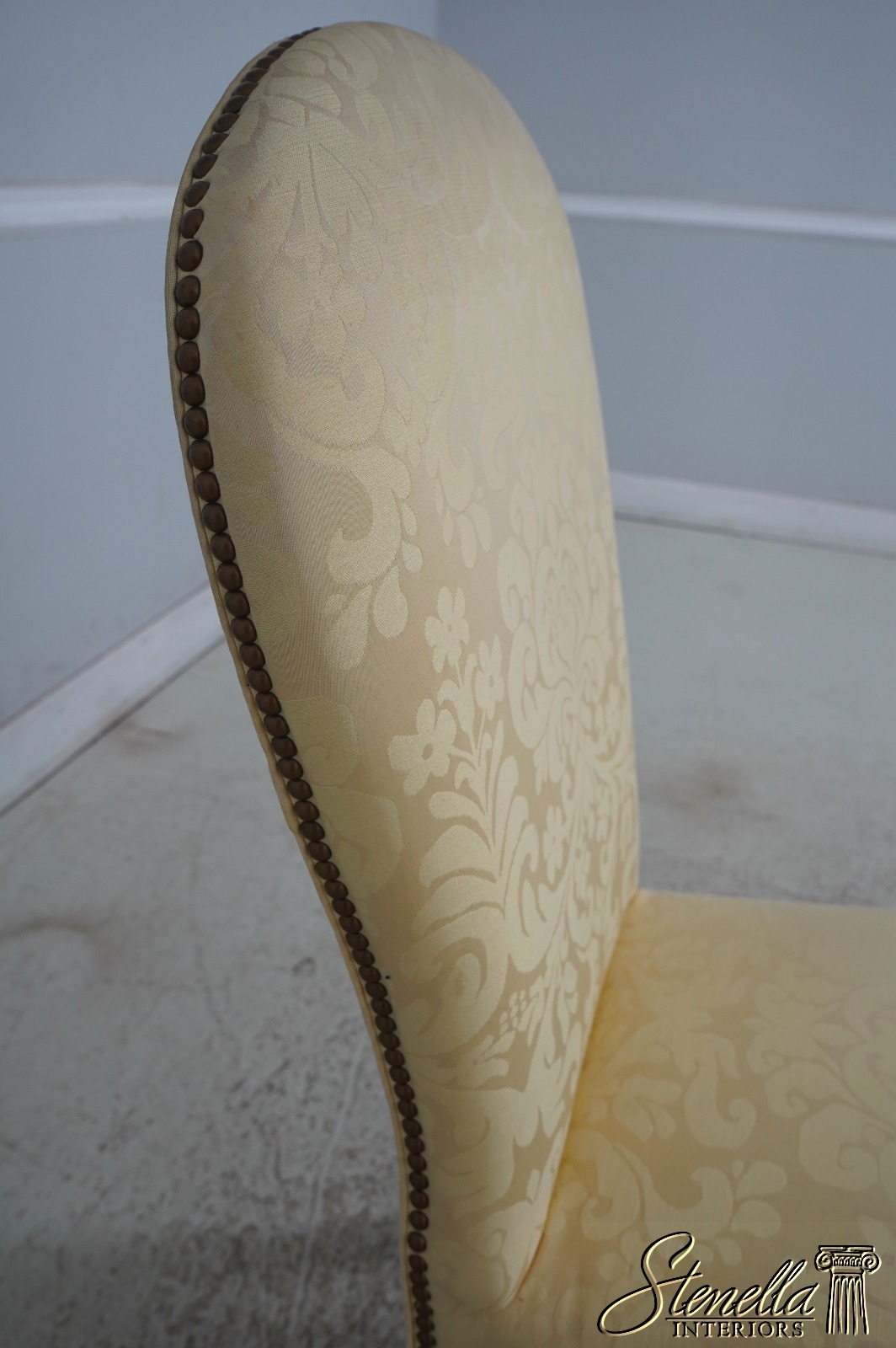 67907: HICKORY CHAIR CO Damask Upholstered Scrolled Leg Chair