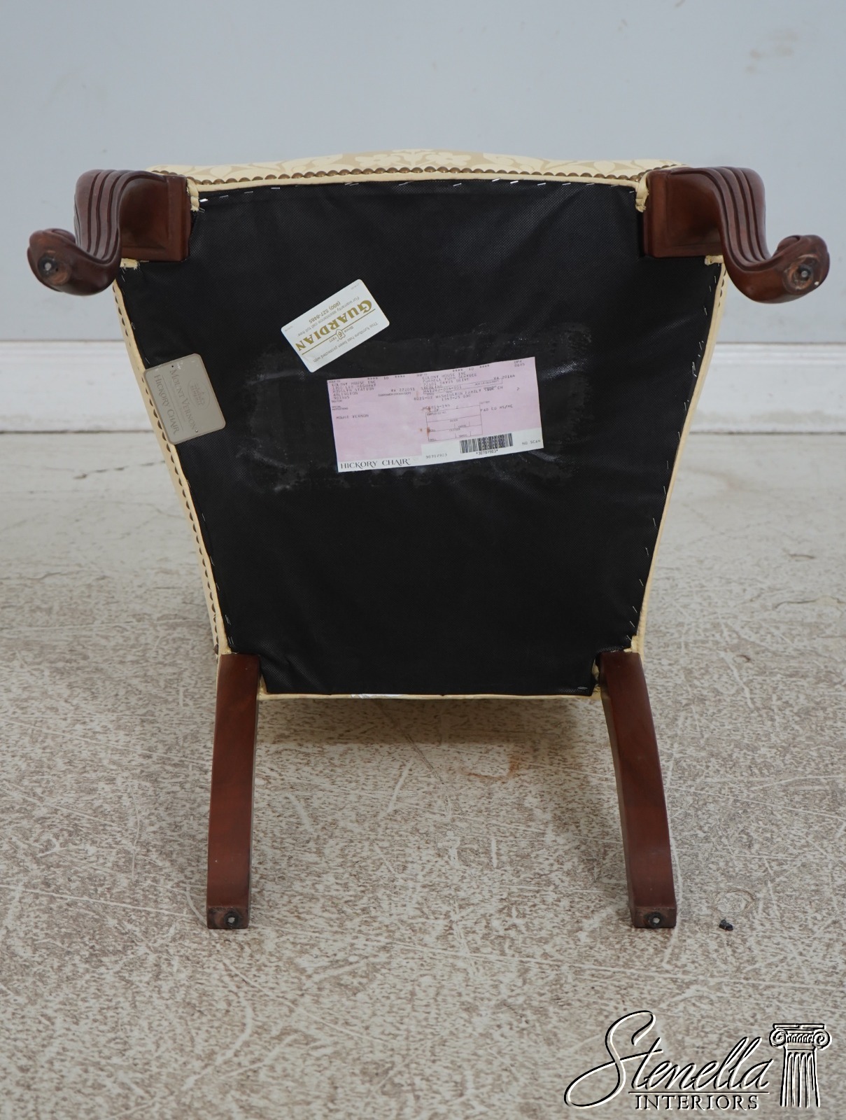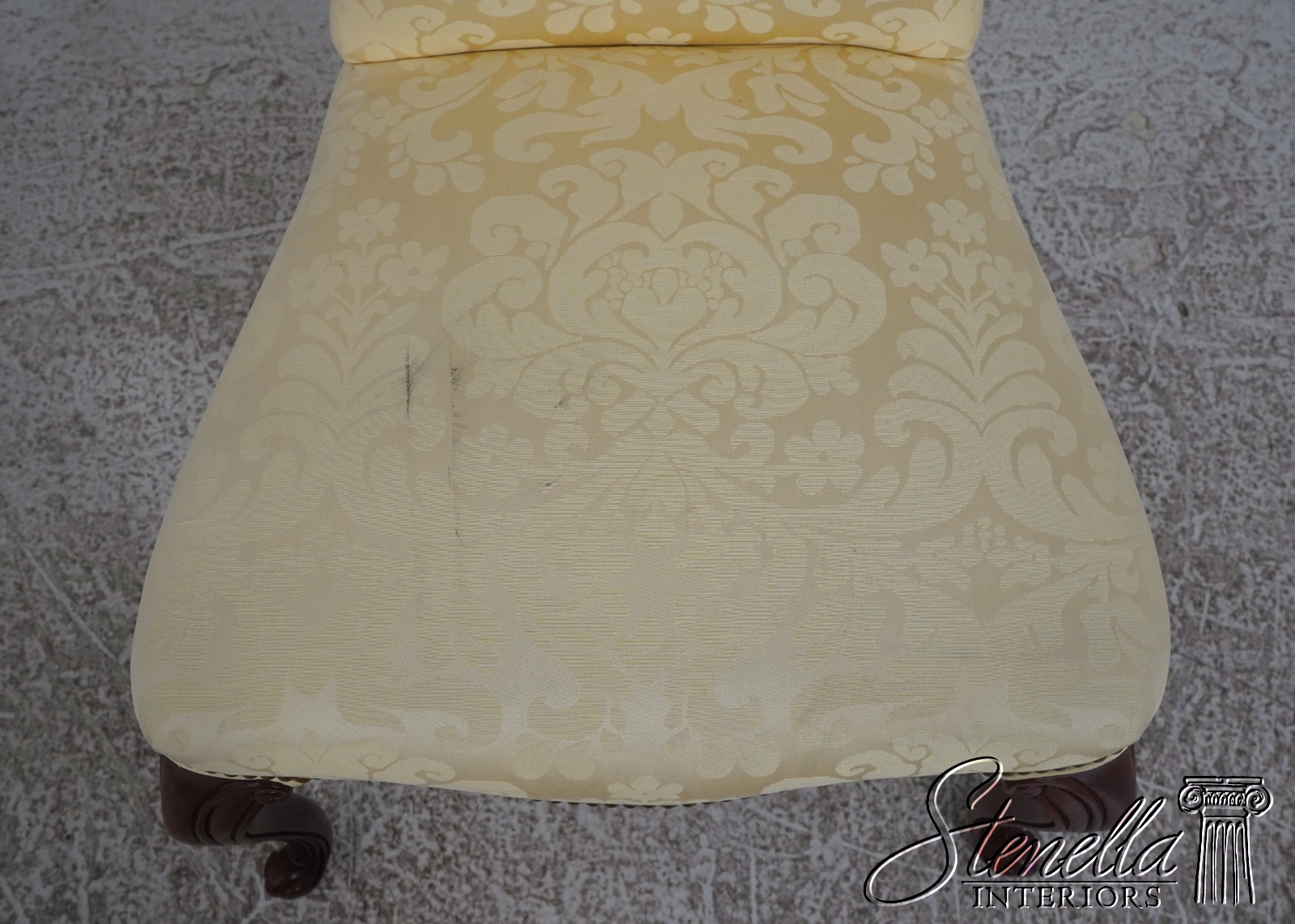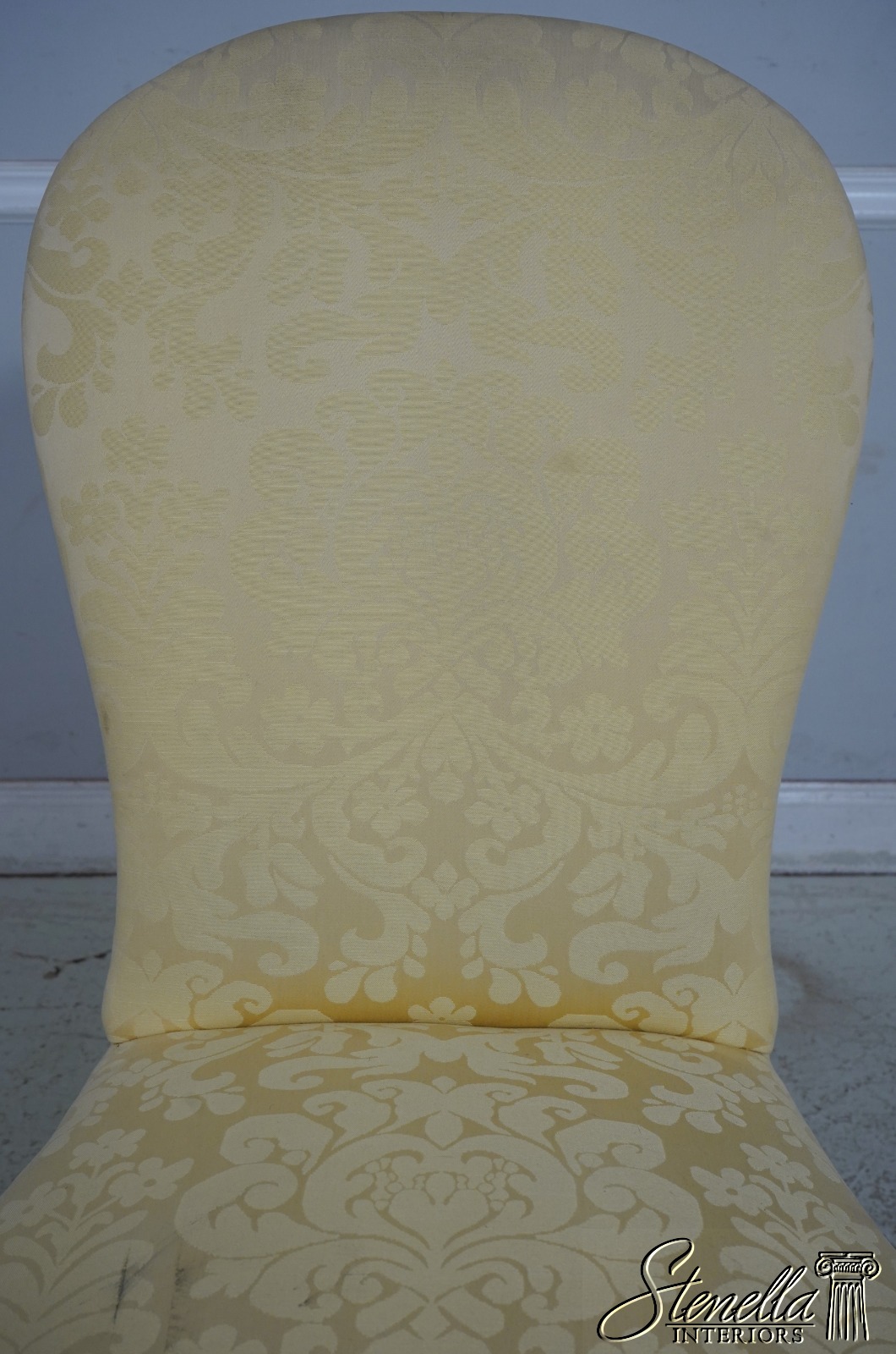 67907: HICKORY CHAIR CO Damask Upholstered Scrolled Leg Chair