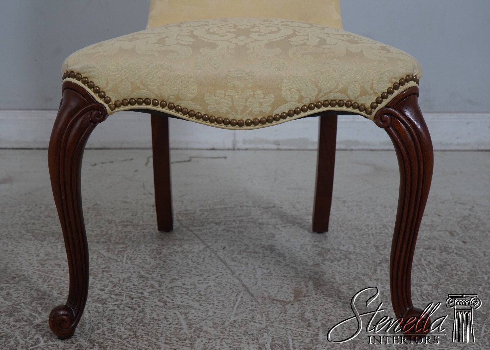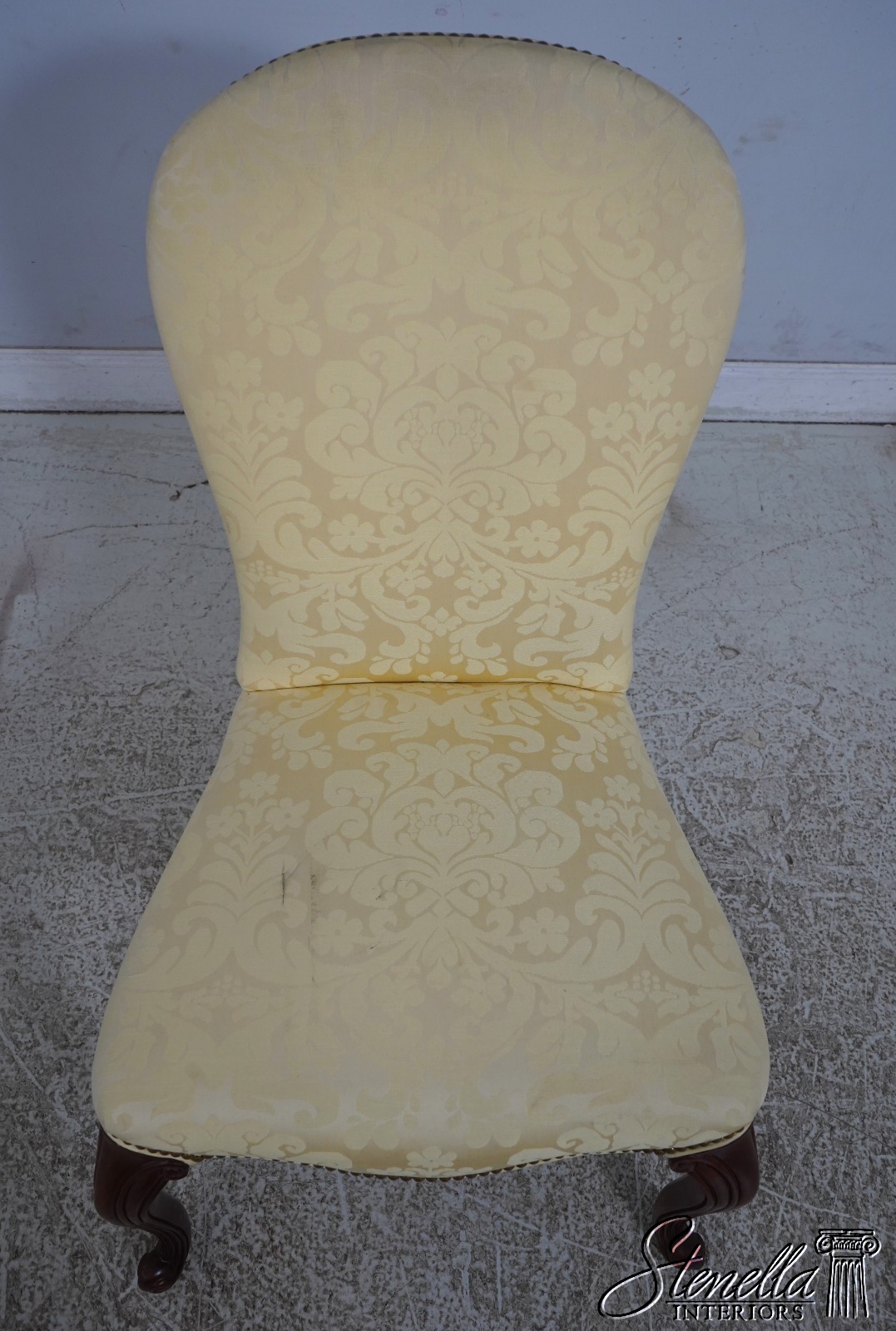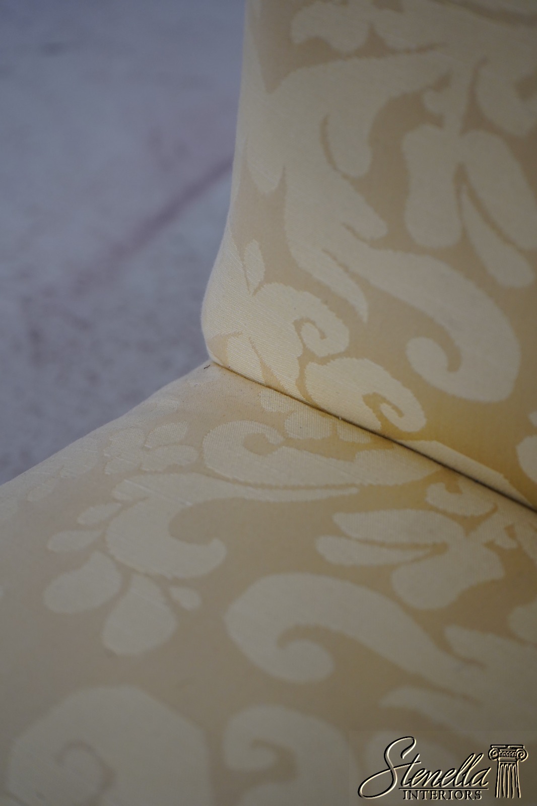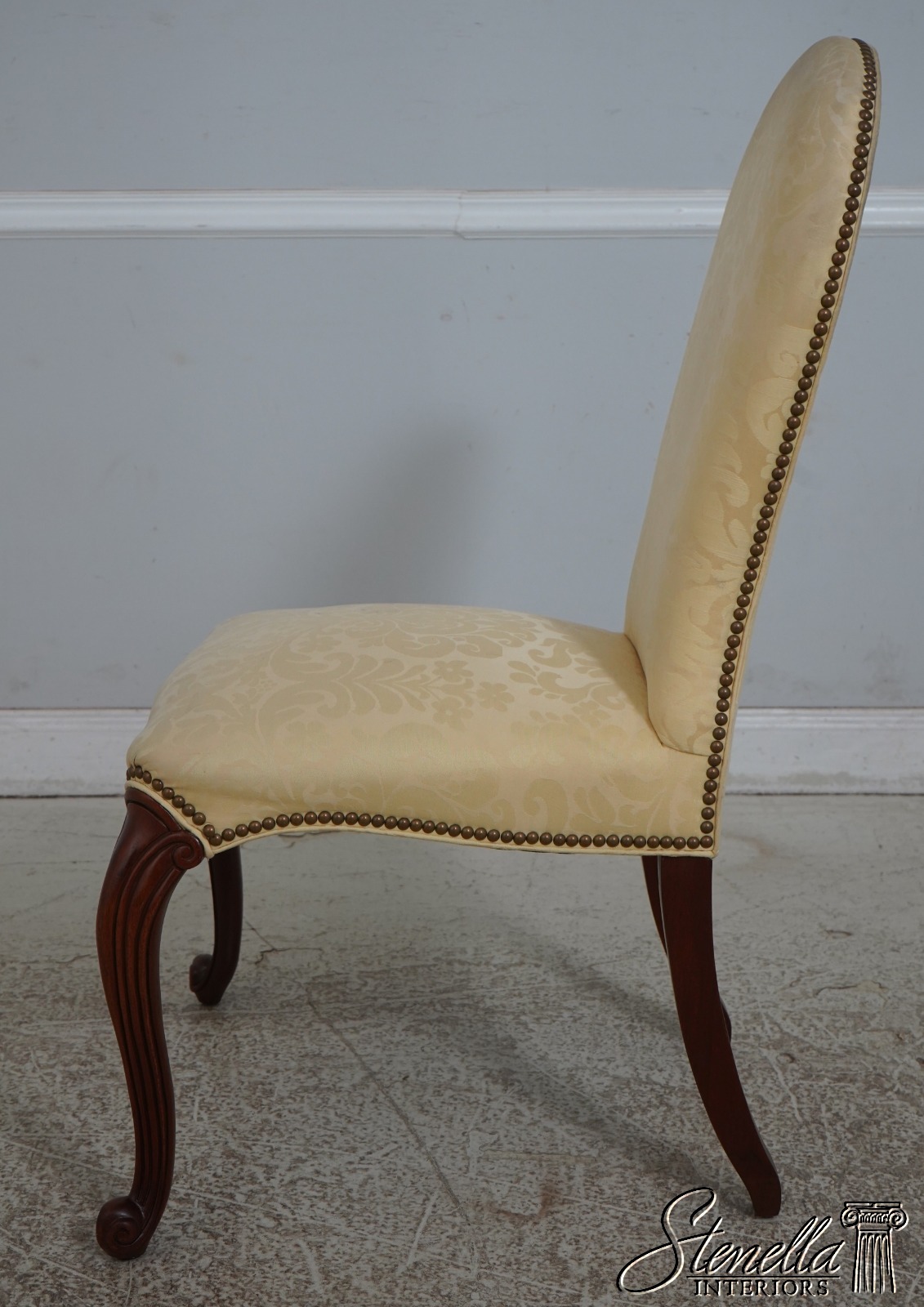 67907: HICKORY CHAIR CO Damask Upholstered Scrolled Leg Chair