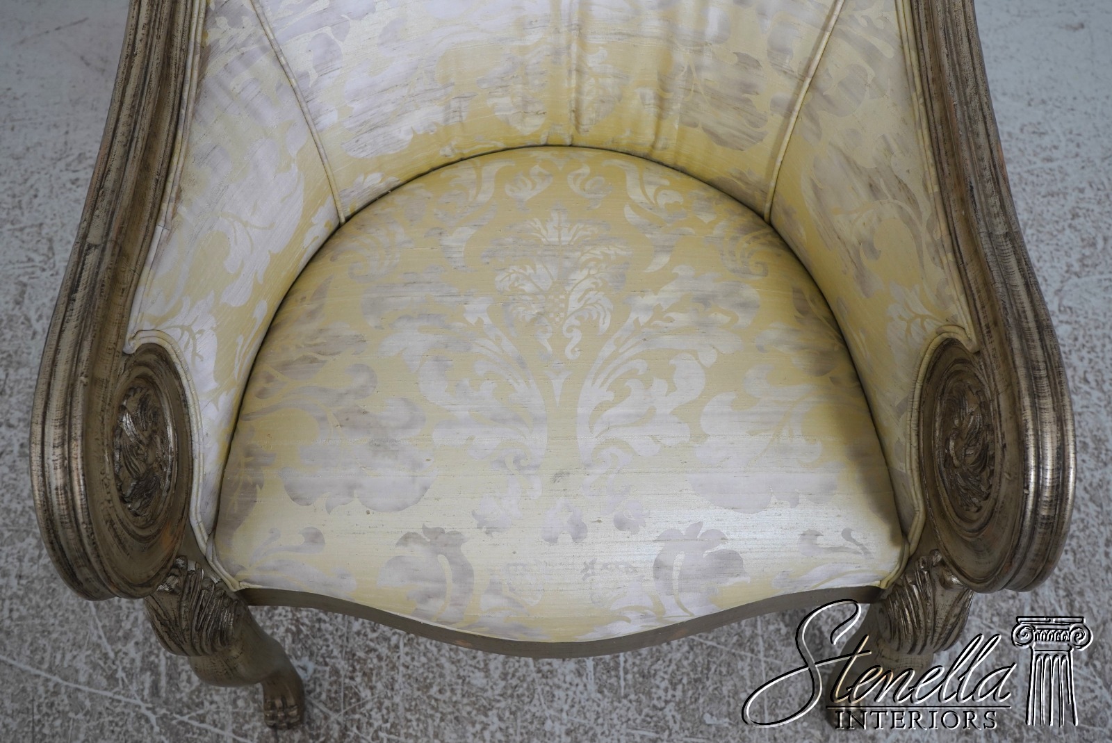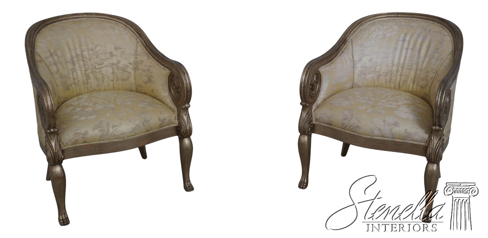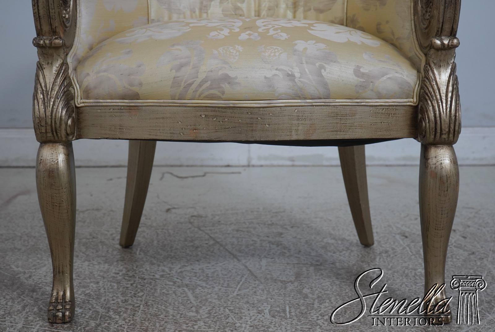 68220: Pair Neoclassical Silver Finish Damask Upholstered Club Chairs