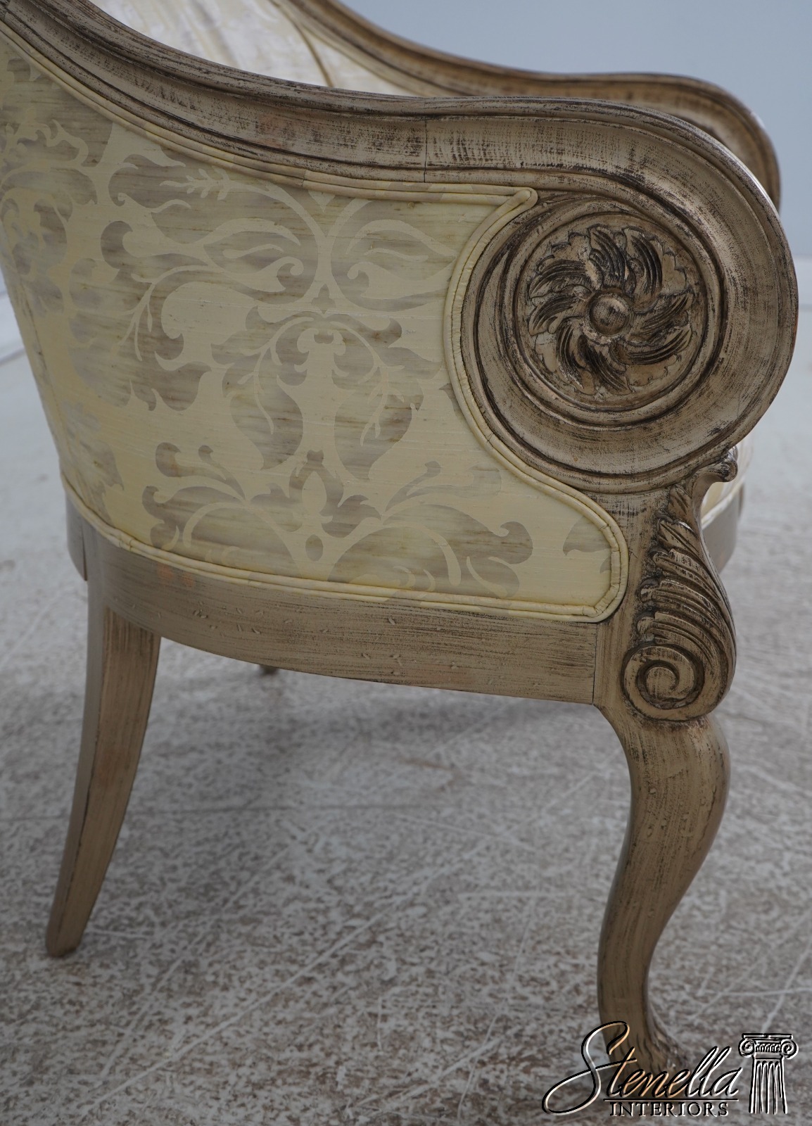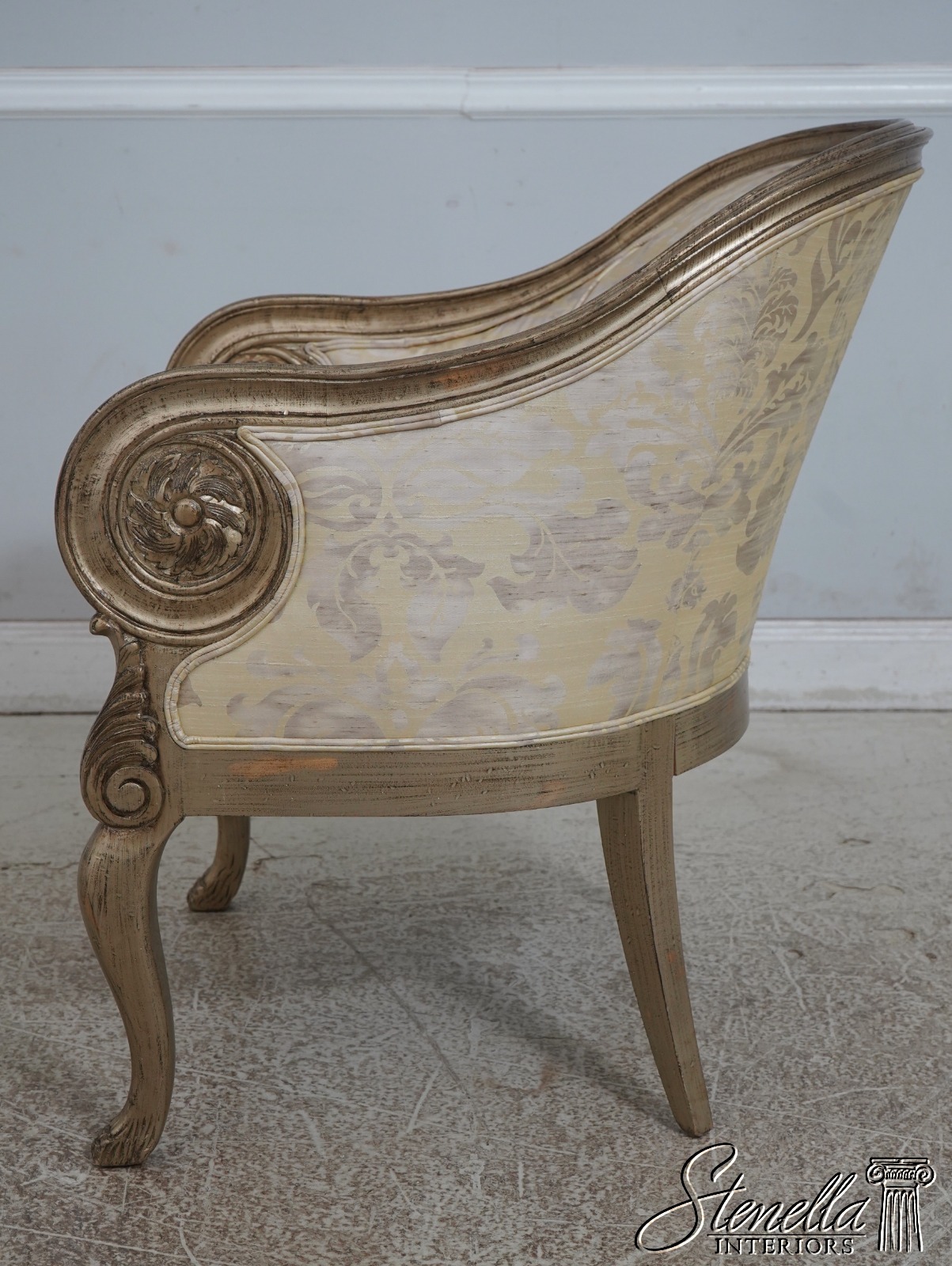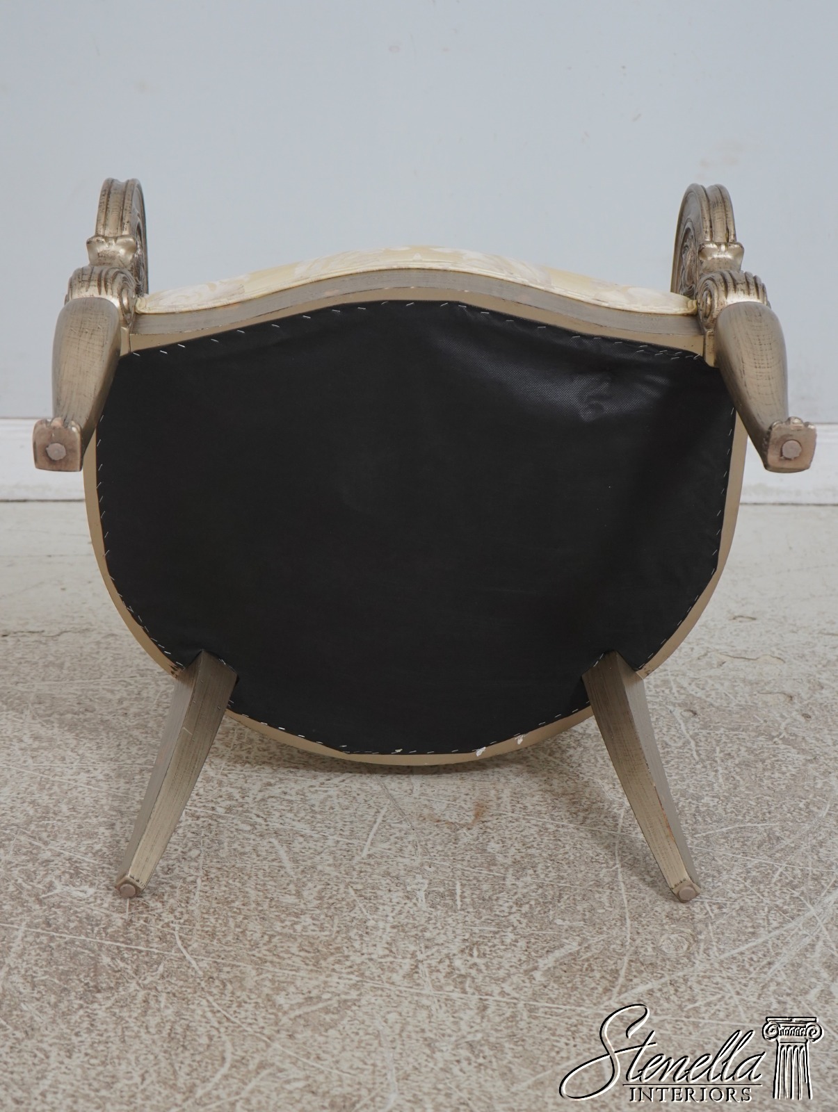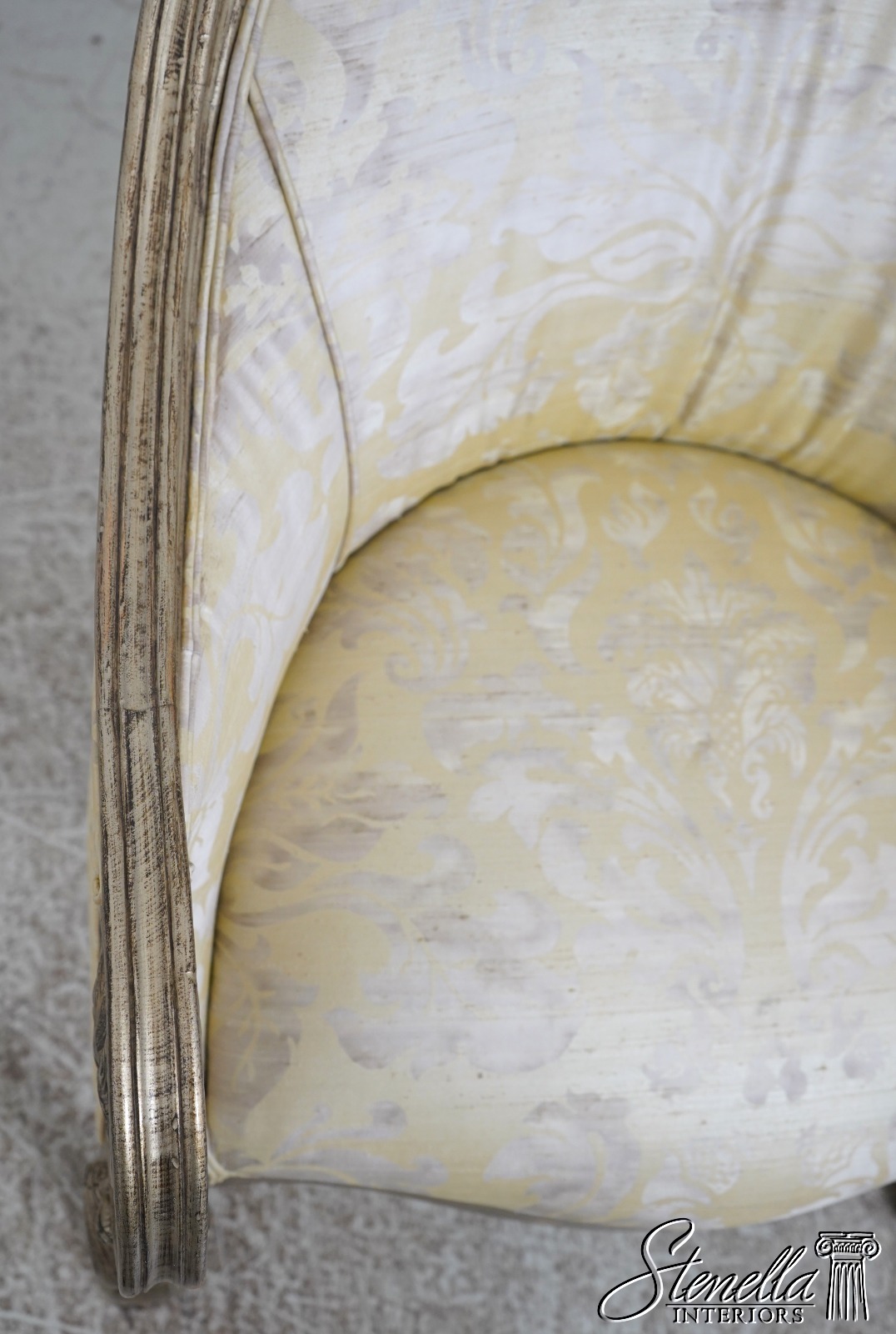 68220: Pair Neoclassical Silver Finish Damask Upholstered Club Chairs