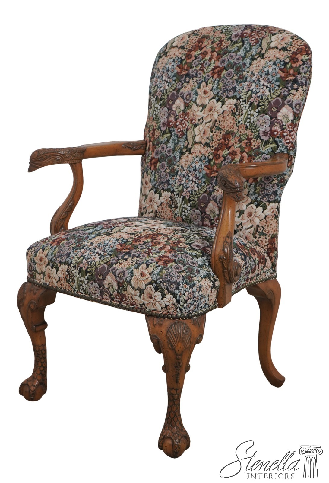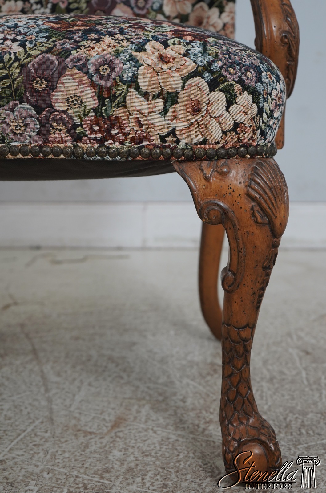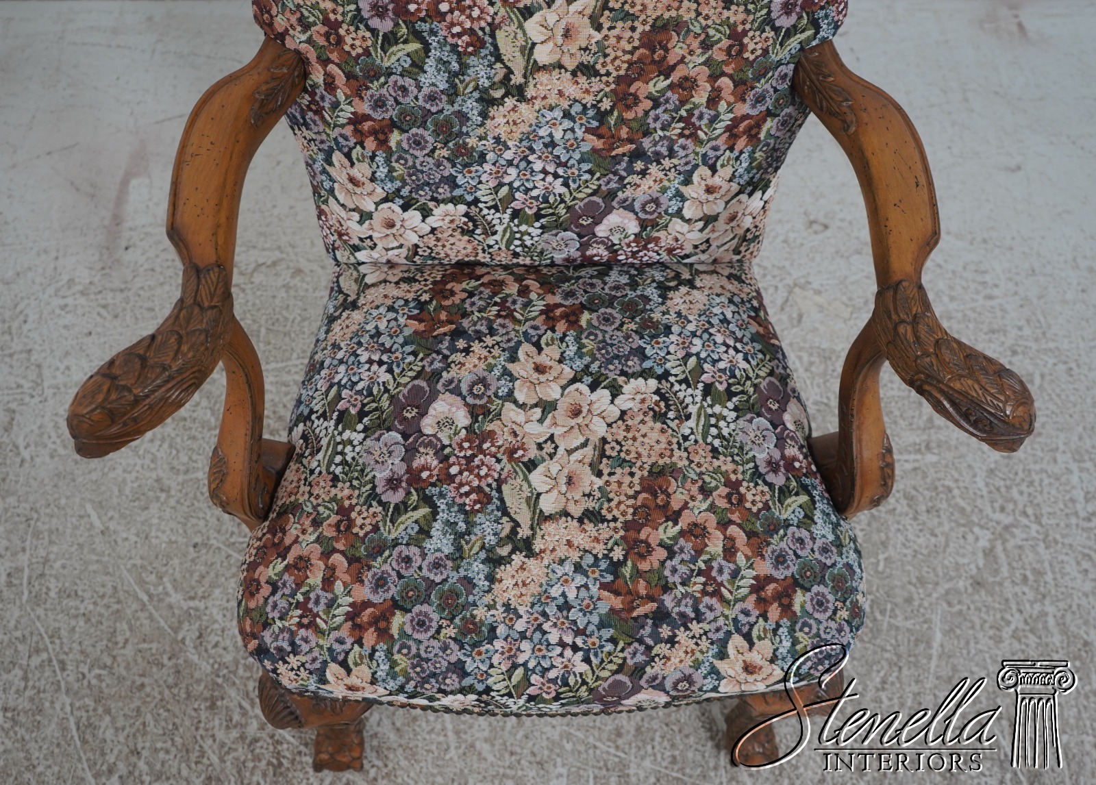 68391: Tapestry Upholstered Eagle Carved Arm Clawfoot Chair