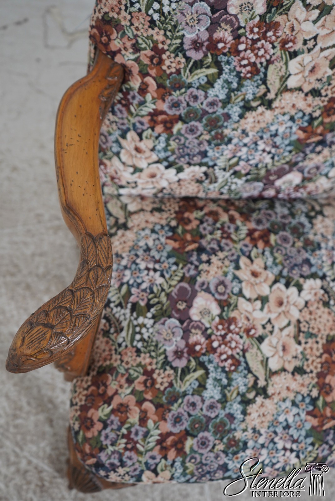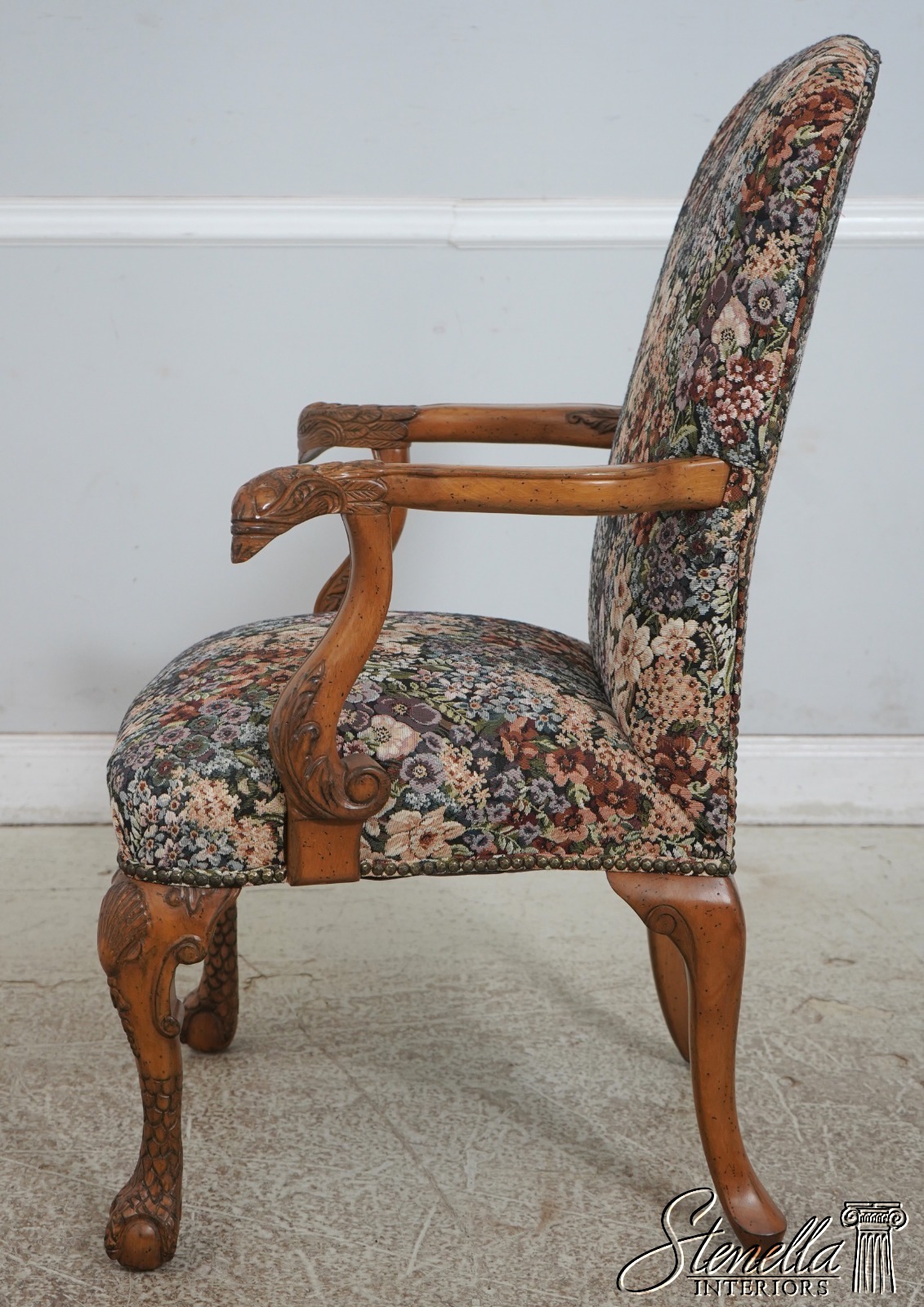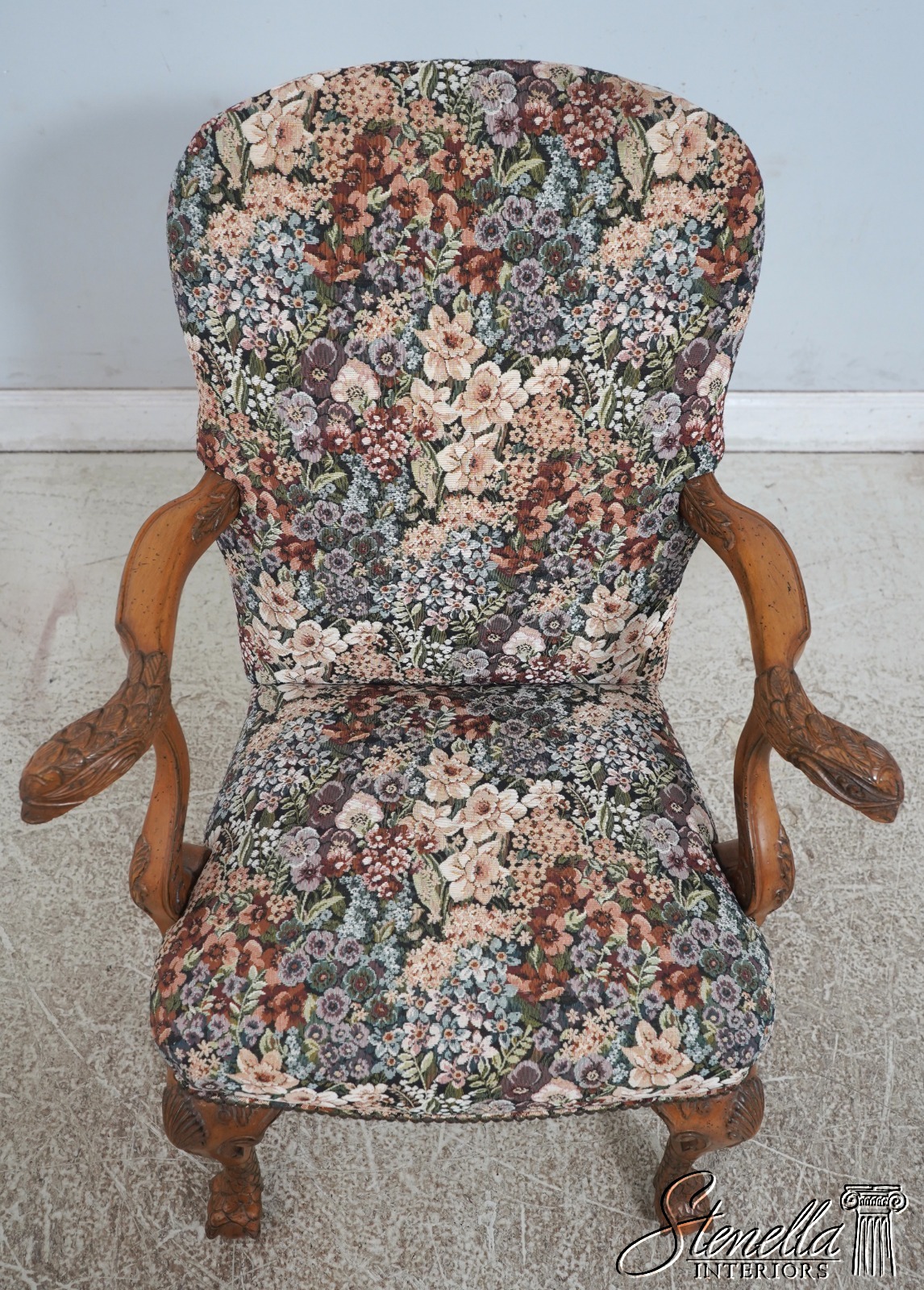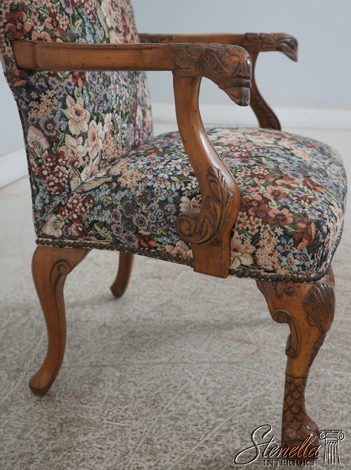 68391: Tapestry Upholstered Eagle Carved Arm Clawfoot Chair