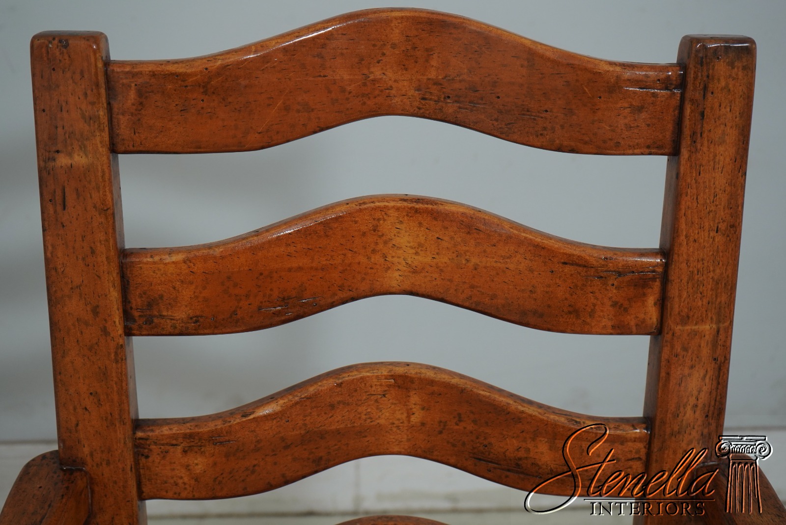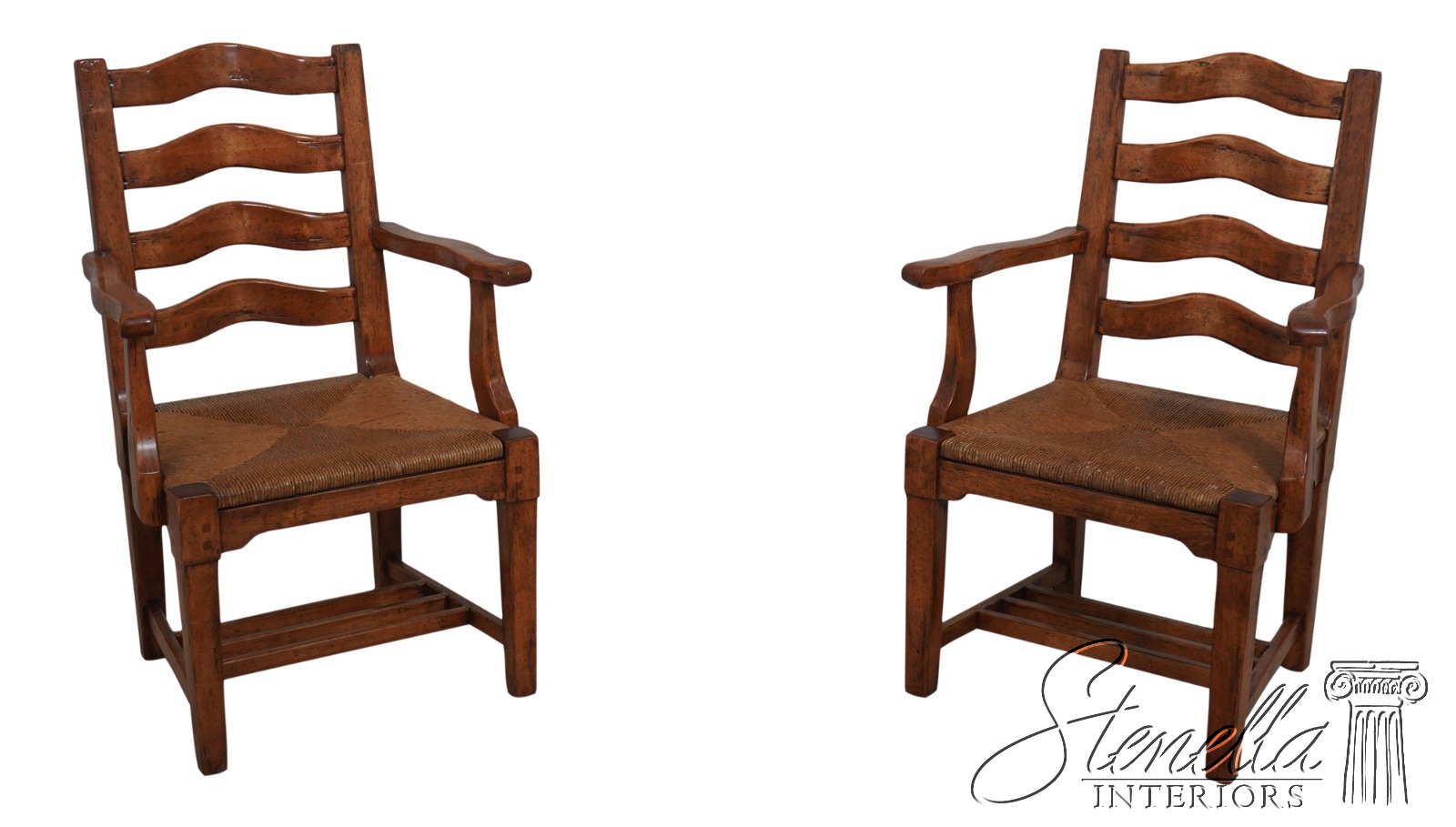 68471: Pair GUY CHADDOCK Distressed Ladderback Armchairs