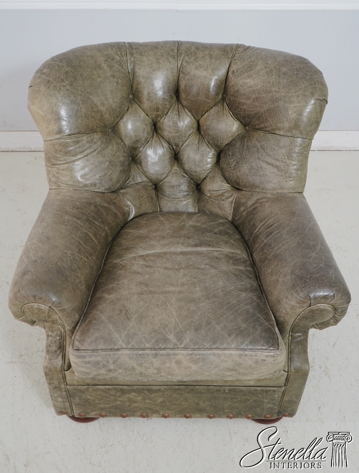 68674: RALPH LAUREN Style Tufted Leather Chair & Ottoman