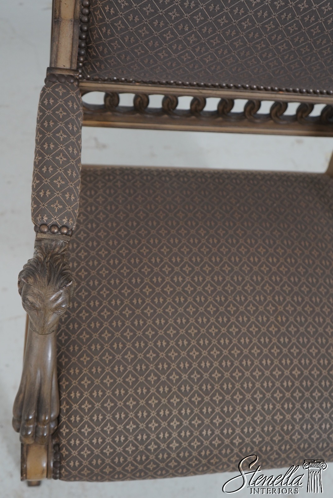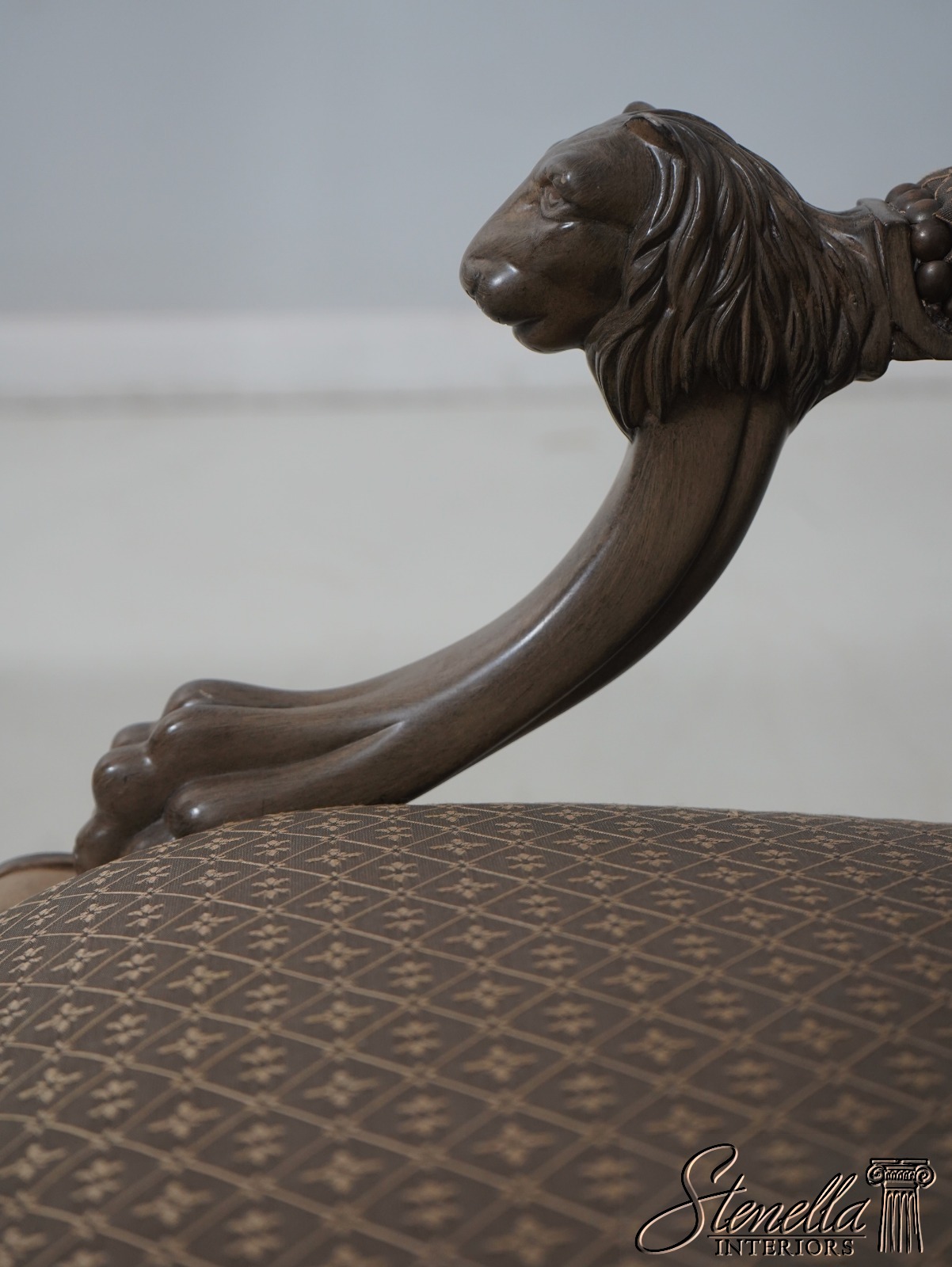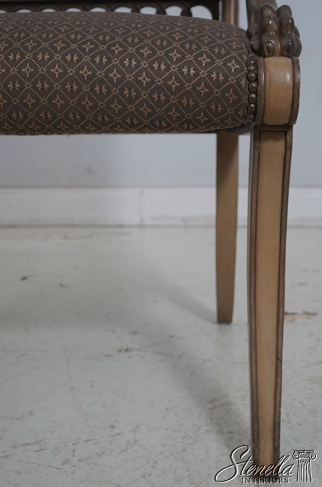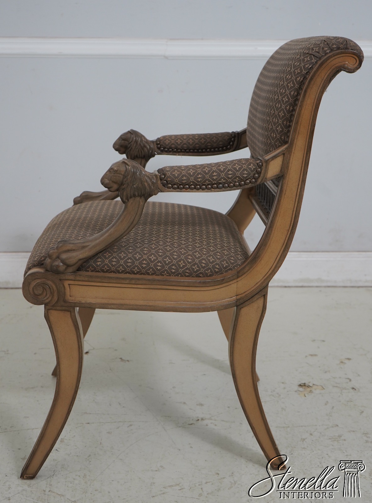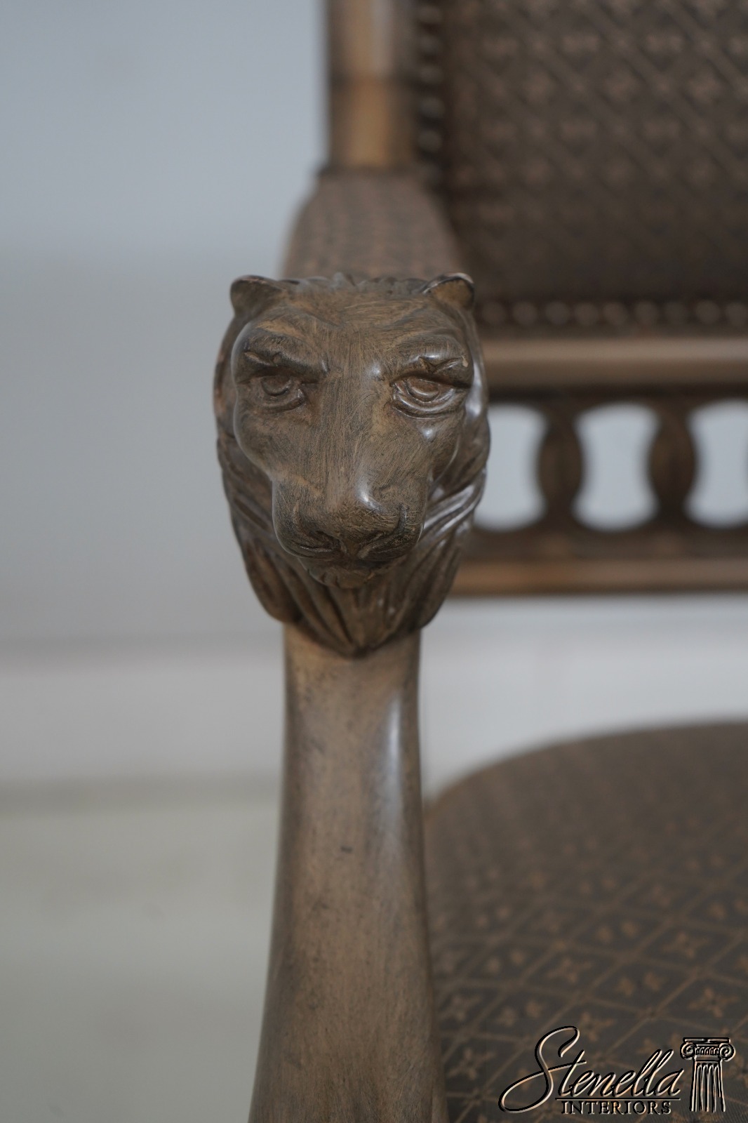 Details: Well Cared For Upholstery Quality Construction Lion Head Carved Arms Nice Painted Finish Frame Regency Style Offered @ Fraction Original Retail Cost