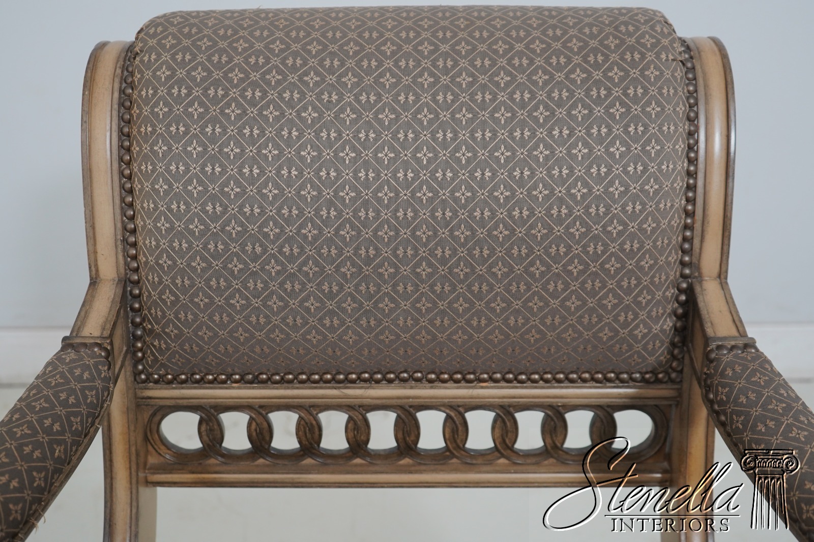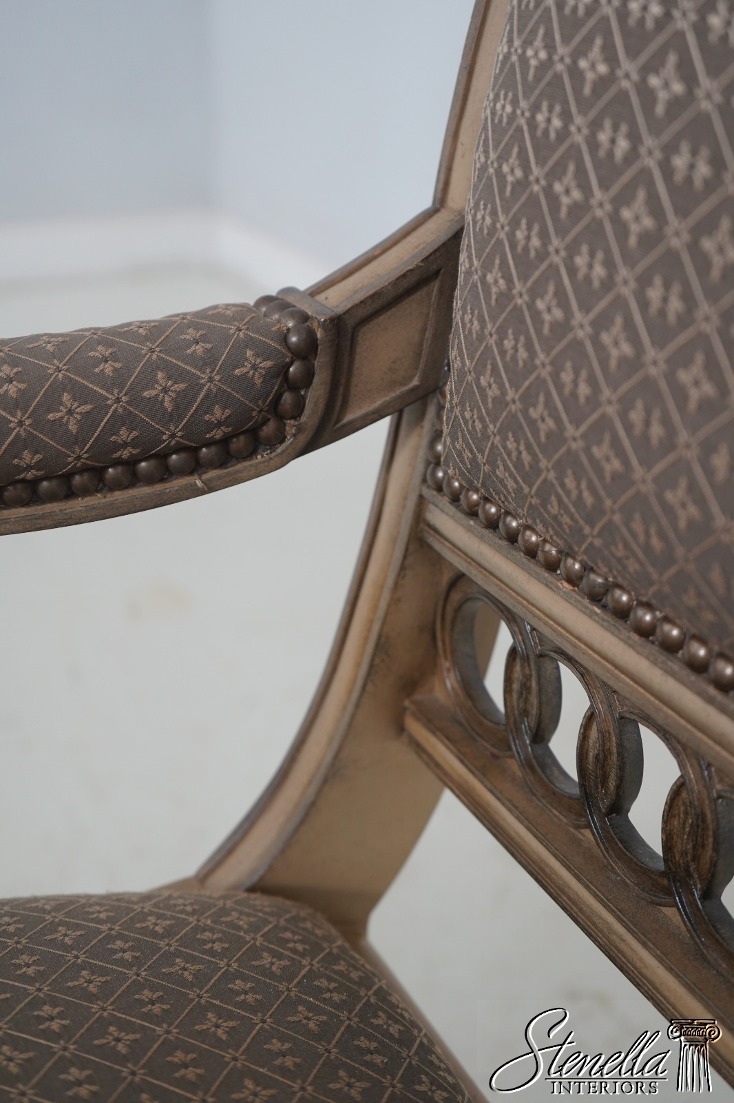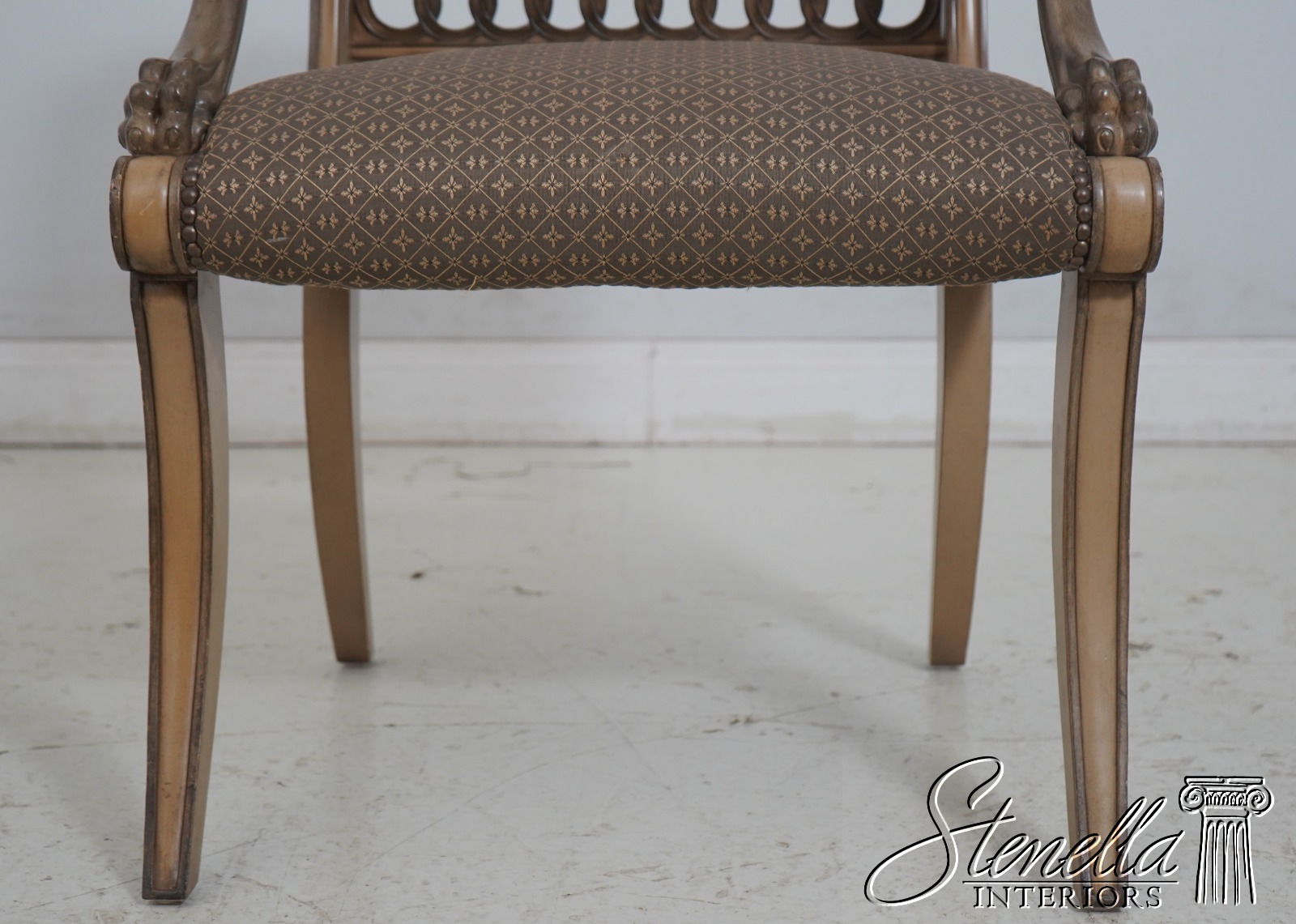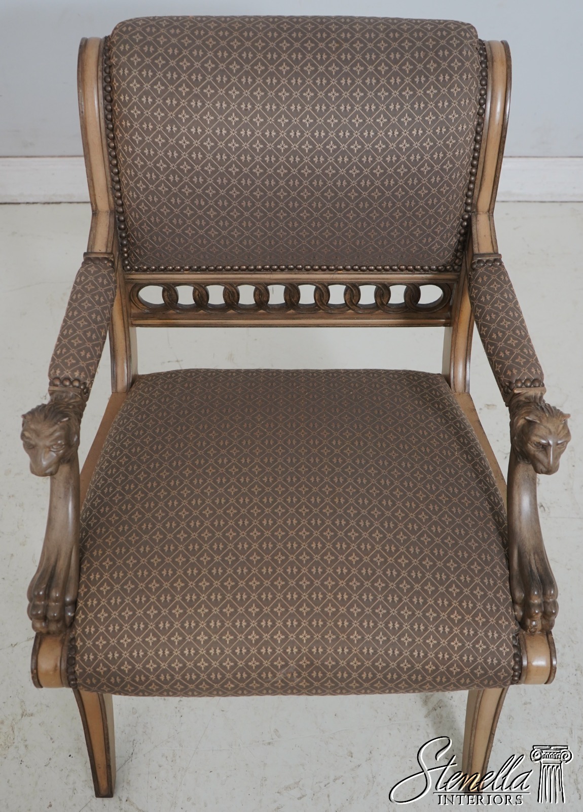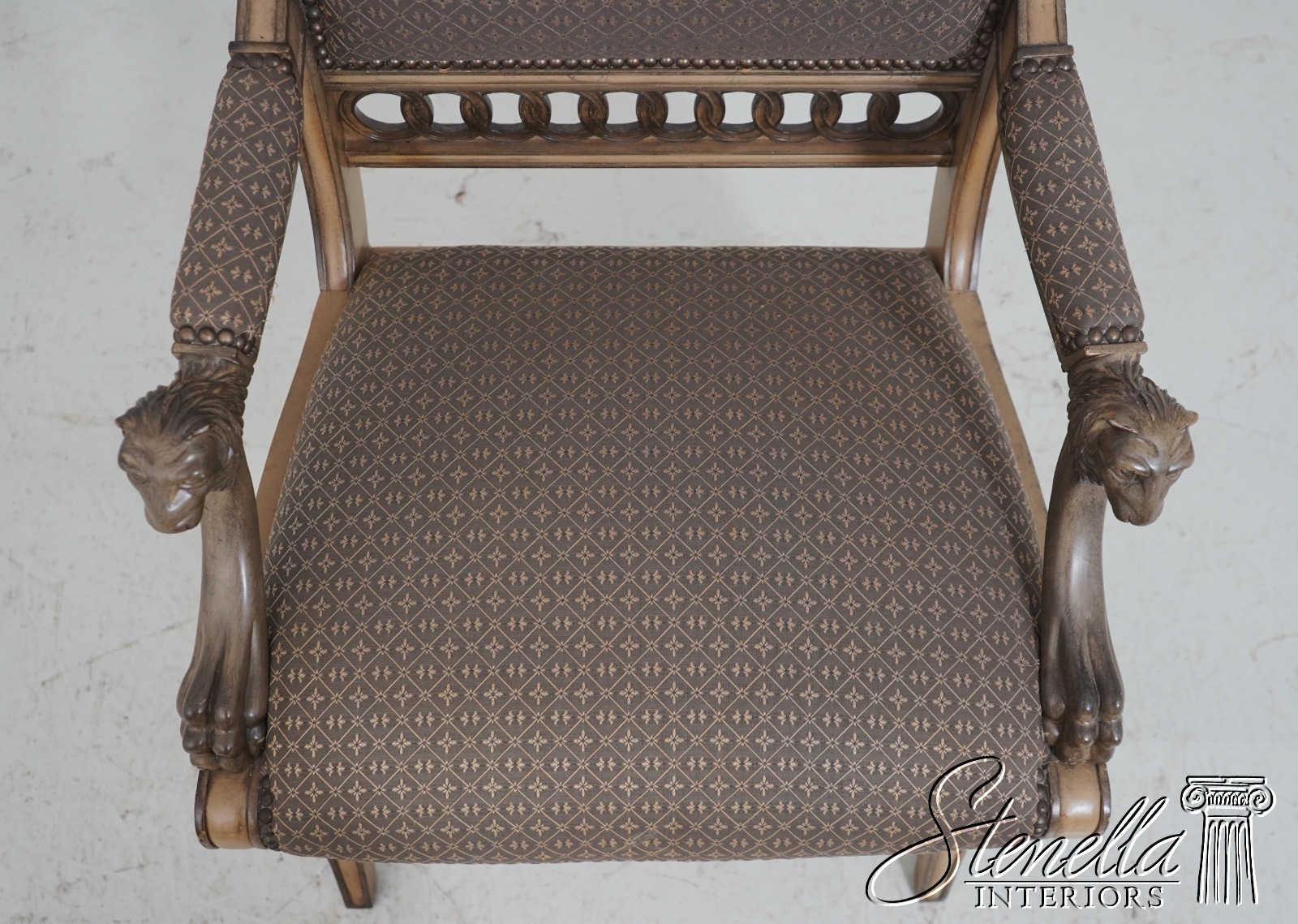 Details: Well Cared For Upholstery Quality Construction Lion Head Carved Arms Nice Painted Finish Frame Regency Style Offered @ Fraction Original Retail Cost