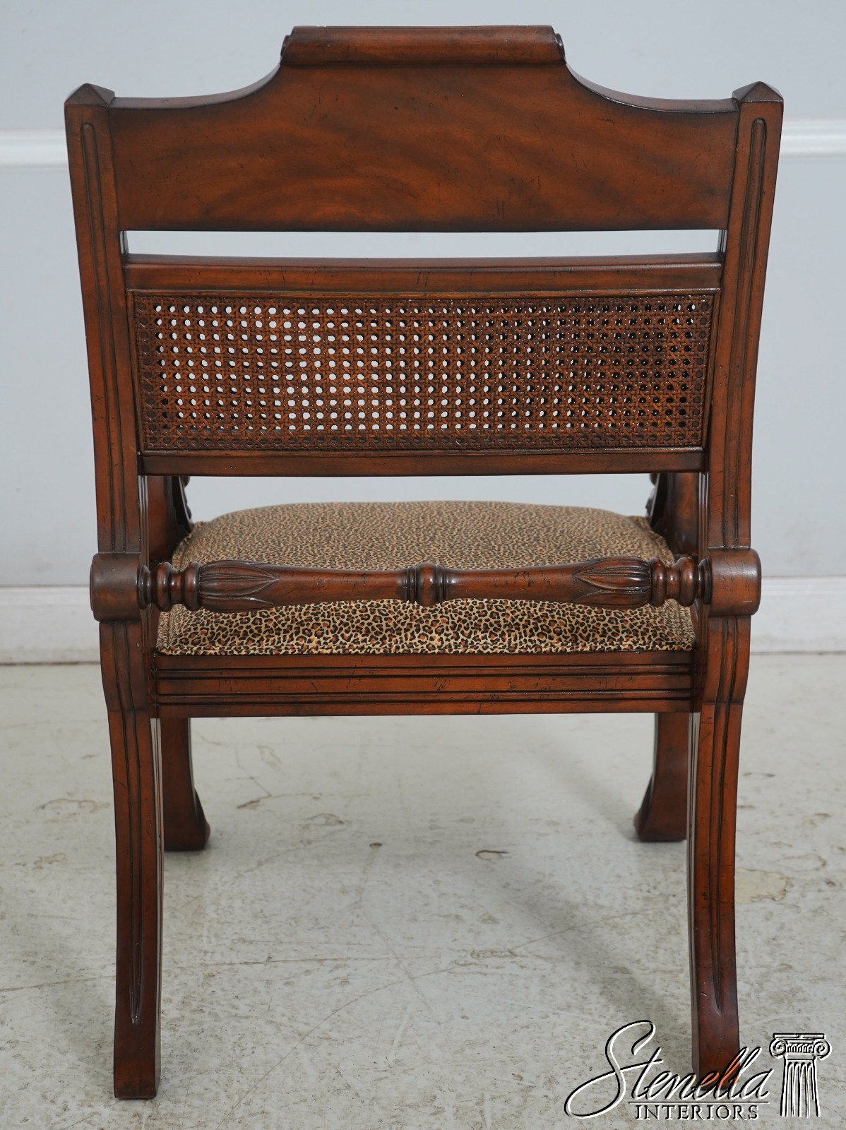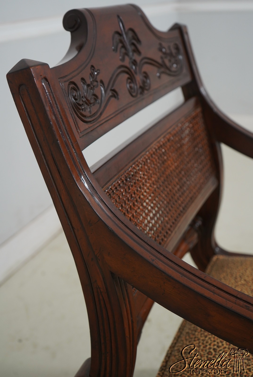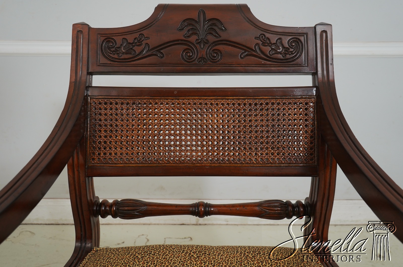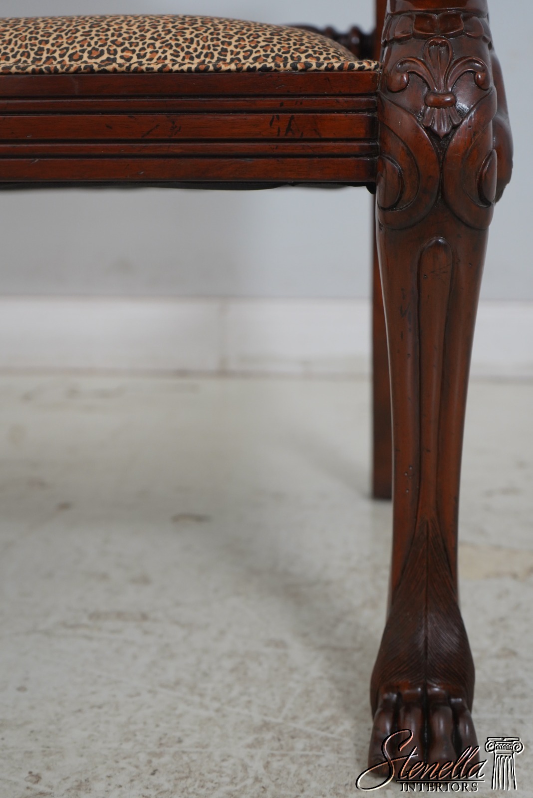 Details: Factory Distressed Solid Mahogany Cane Backs Nice Carved Details Quality Construction Large Impressive Chairs Brand New Cheetah Print Upholstery Lion Head Carved Arms & Paw Feet Offered @ Fraction Original Retail Cost
