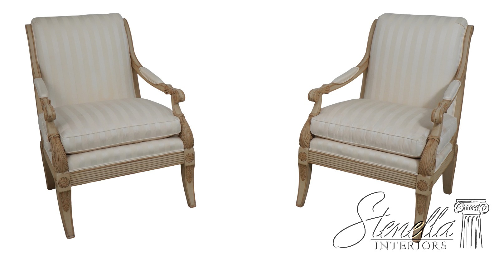 69549: Pair Of CENTURY Upholstered French Regency Open Armchairs