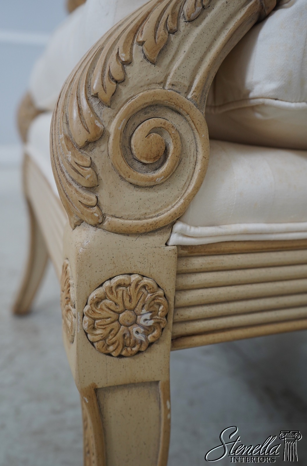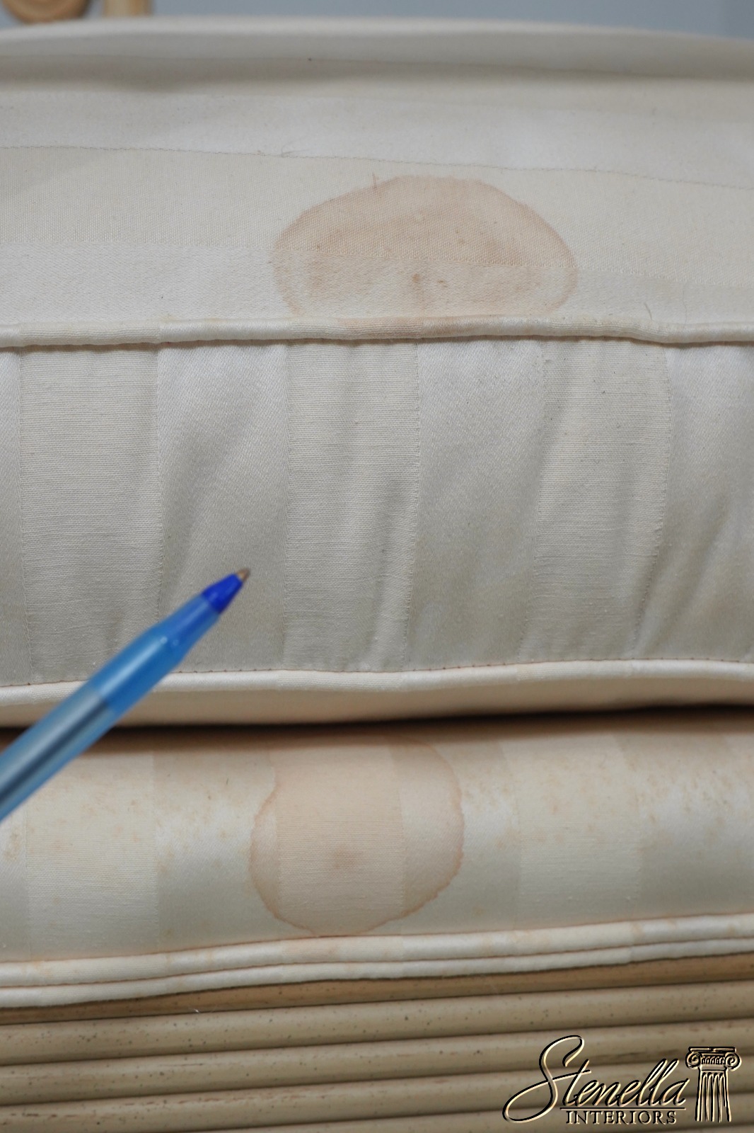 Sometimes upholstered items may show some wear or minor use. Or you may want to have recovered in different upholstery to match your decor’. Please feel free to contact us for information on having this or any of our items professionally re-upholstered in the fabric of your choice. We are able to make recommendations.