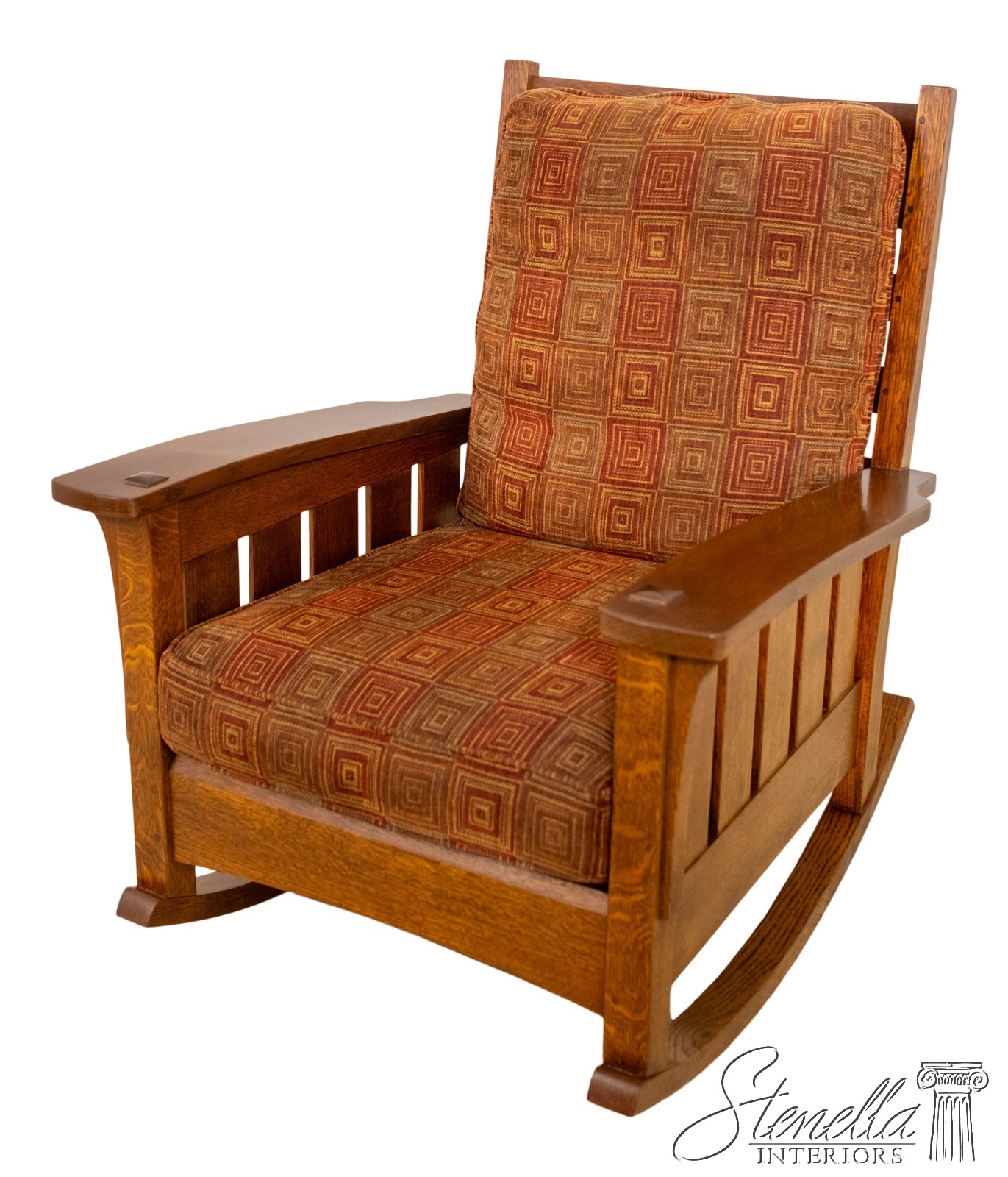 69933: STICKLEY Upholstered Large Mission Oak Rocking Chair