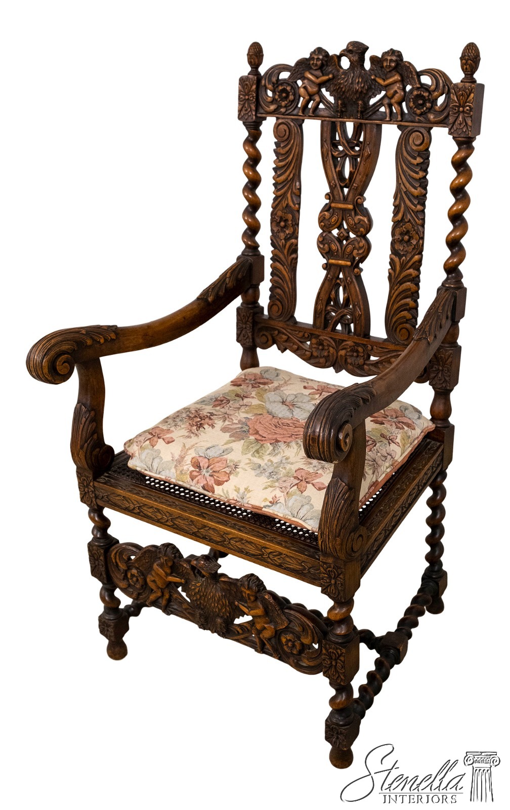 70024: French Continental Ornate Walnut Carved Arm Chair