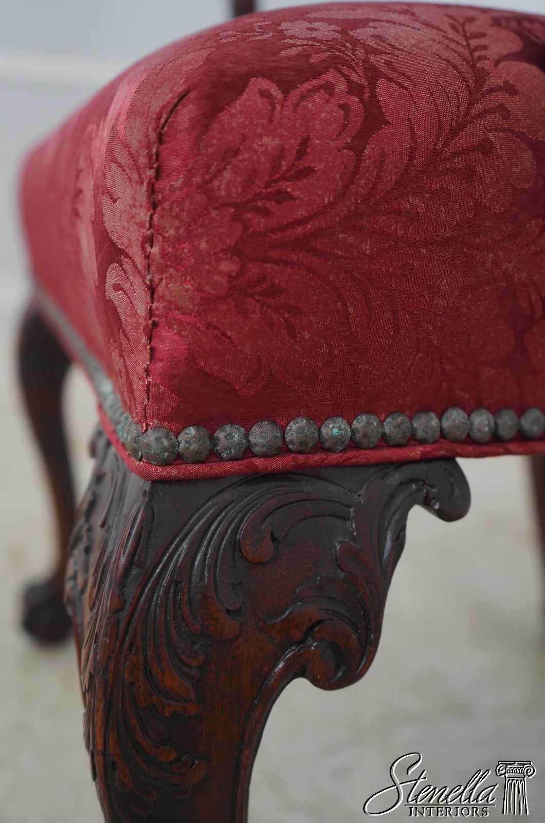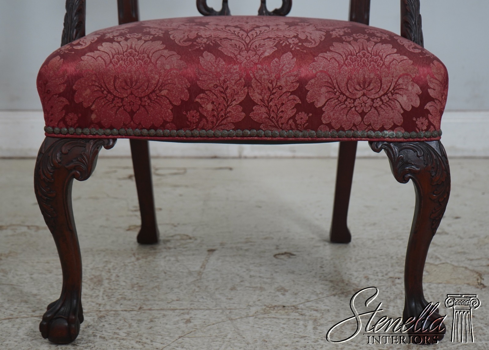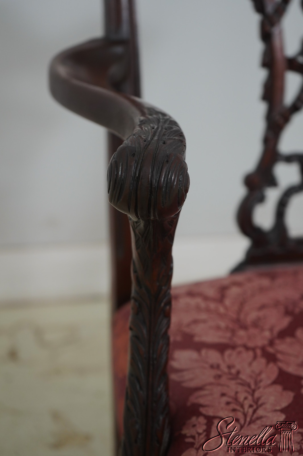 Details: Mahogany Ornate Carved Details Ball & Claw Feet Fine Carved Details High Quality Construction Chippendale Style English Style Tack Head Trim Ribbon Backsplat Chinese Chippendale Style Scroll Arms Cabriole Legs Un-Marked As To Manufacture Offered @ Fraction Original Retail Cost