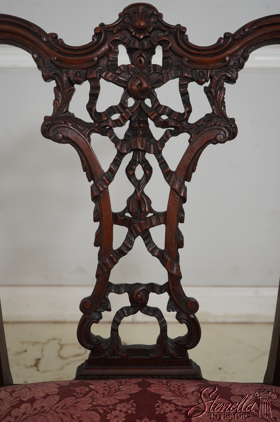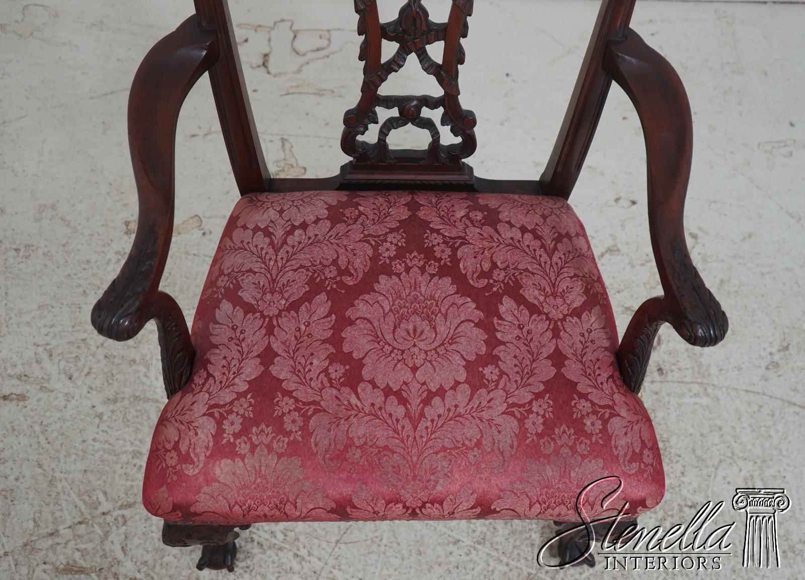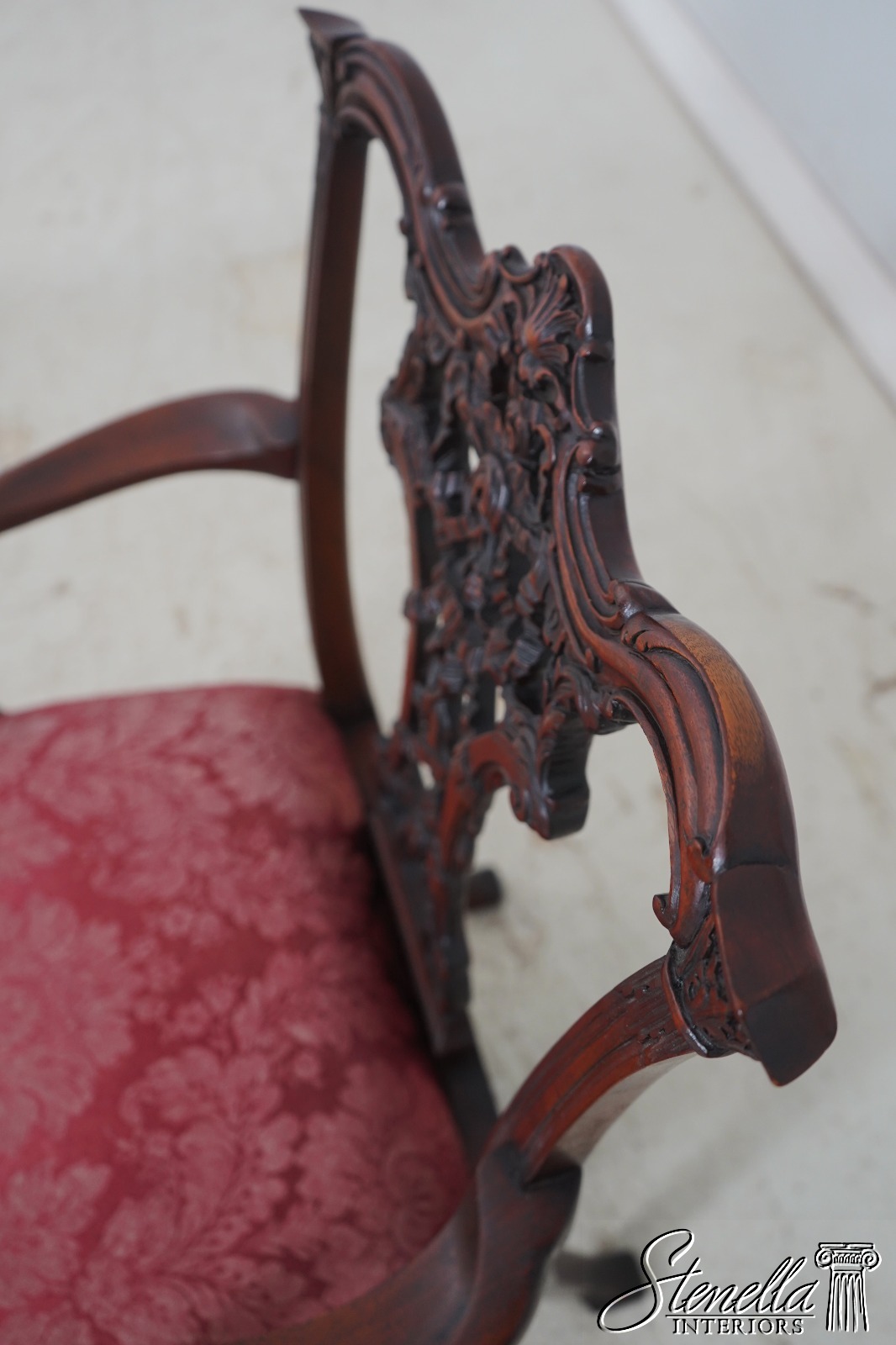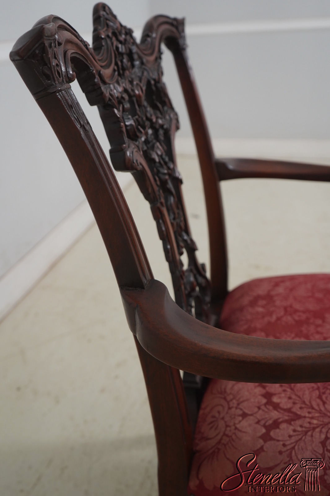 Details: Mahogany Ornate Carved Details Ball & Claw Feet Fine Carved Details High Quality Construction Chippendale Style English Style Tack Head Trim Ribbon Backsplat Chinese Chippendale Style Scroll Arms Cabriole Legs Un-Marked As To Manufacture Offered @ Fraction Original Retail Cost