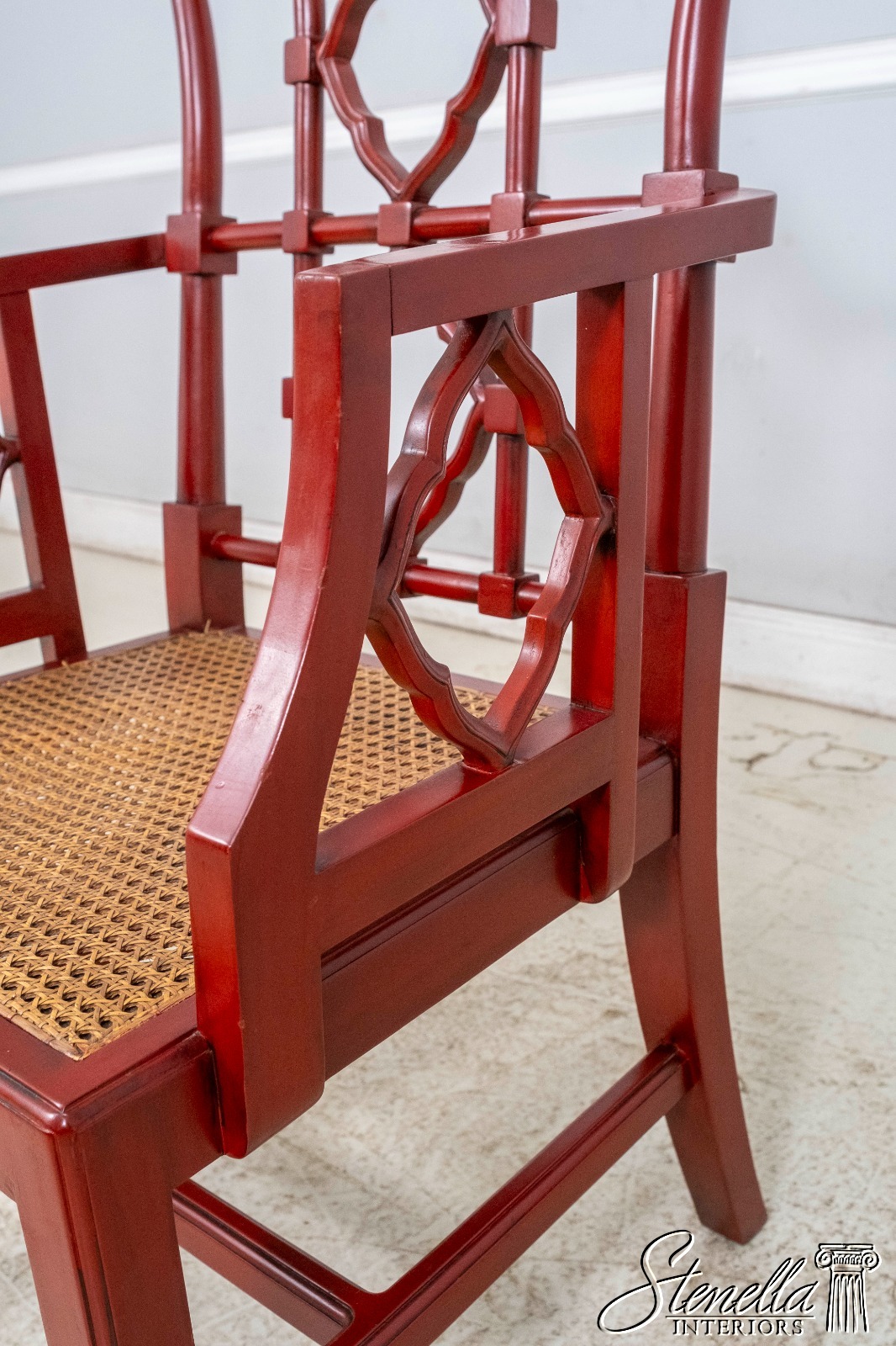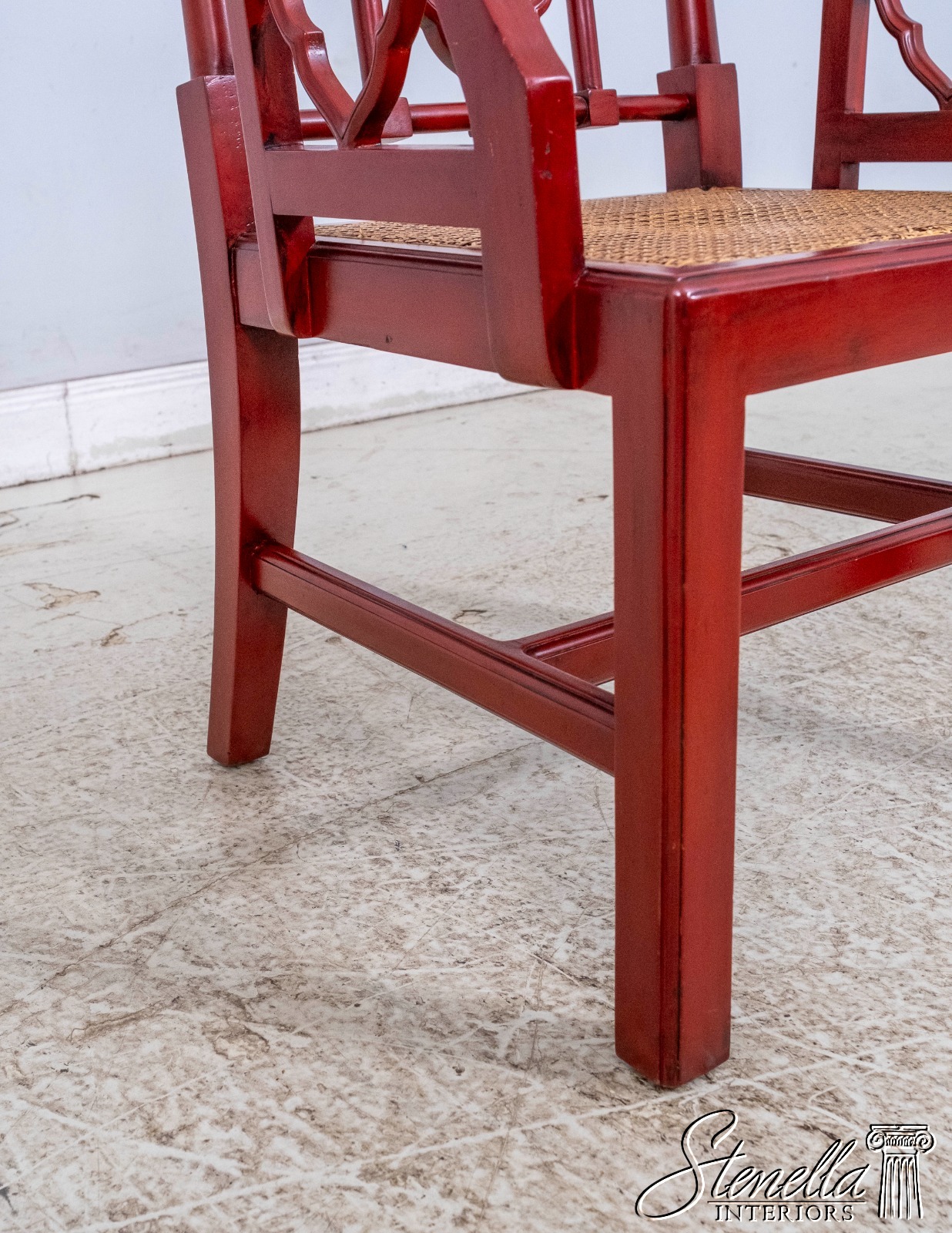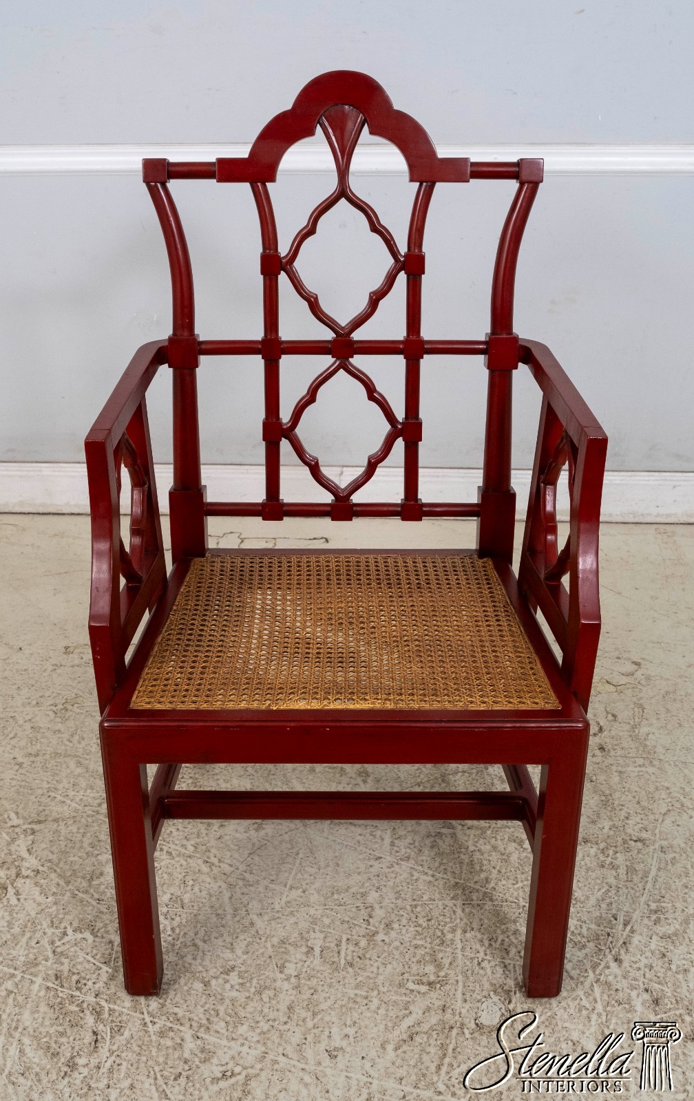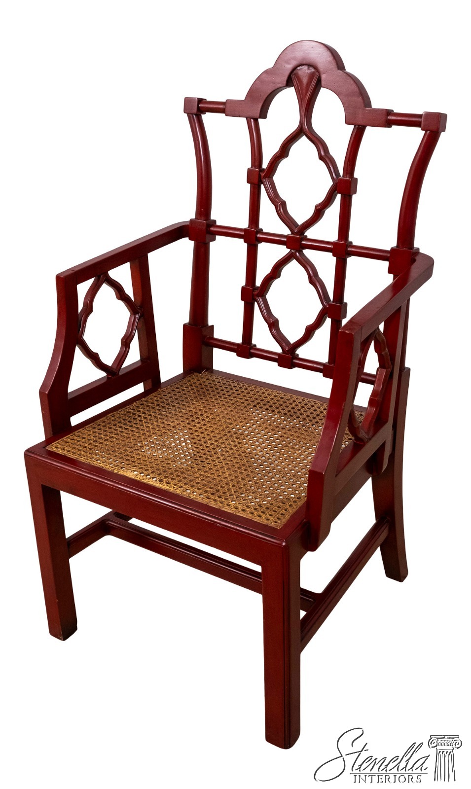 70084: Chinese Chippendale Cane Seat Red Finish Armchair