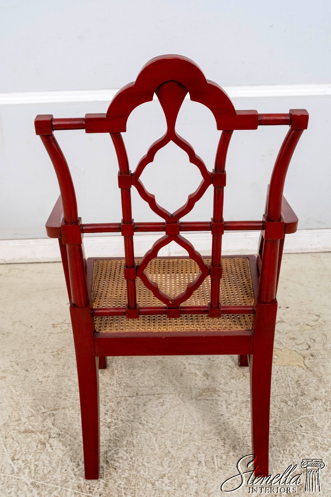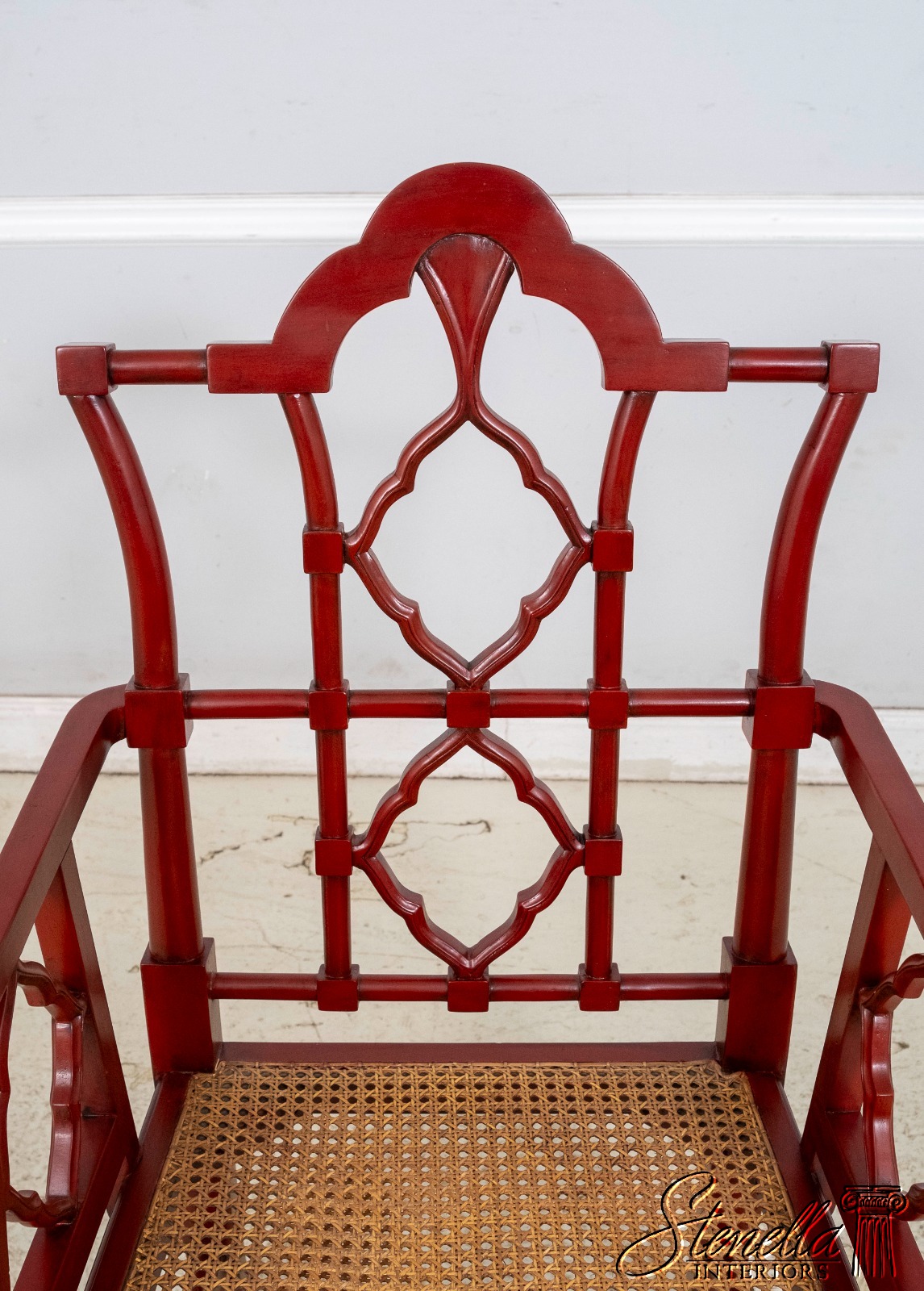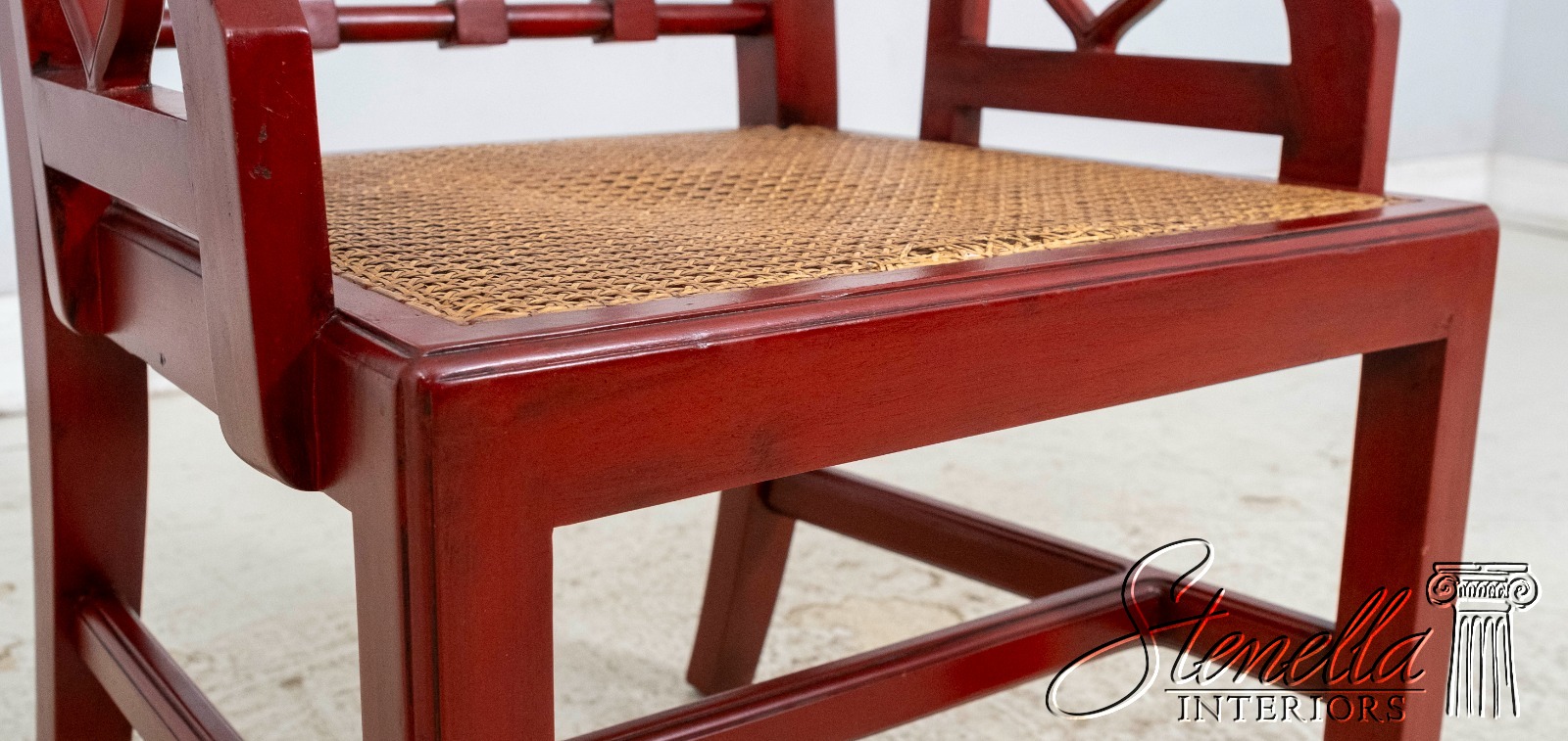 70084: Chinese Chippendale Cane Seat Red Finish Armchair