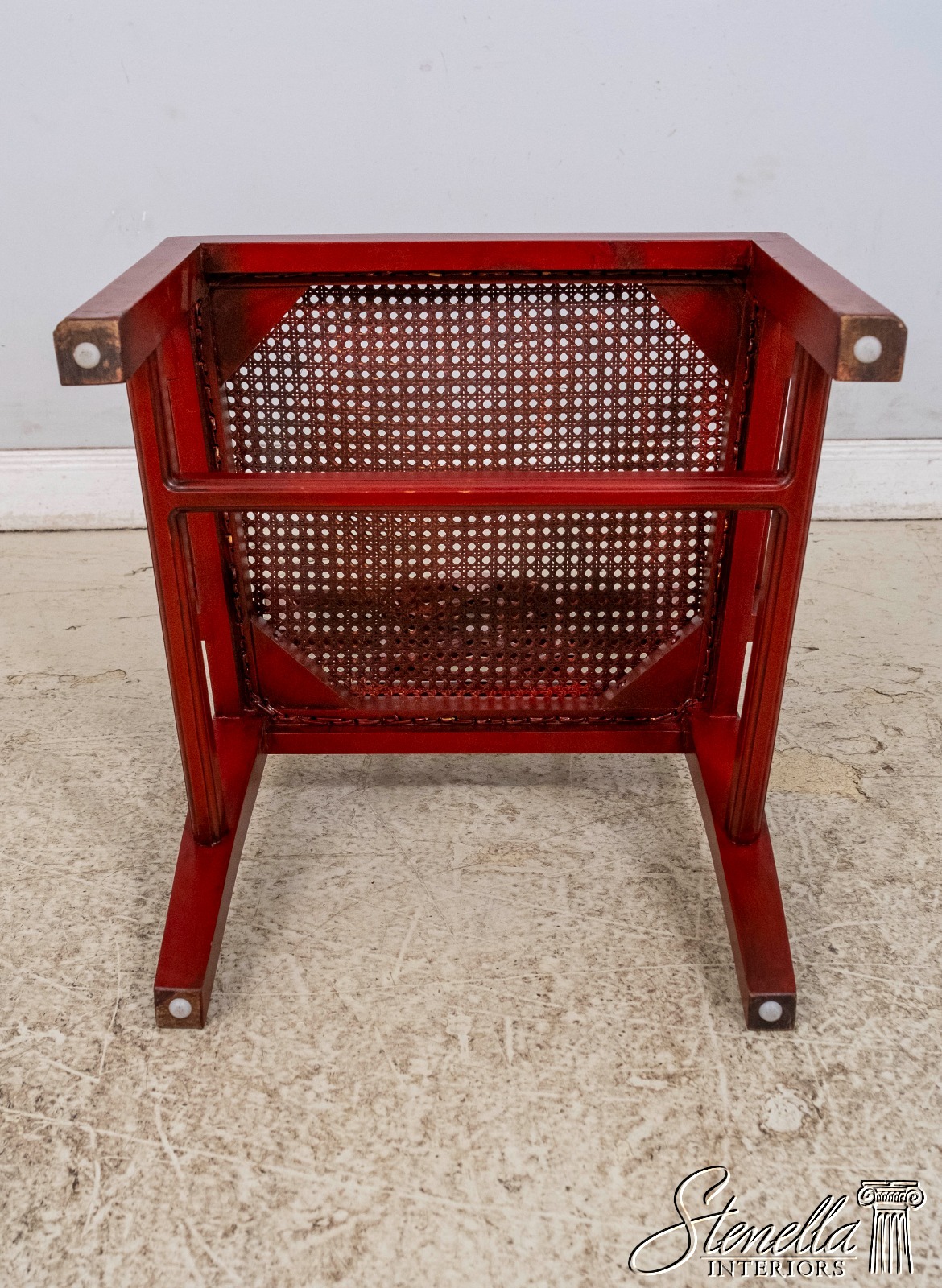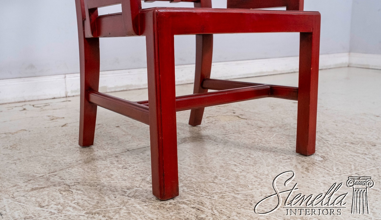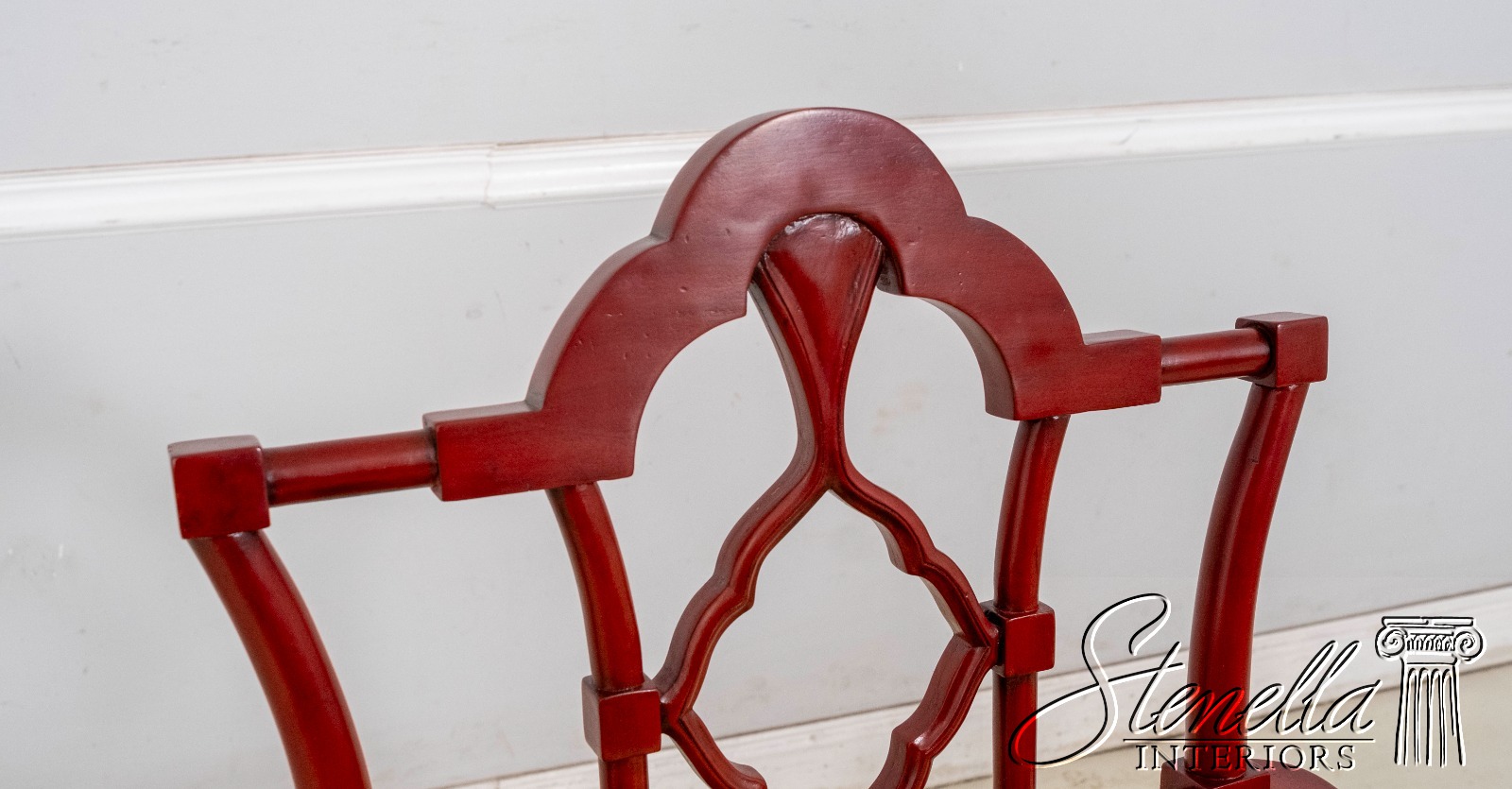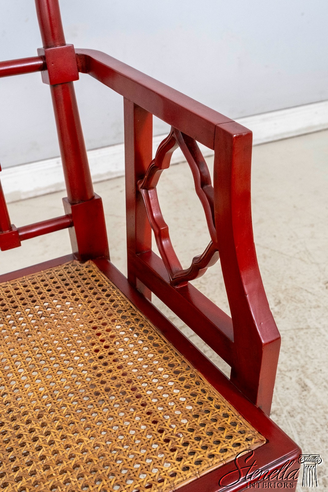 70084: Chinese Chippendale Cane Seat Red Finish Armchair