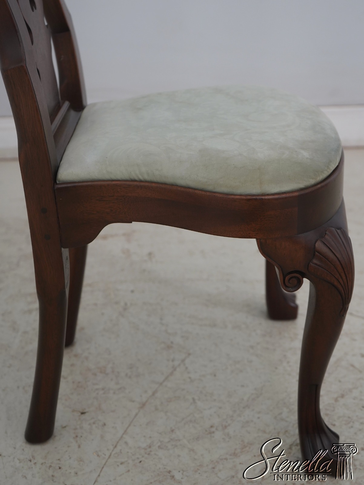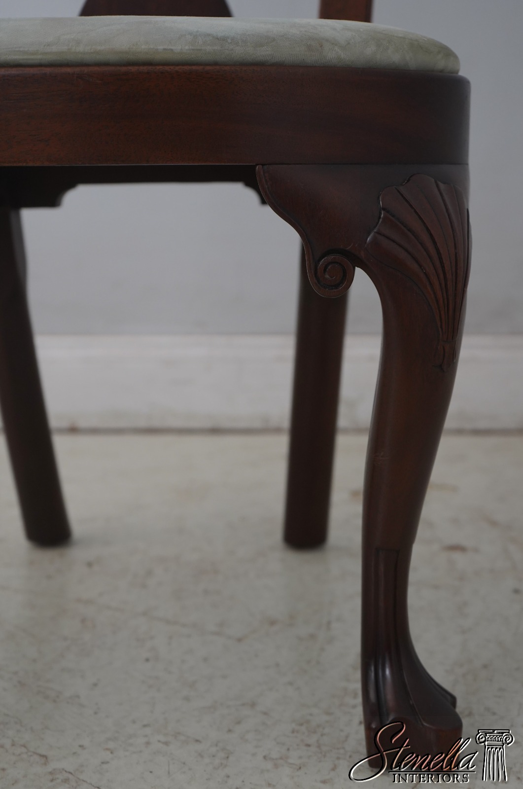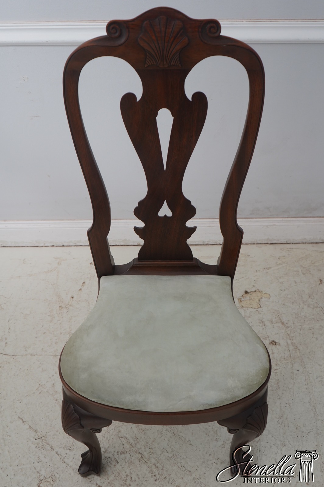 Details: Serpentine crest rail with scallop shell and additional carving of the knee and leg Original is American, circa 1735.