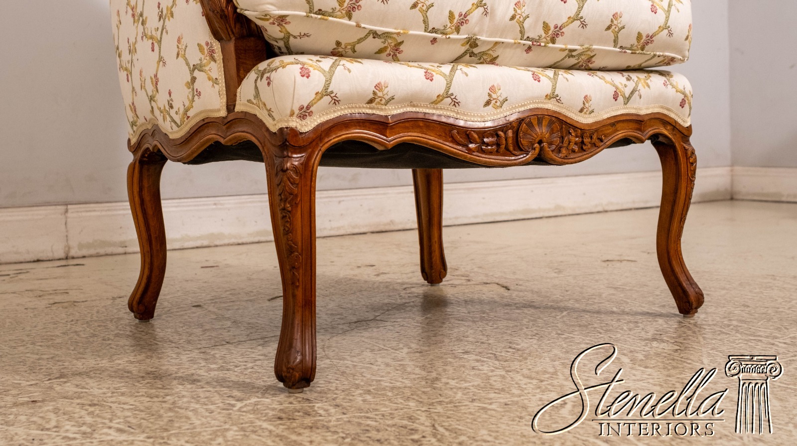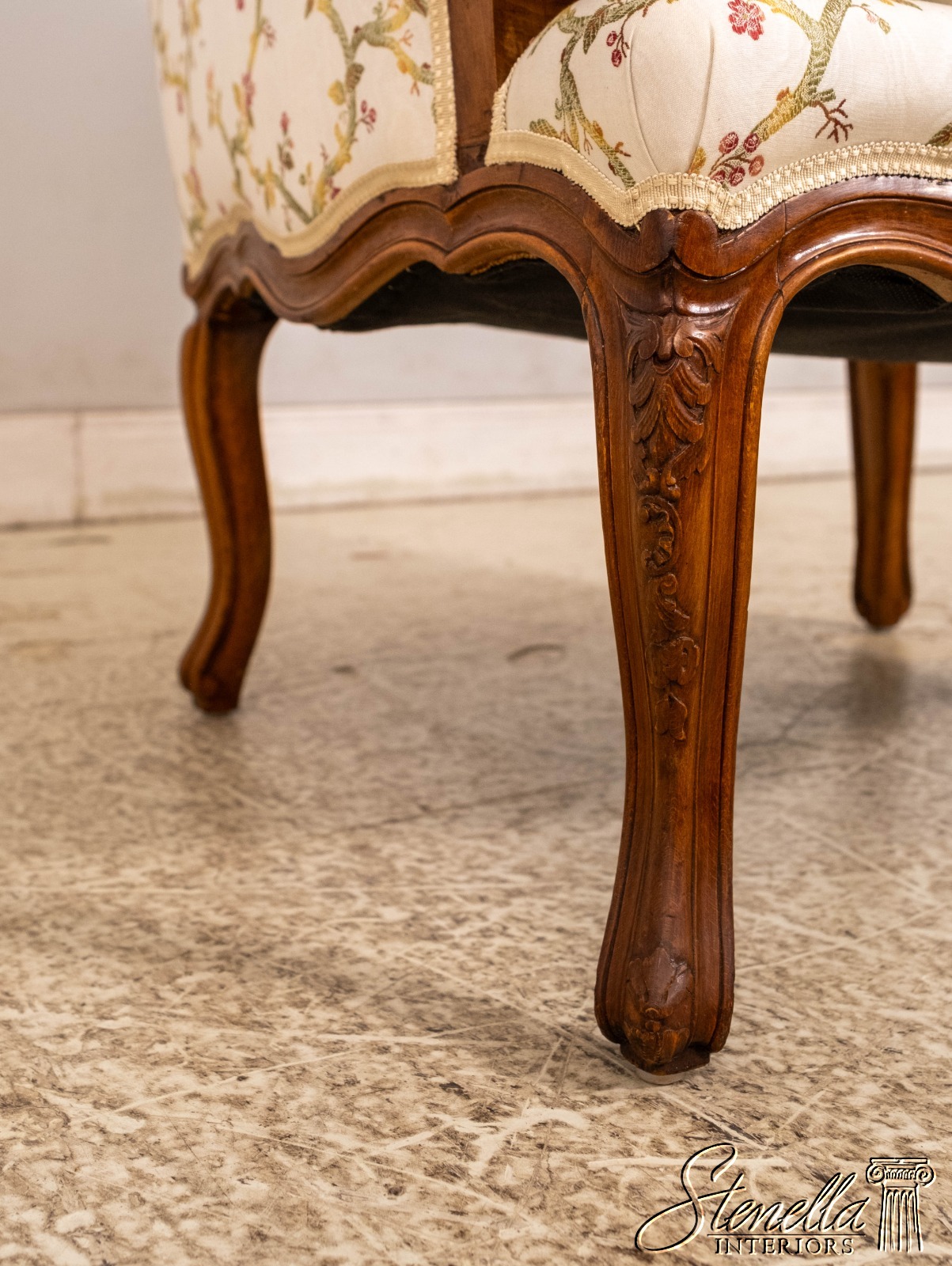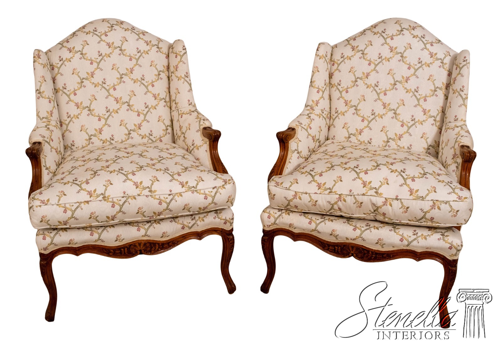 70654: Pair Vintage French Louis XV Style Carved & Upholstered Bergere Chairs