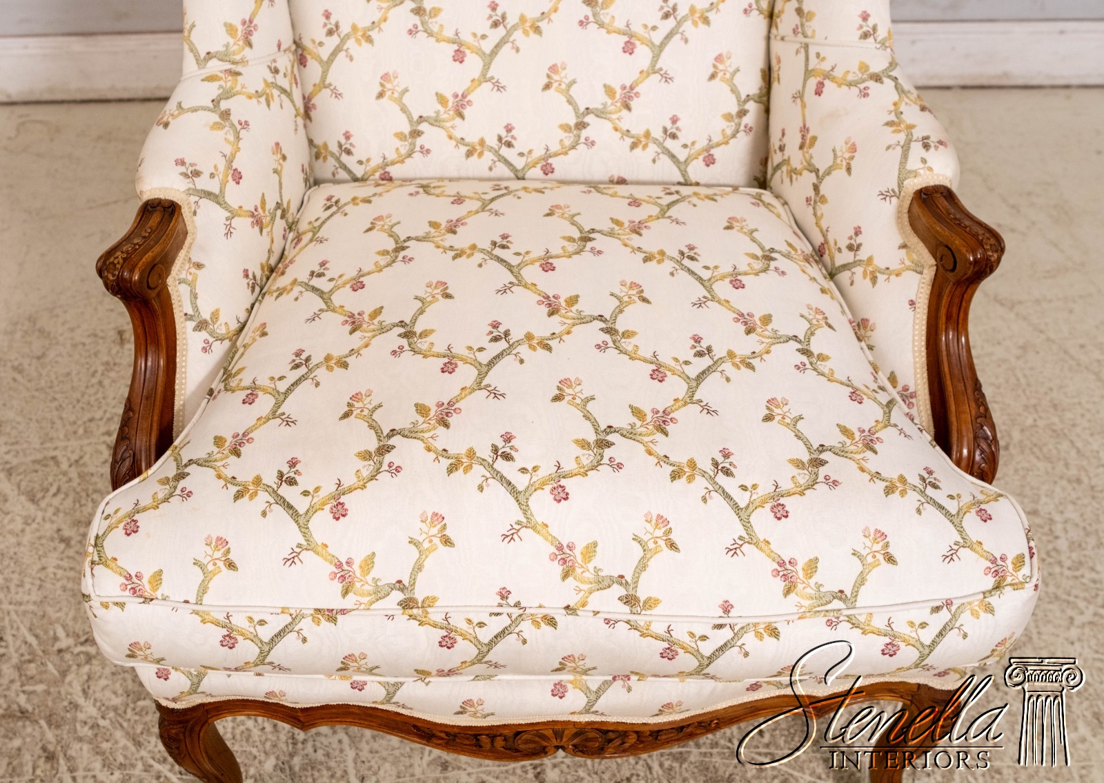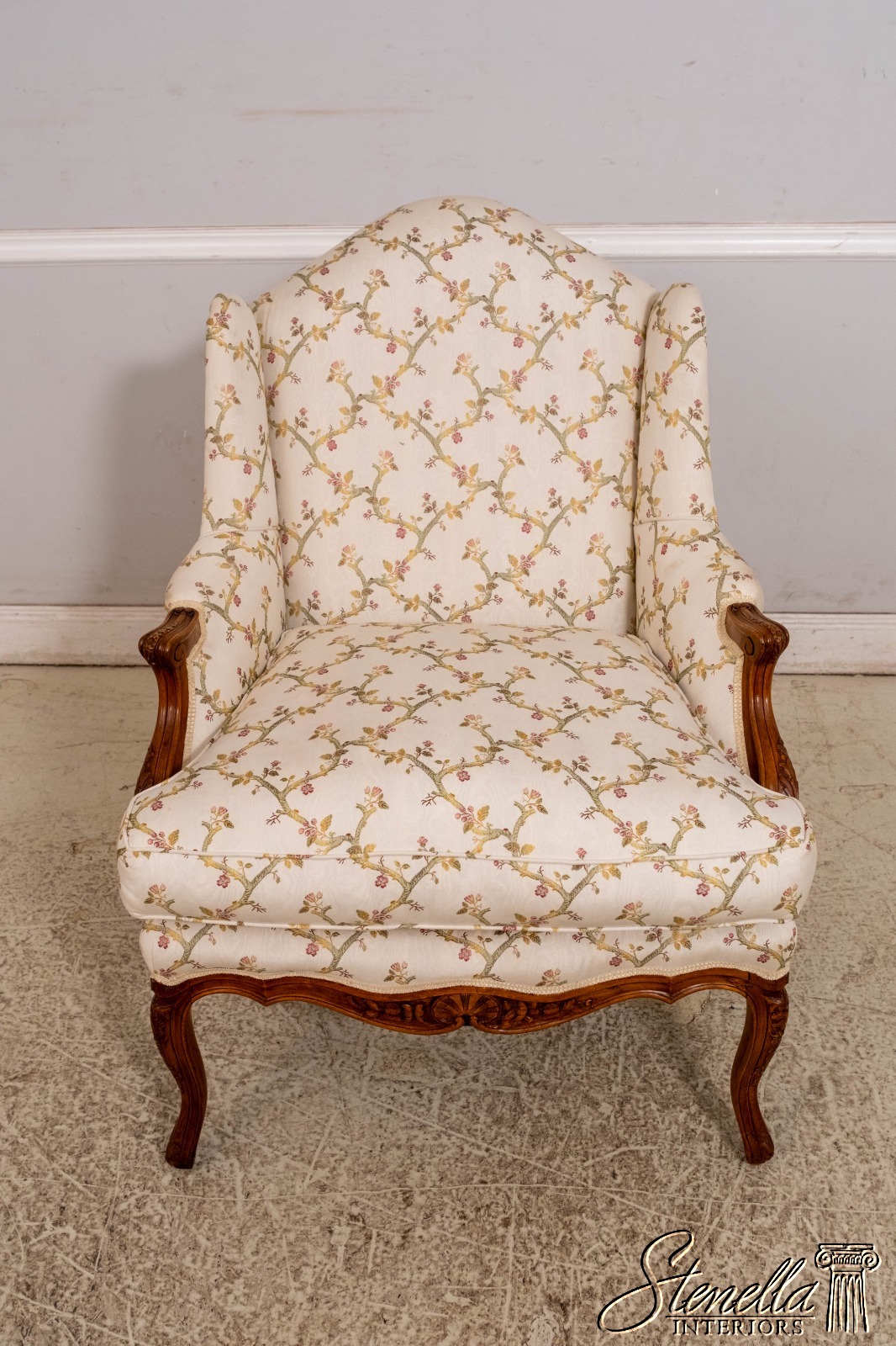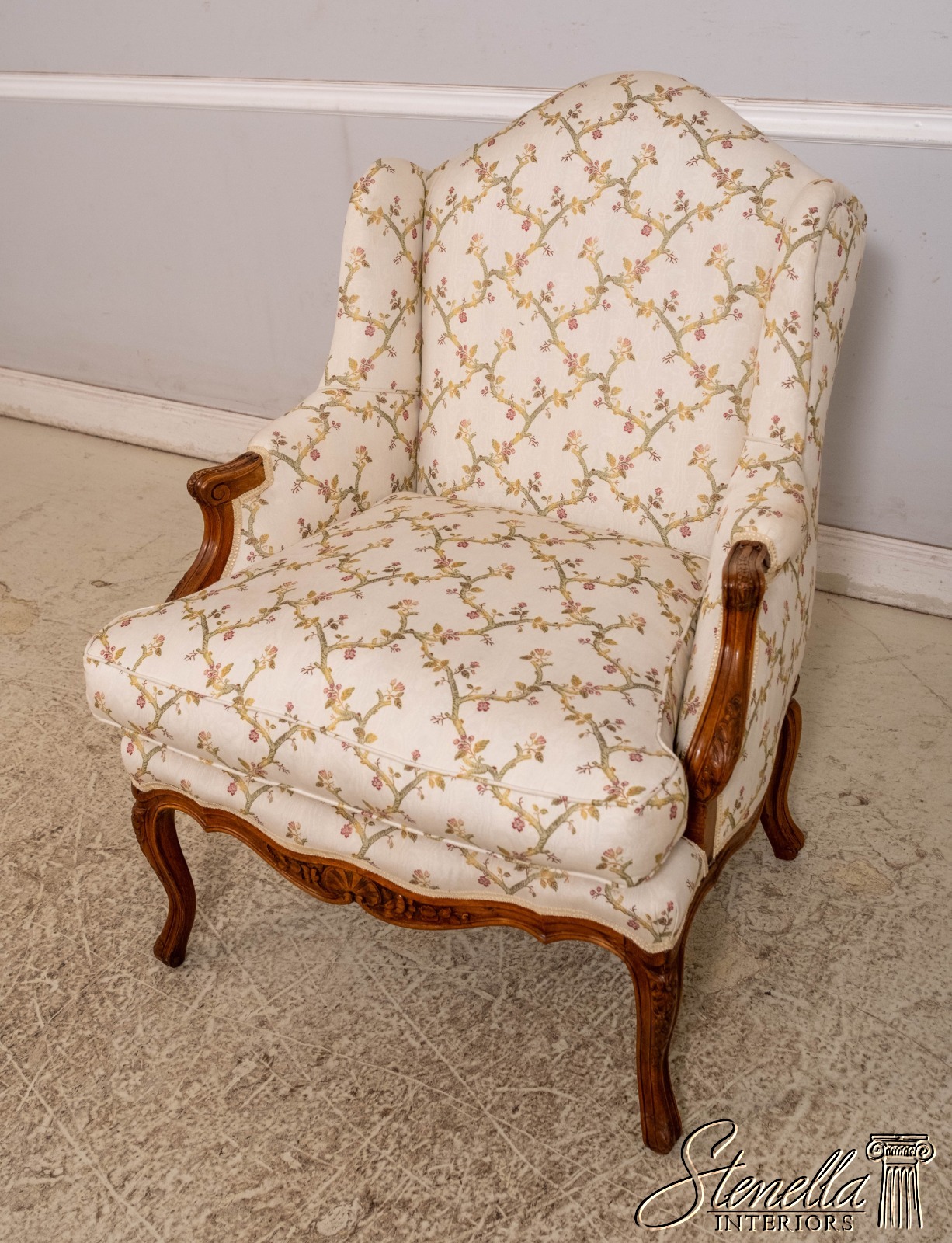 70654: Pair Vintage French Louis XV Style Carved & Upholstered Bergere Chairs