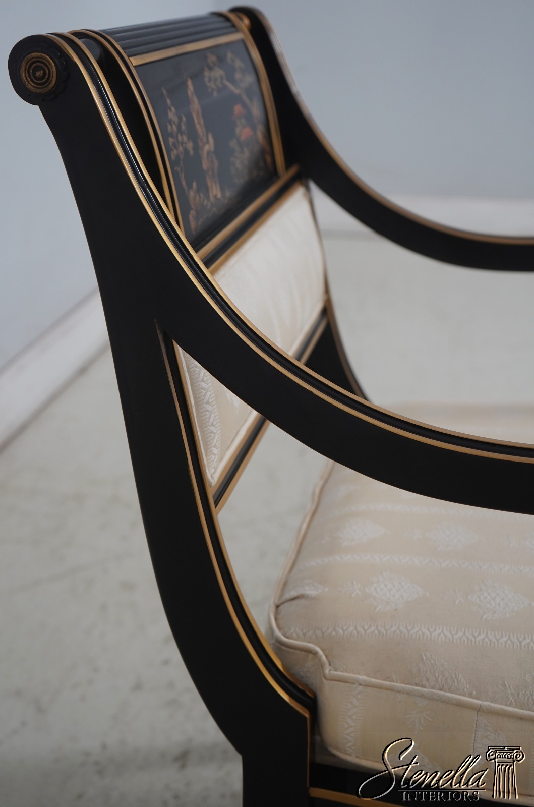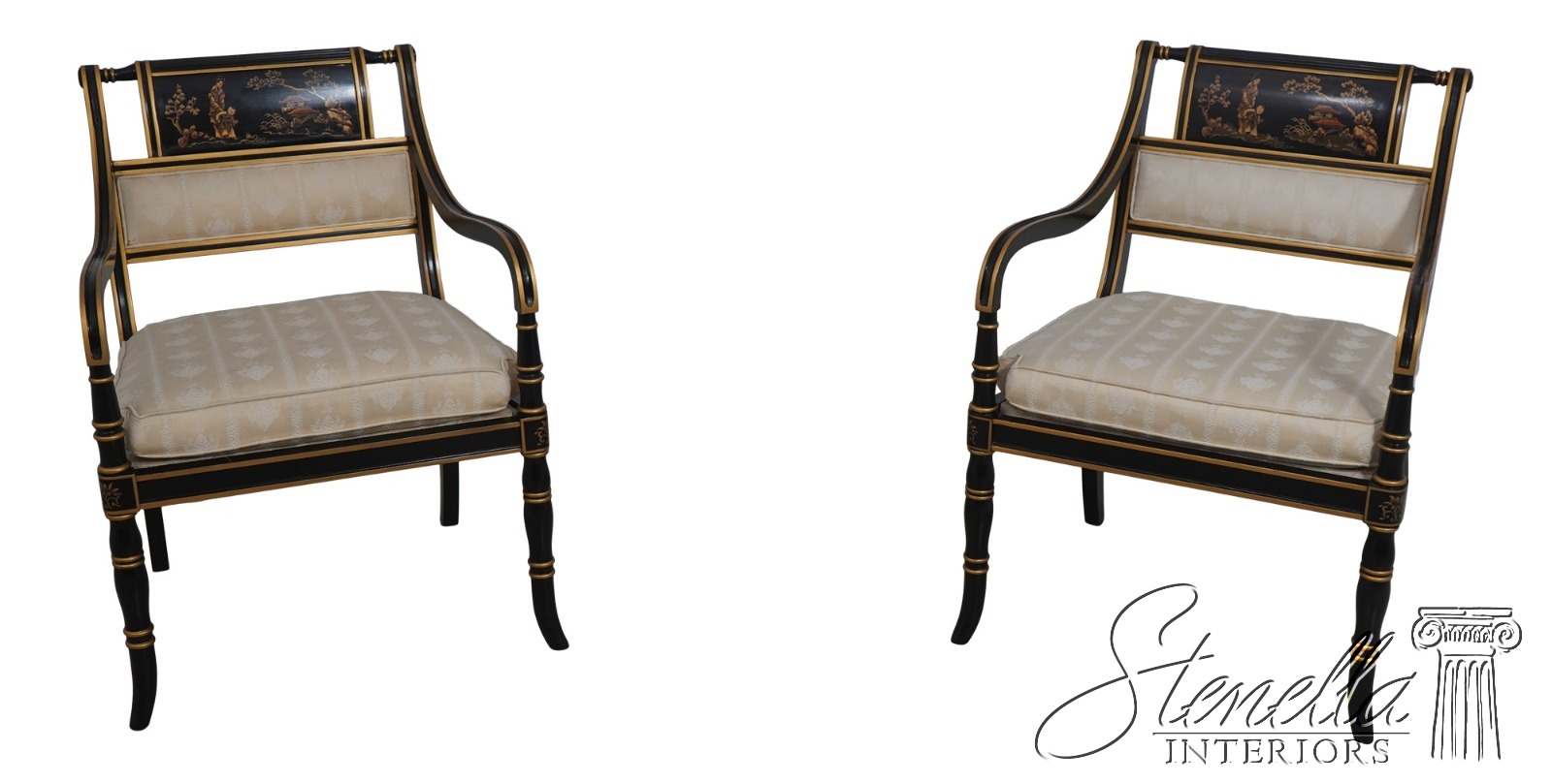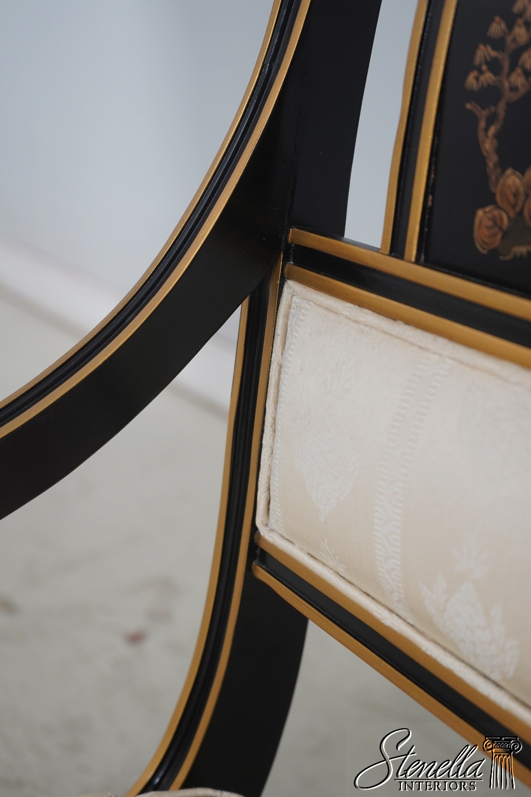 70809: Pair DREXEL Chinoiserie Decorated Black Open Armchairs