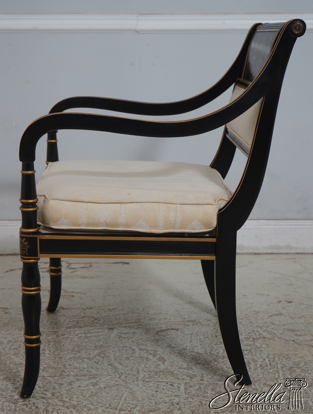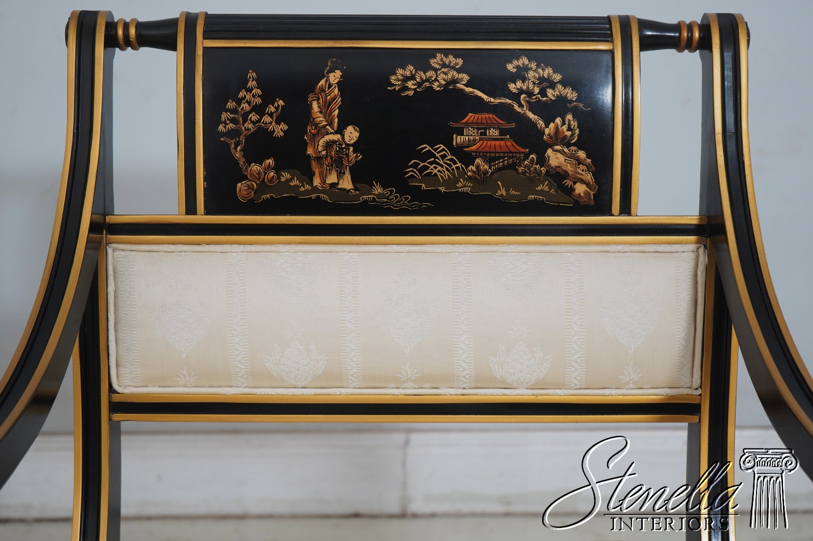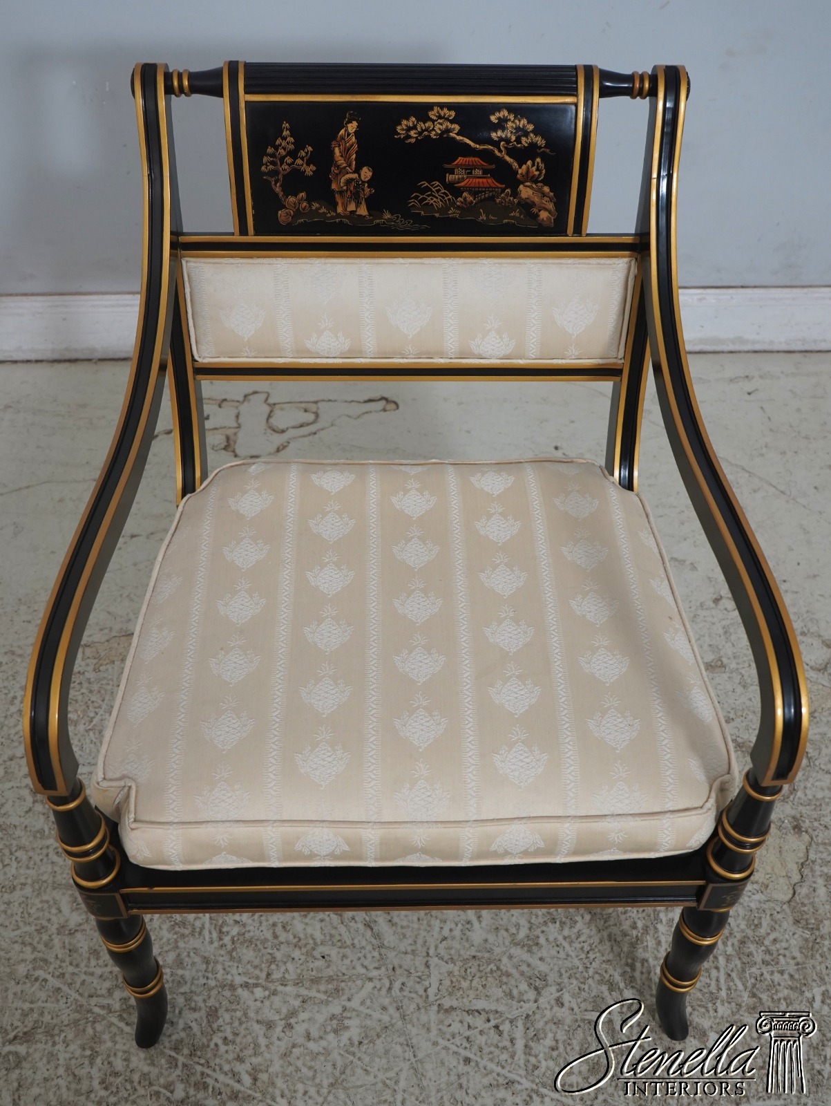 70809: Pair DREXEL Chinoiserie Decorated Black Open Armchairs