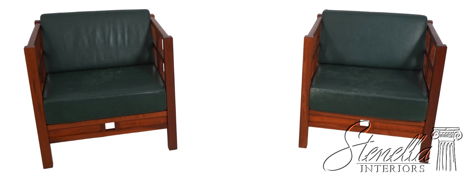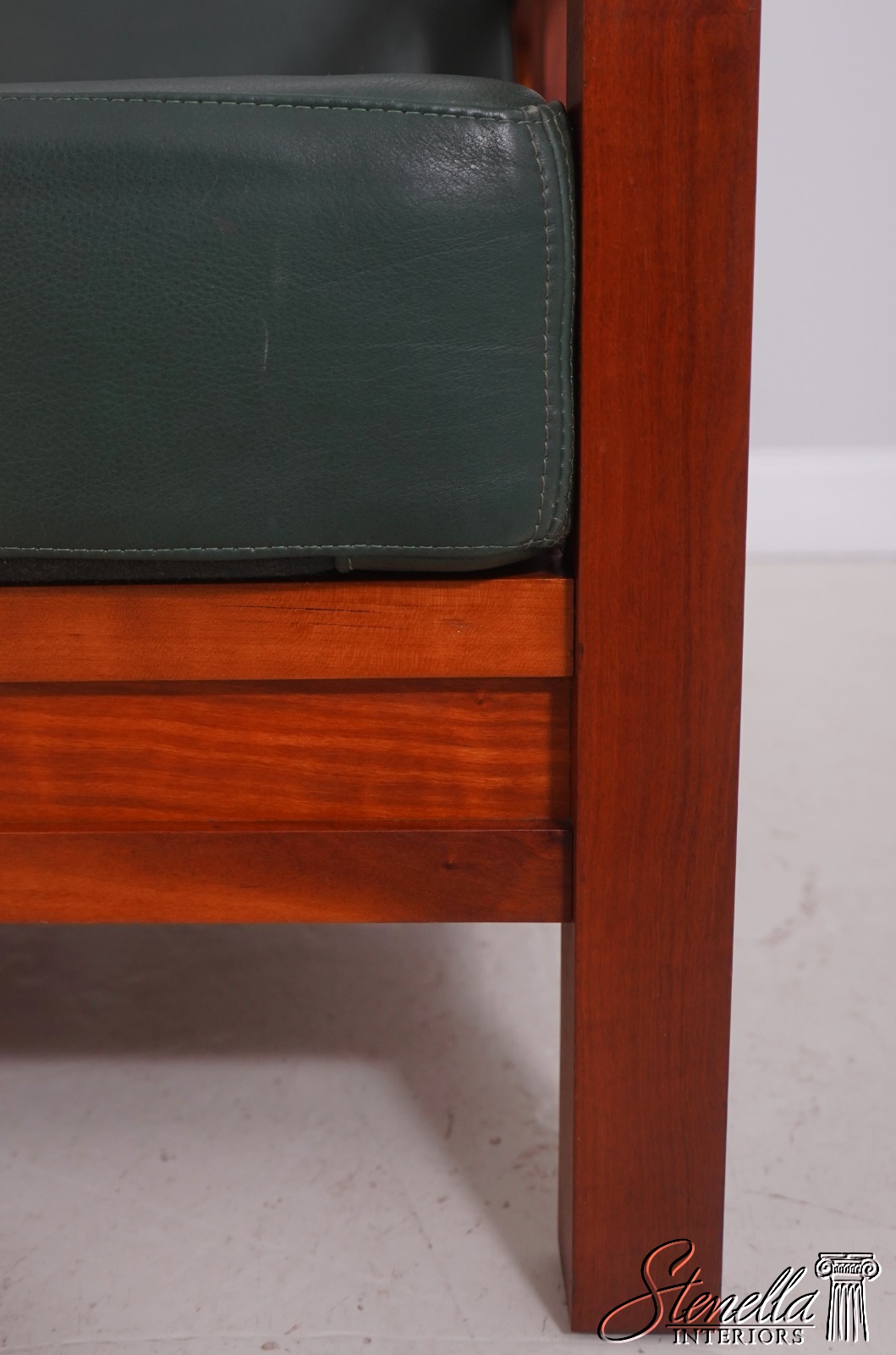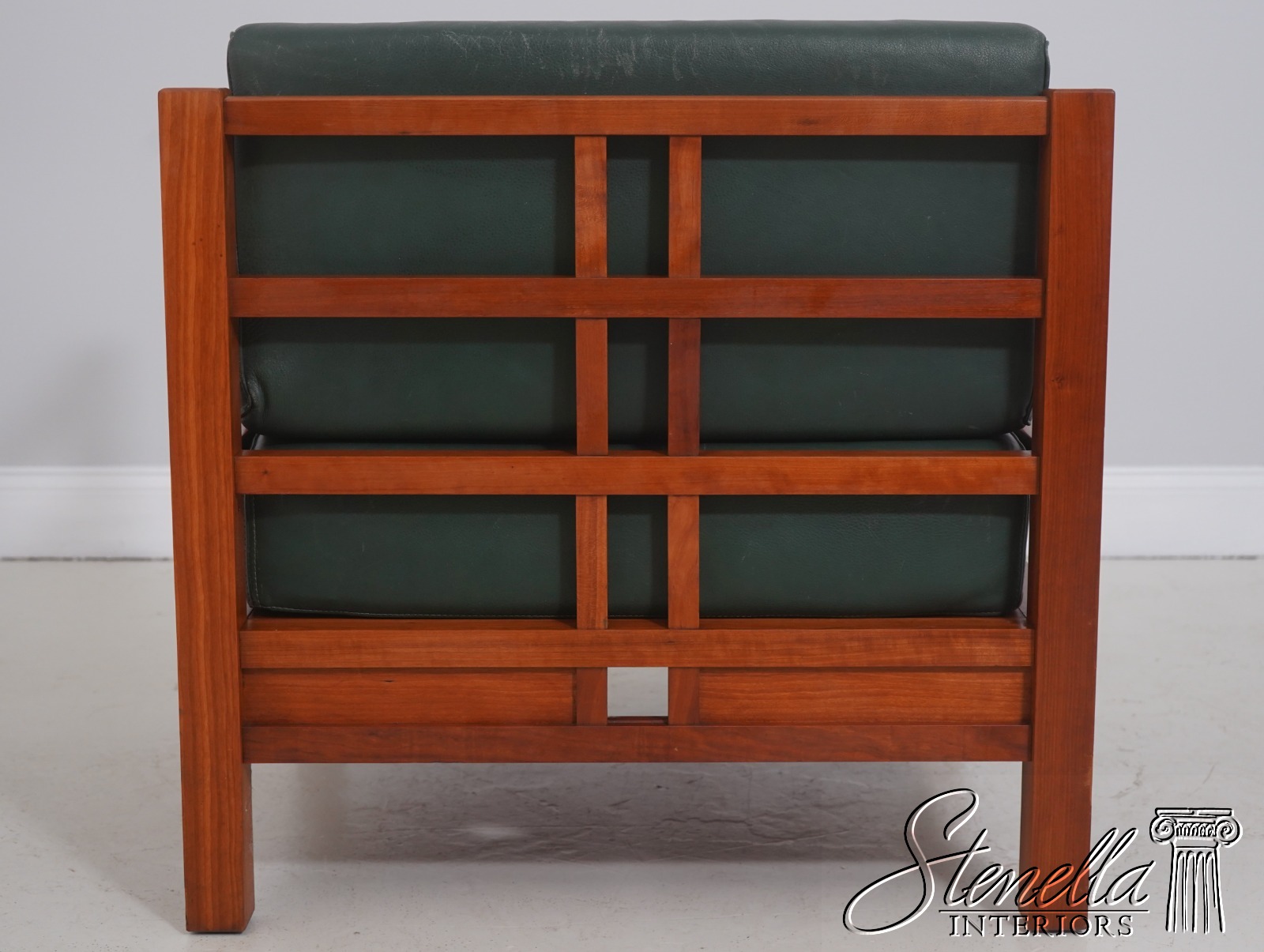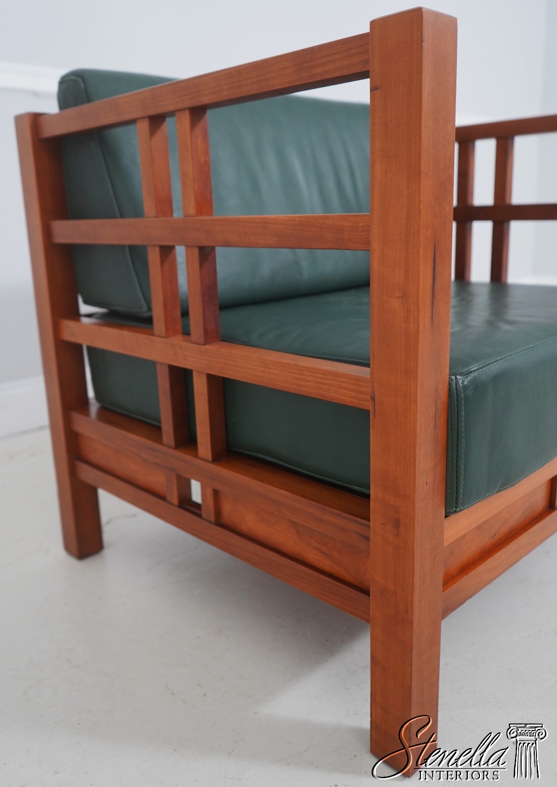 Details: Windward Collection Studio Crafted High Quality Construction Asian Craftsman Inspired Green Leather Cushions w. Some Wear Un-Marked As To Manufacture See Other Offerings For Matching Loveseat & Tables Offered @ Fraction Original Retail Cost - Original Cost Over $5,000 Per Chair!