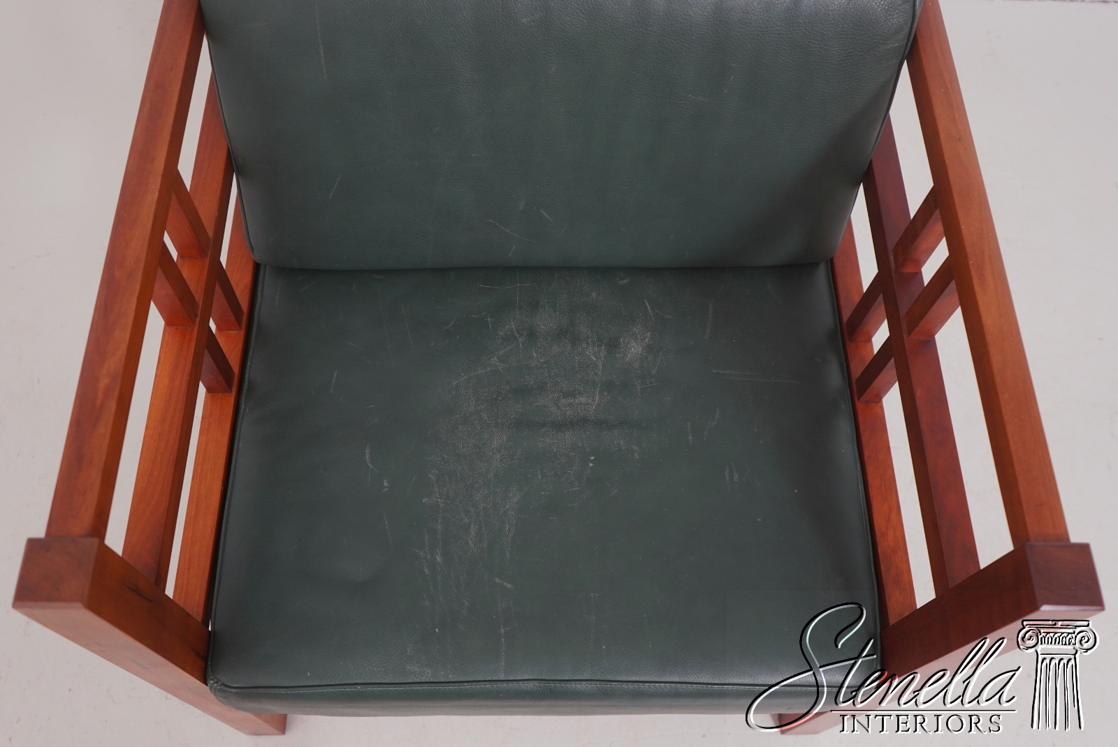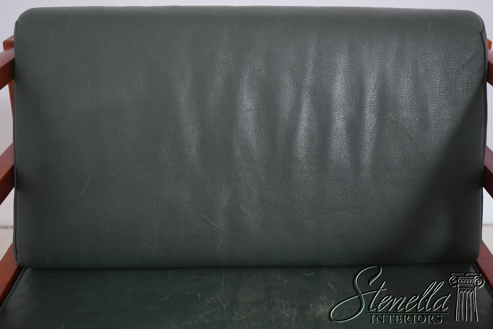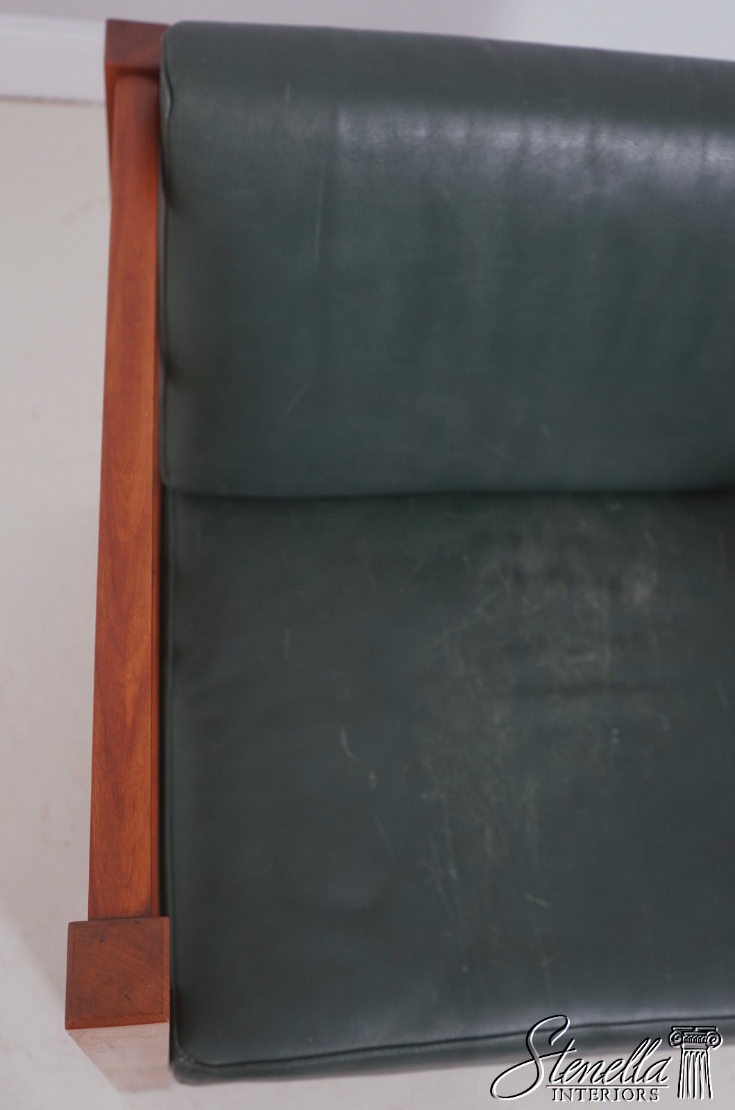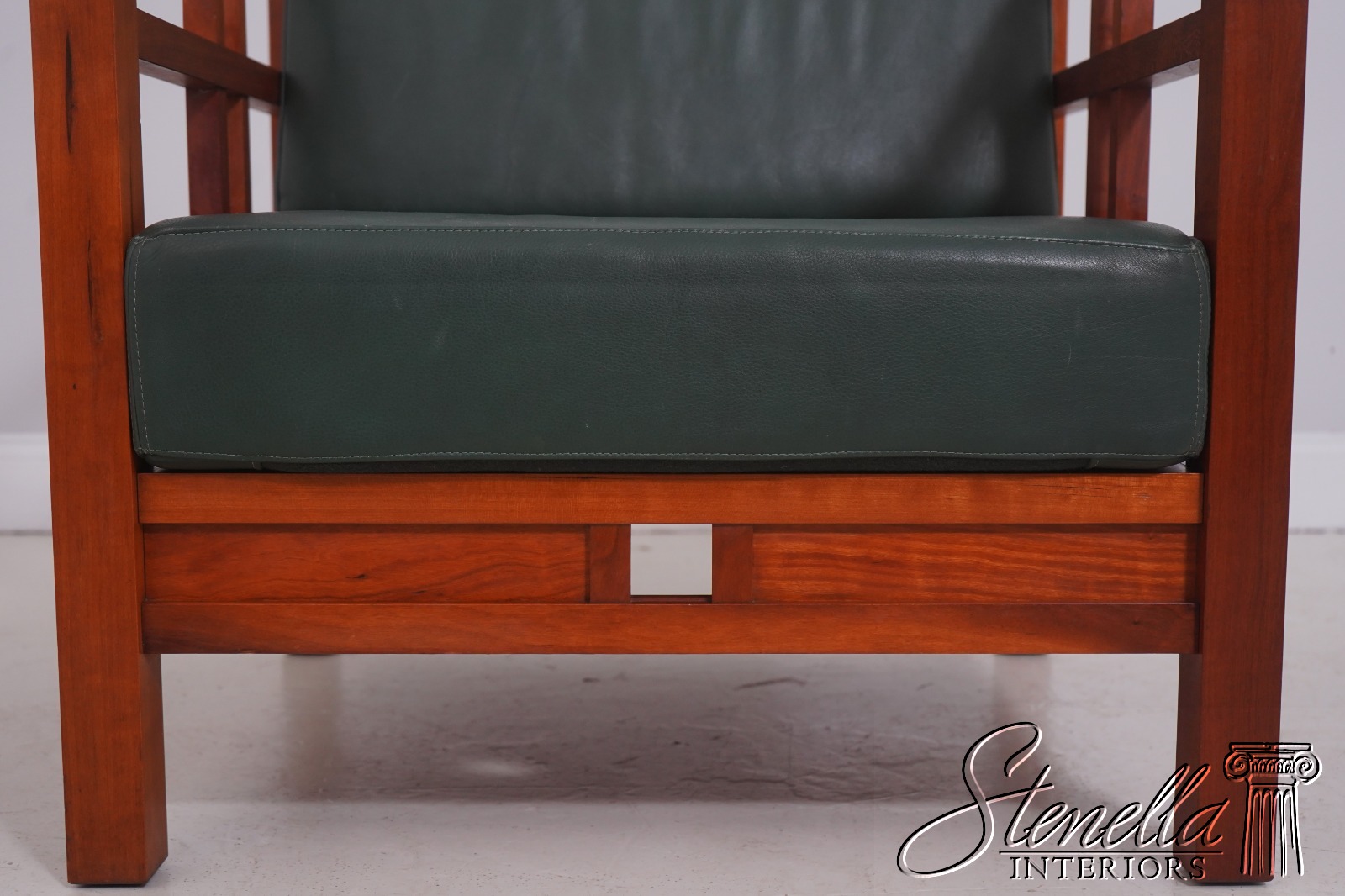 Details: Windward Collection Studio Crafted High Quality Construction Asian Craftsman Inspired Green Leather Cushions w. Some Wear Un-Marked As To Manufacture See Other Offerings For Matching Loveseat & Tables Offered @ Fraction Original Retail Cost - Original Cost Over $5,000 Per Chair!