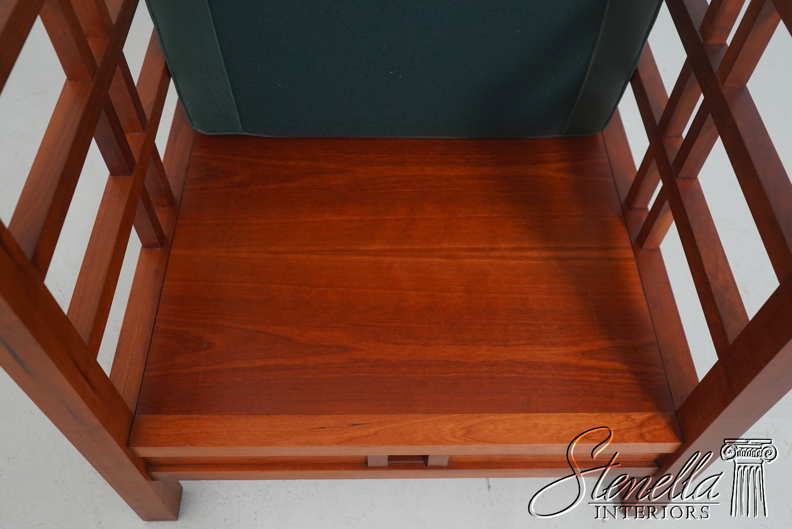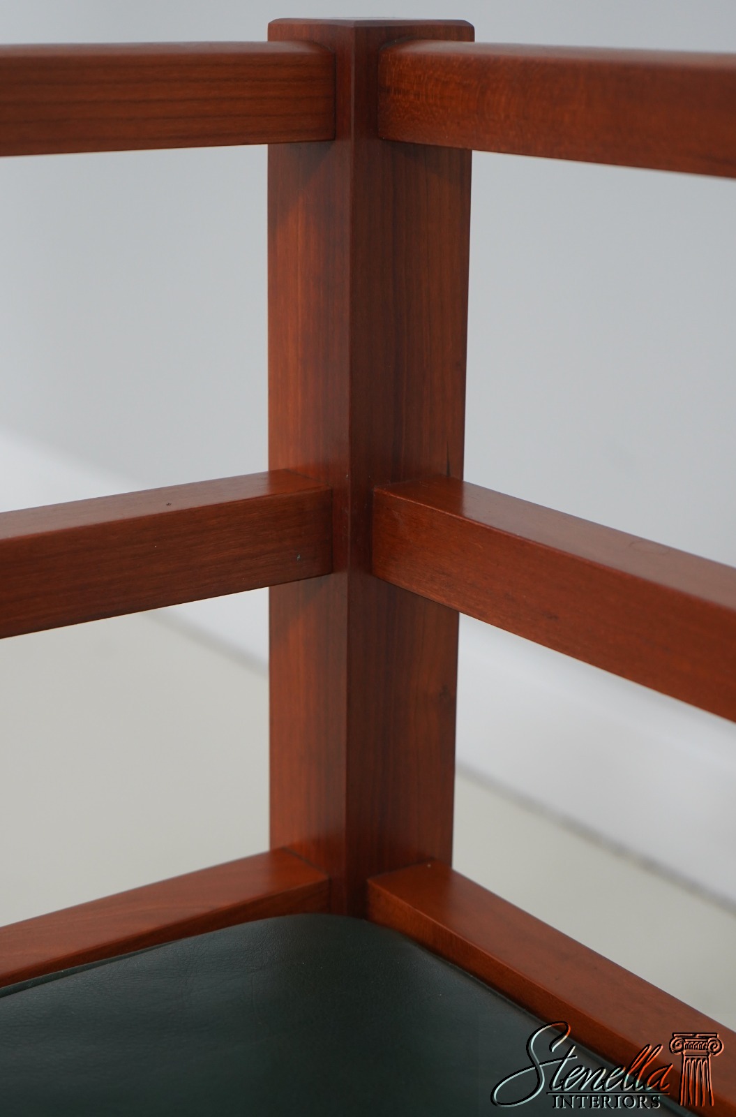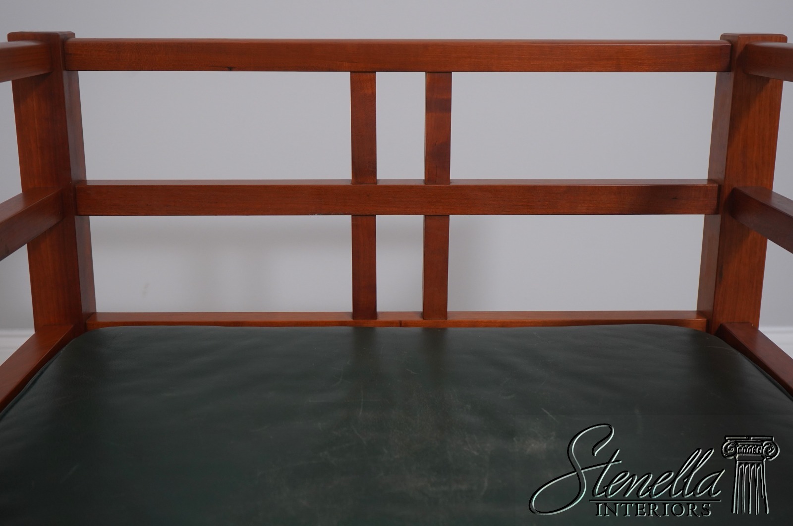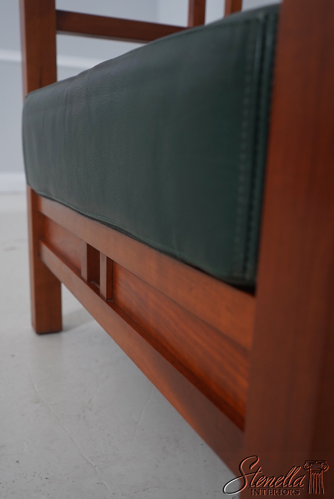 Details: Windward Collection Studio Crafted High Quality Construction Asian Craftsman Inspired Green Leather Cushions w. Some Wear Un-Marked As To Manufacture See Other Offerings For Matching Loveseat & Tables Offered @ Fraction Original Retail Cost - Original Cost Over $5,000 Per Chair!