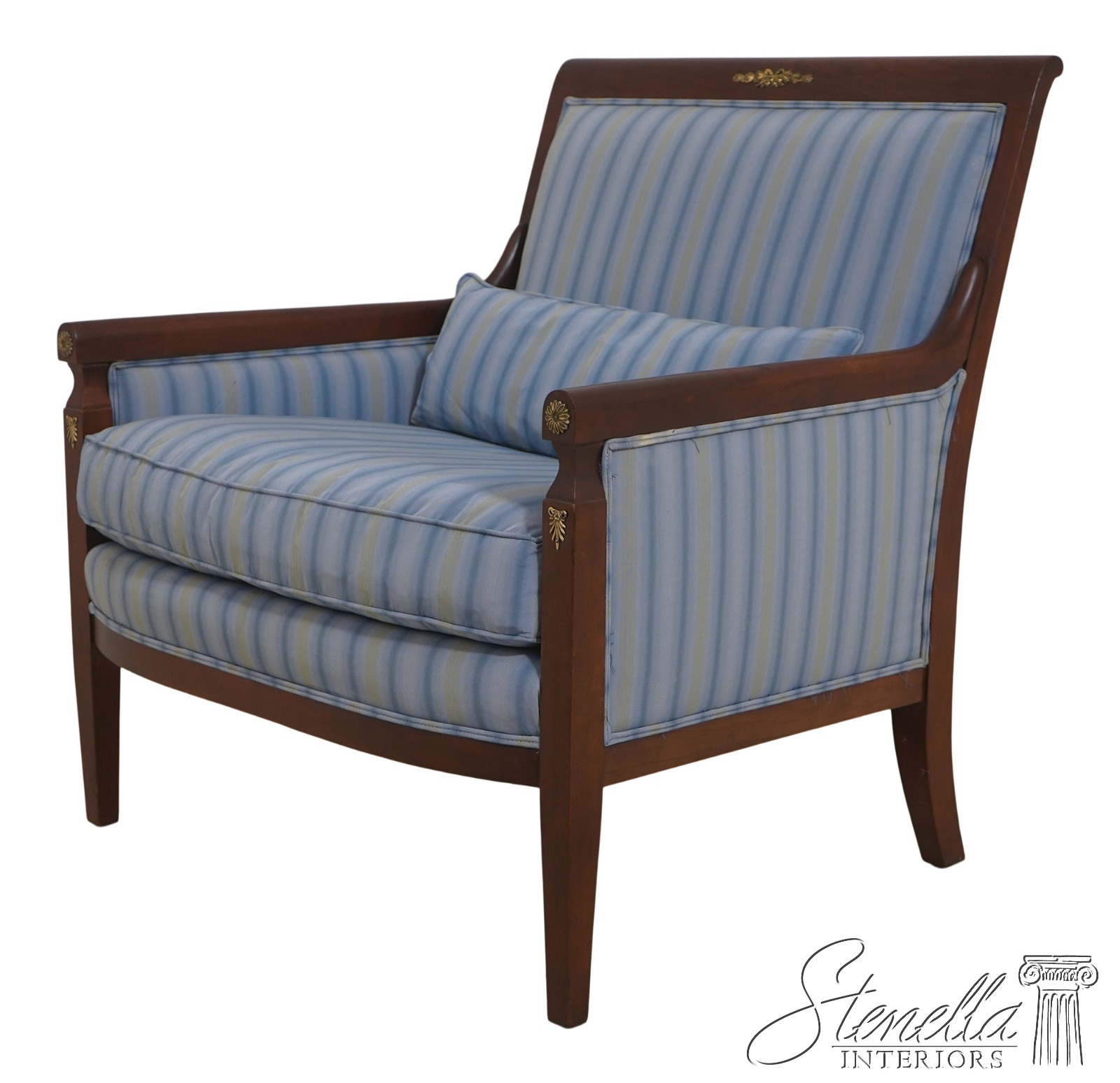 - 71534: BAKER French Empire Style Blue Upholstered Bergère Chair