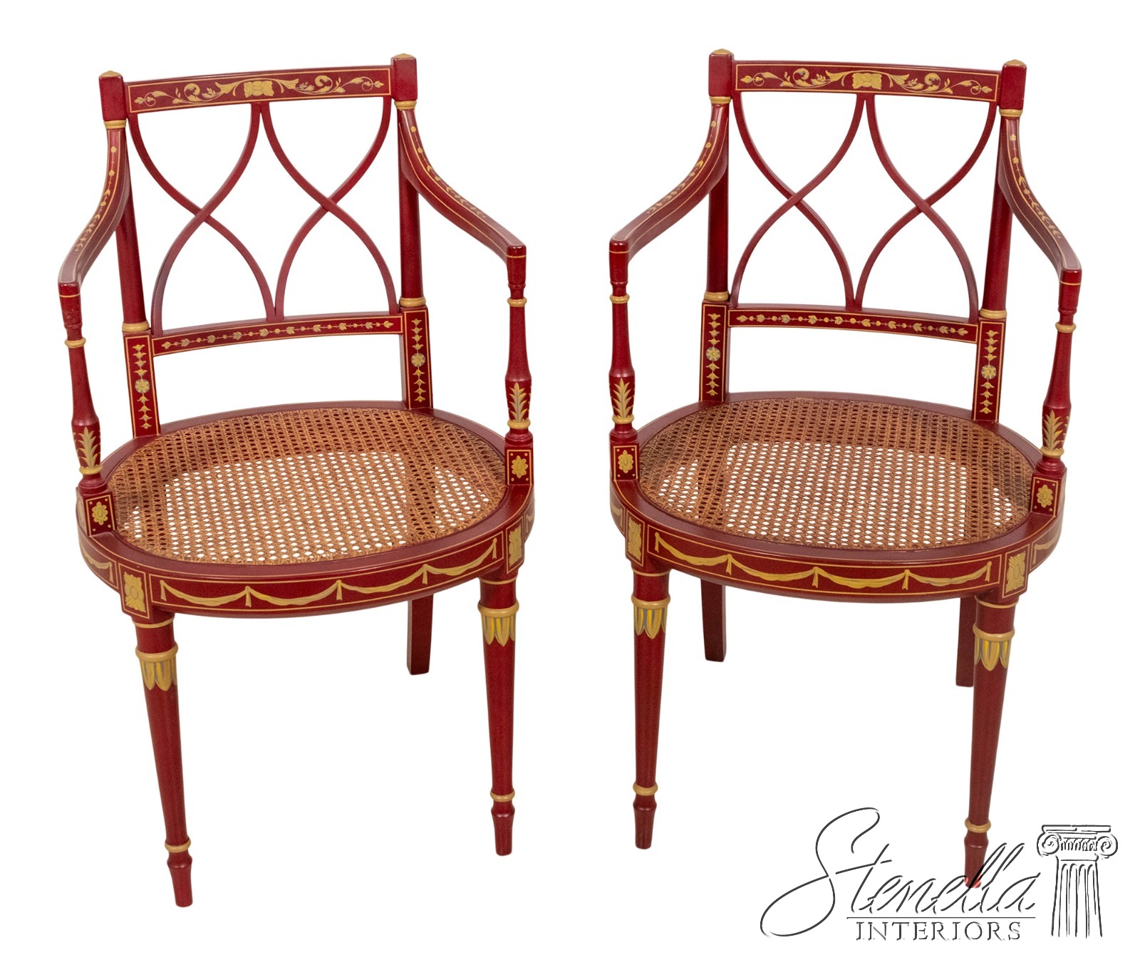 Details: Nice Cane Seats High Quality Construction Hand Painted Gold Details On Red Finish Frames Message Us About Having Custom Seat Cushions Made Un-Marked As To Manufacture See Other Offerings For Matching Pair Of Armchairs