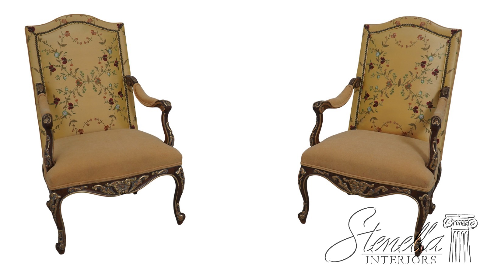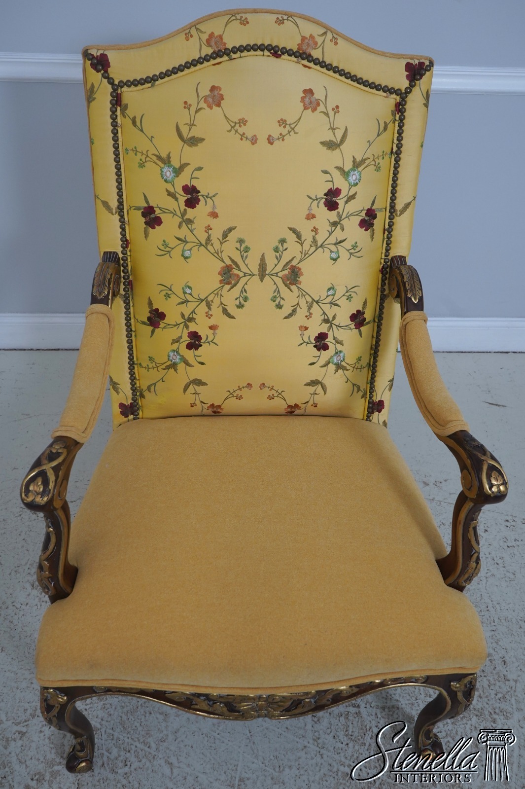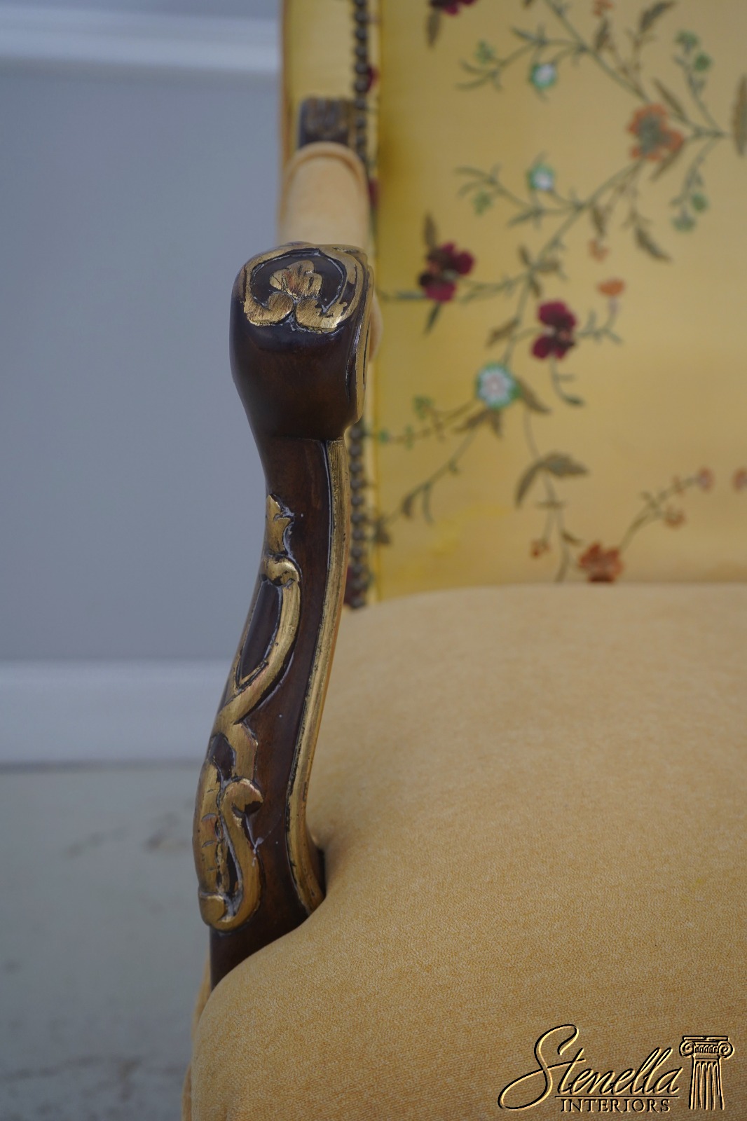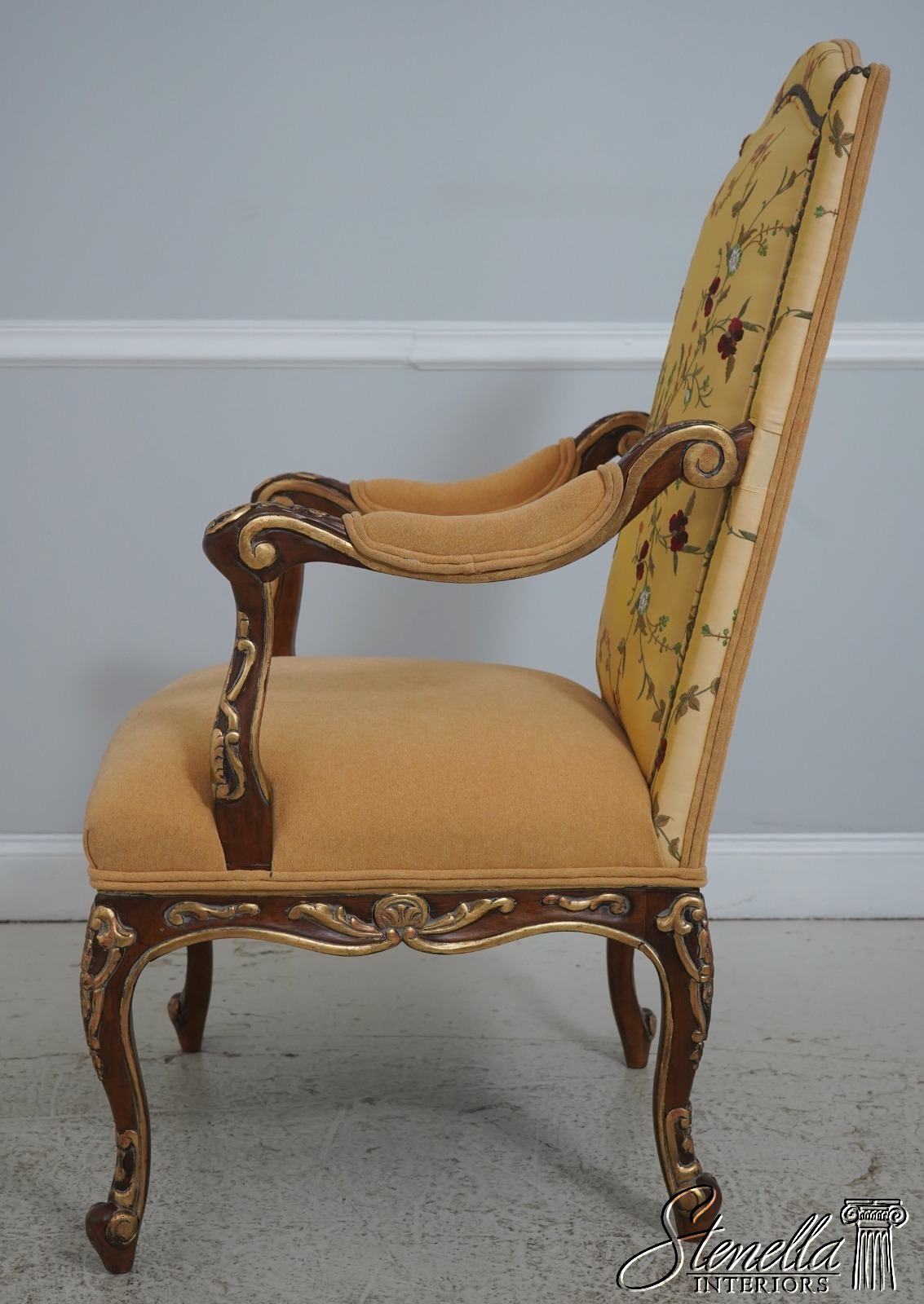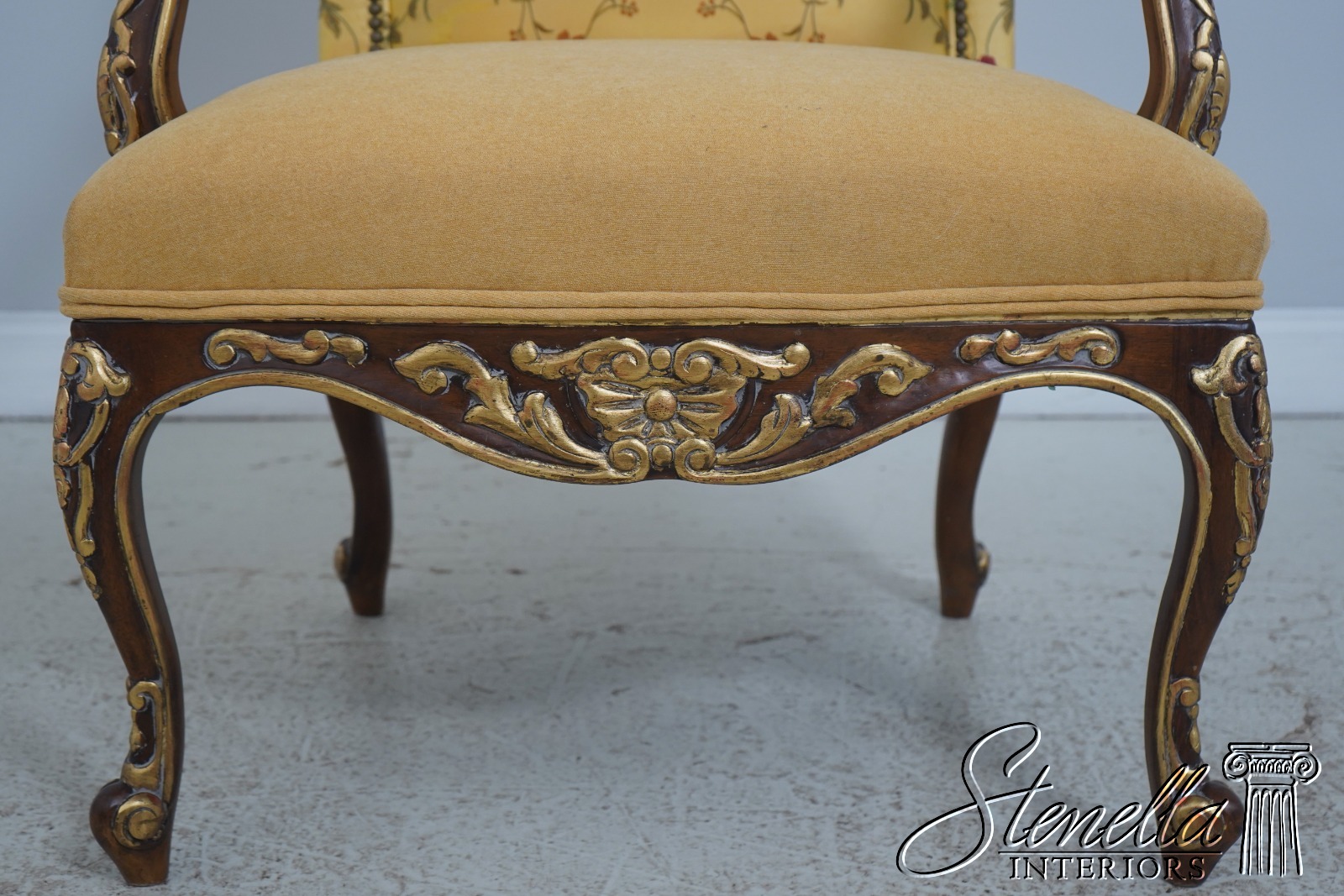 Details: Fine Carved Details High Quality Construction French Scrolled Legs & Feet French Louis XV Floral Motif - New upholstery on seat and arms Offered @ Fraction Original Retail Cost