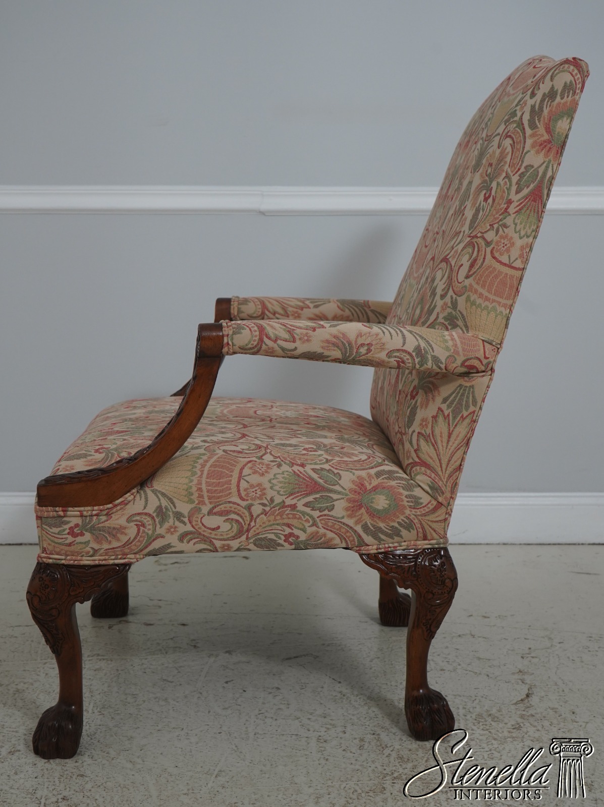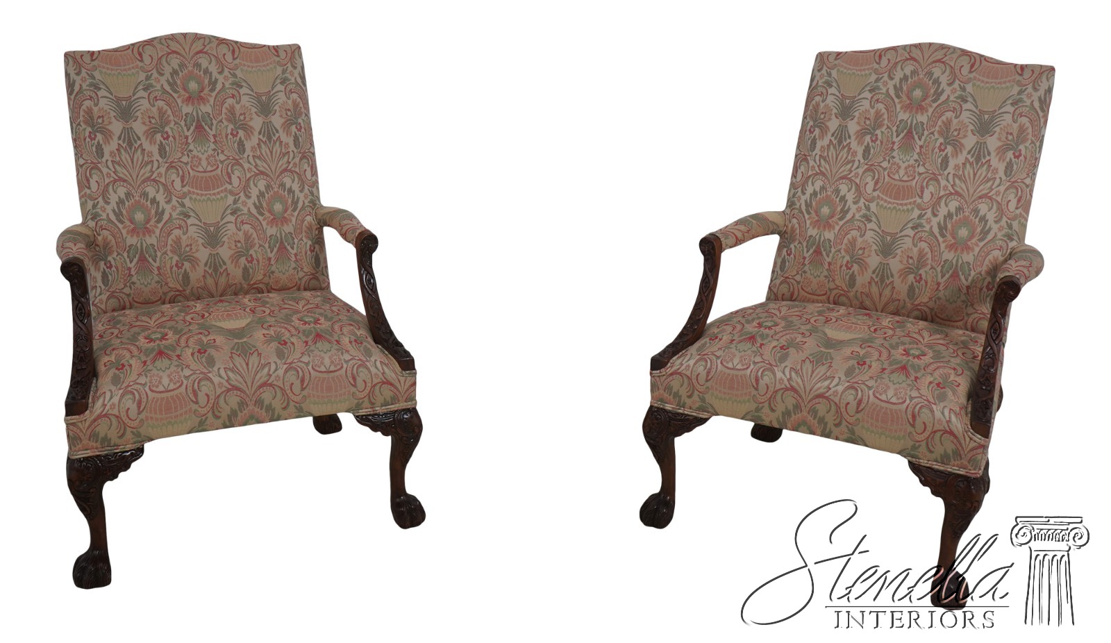 71769: Pair Chippendale Paw Feet Newly Upholstered Armchairs