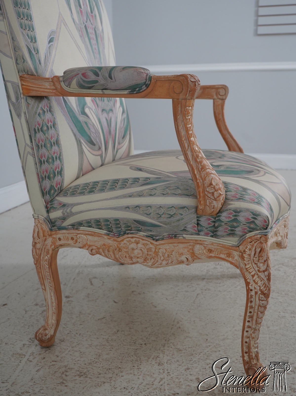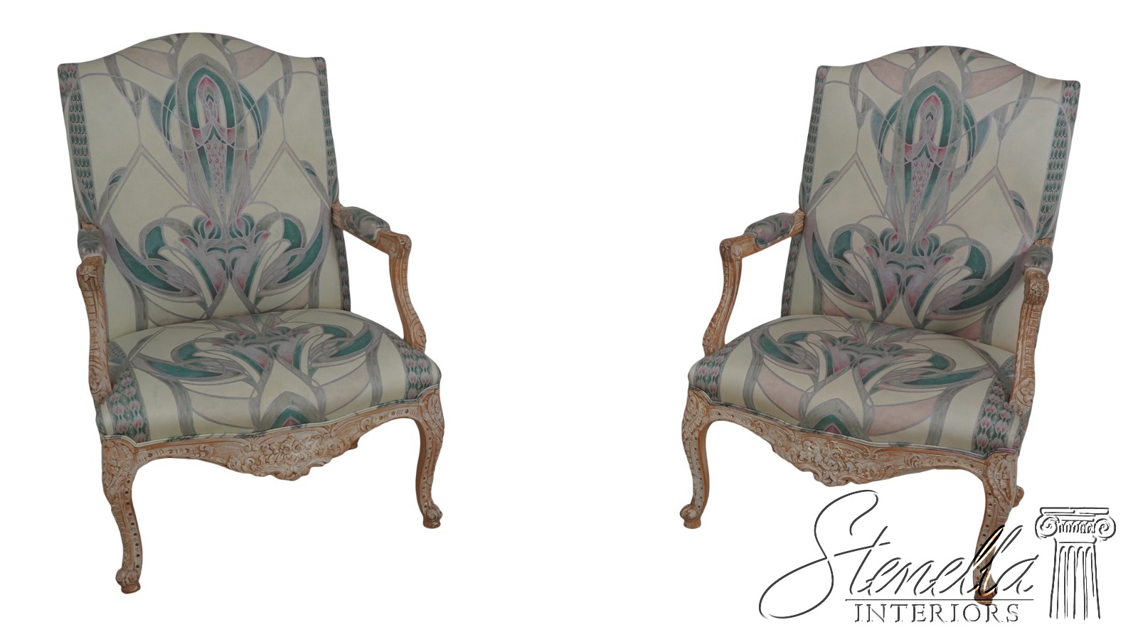 71779: Pair Vintage French Louis XV Carved Open Arm Library Chairs