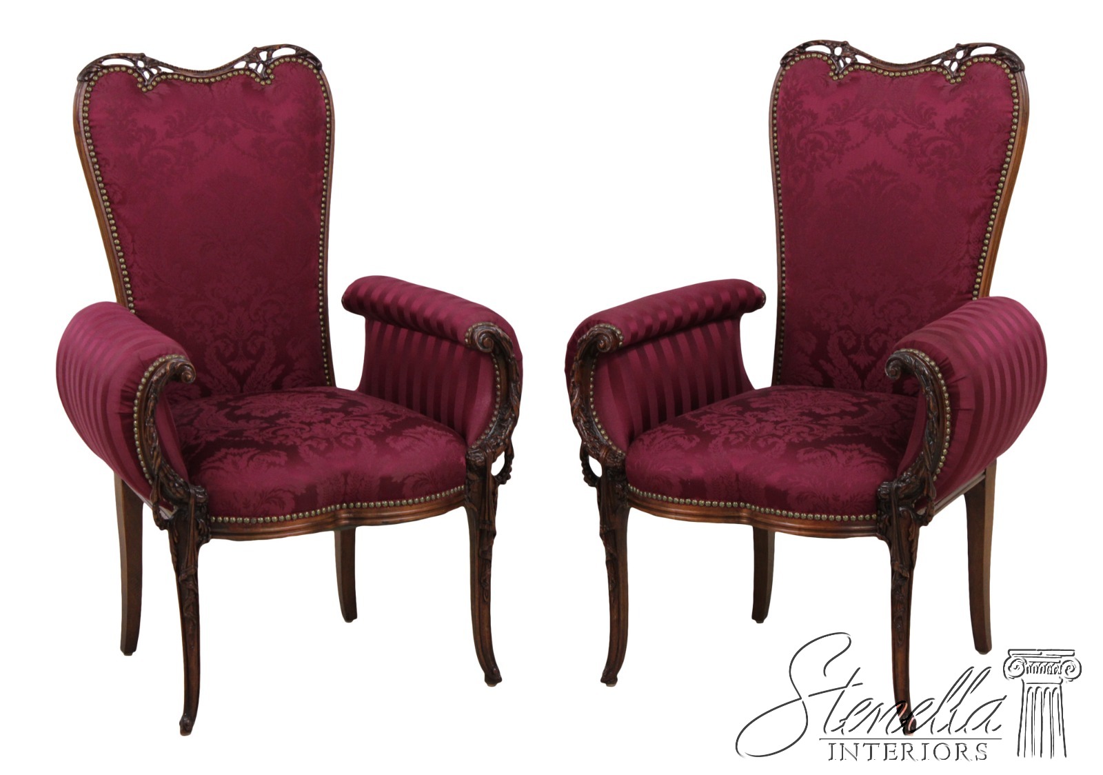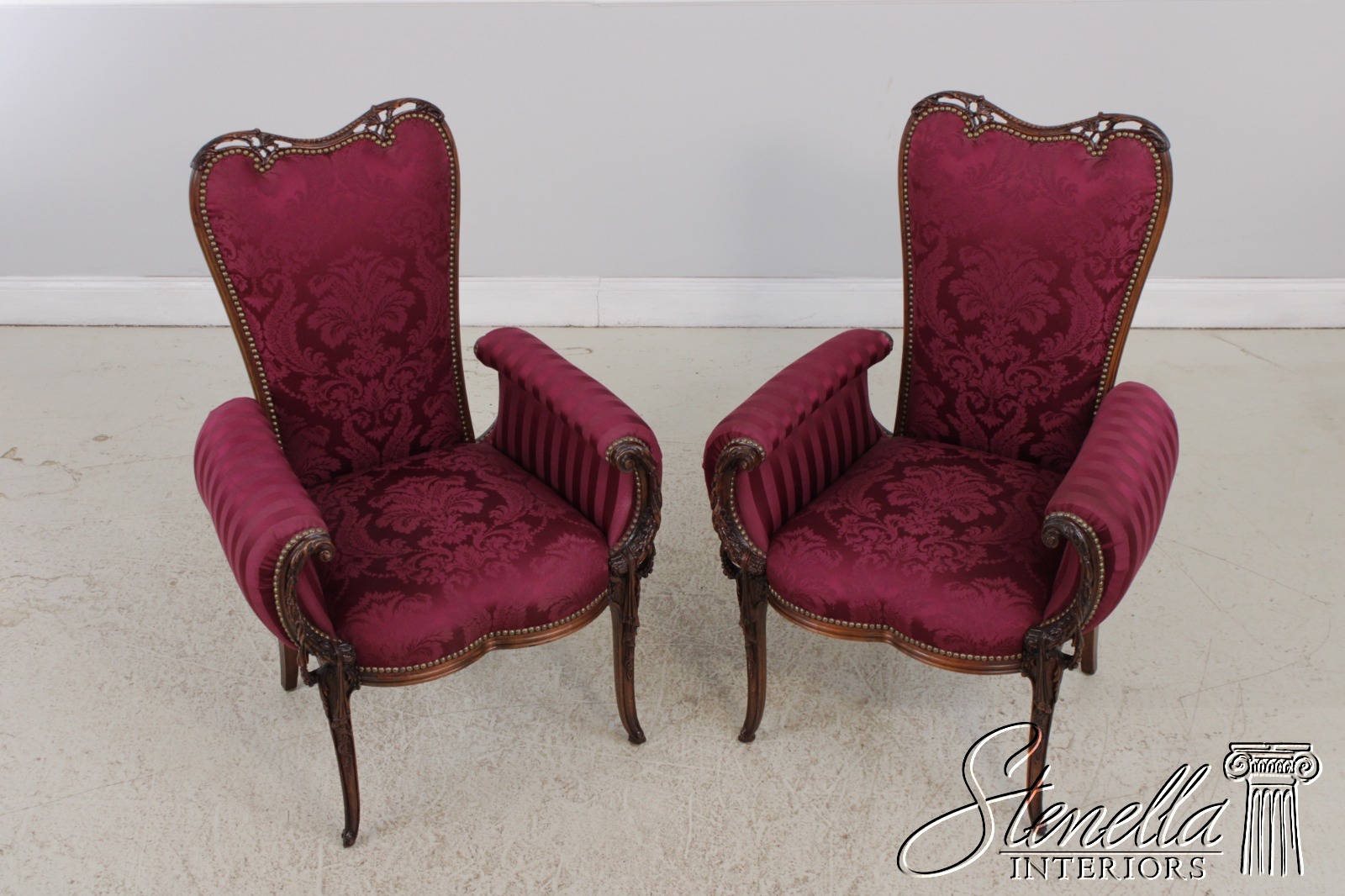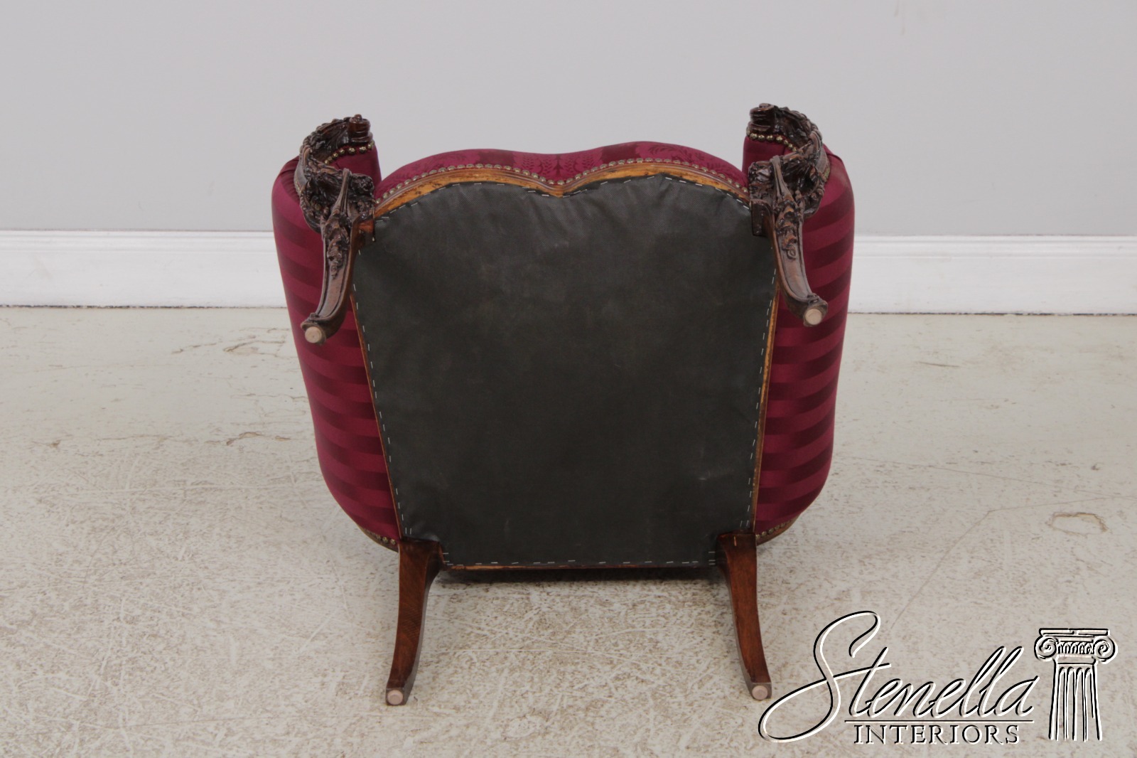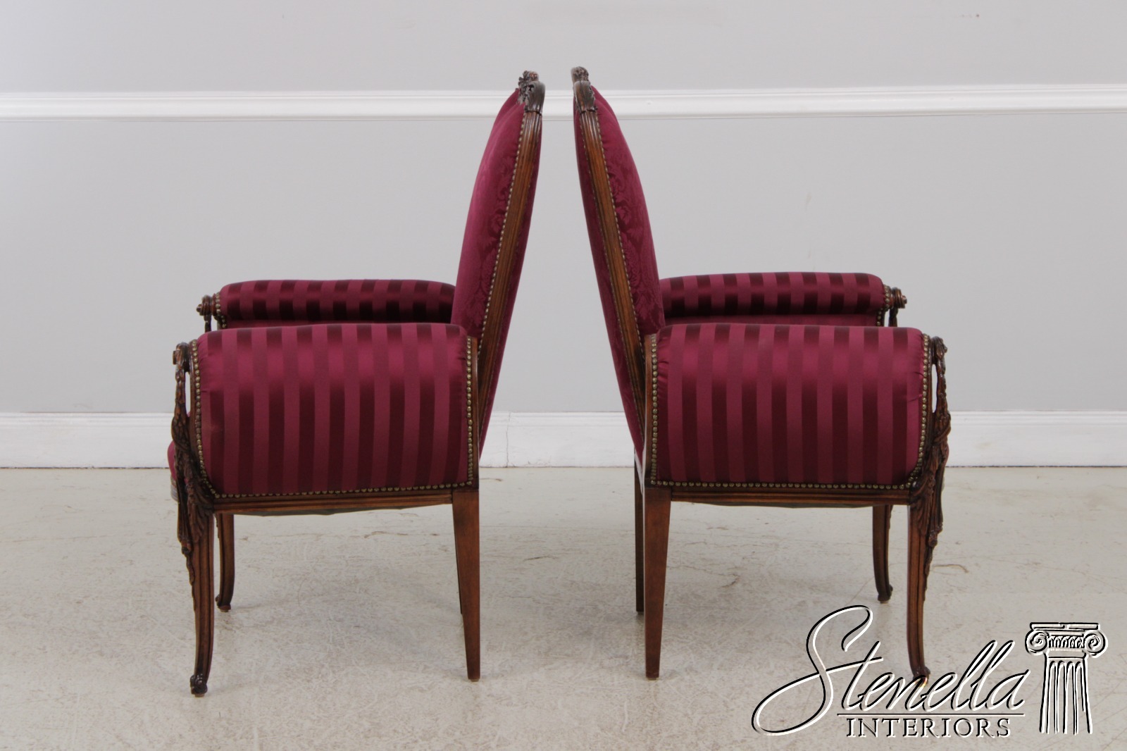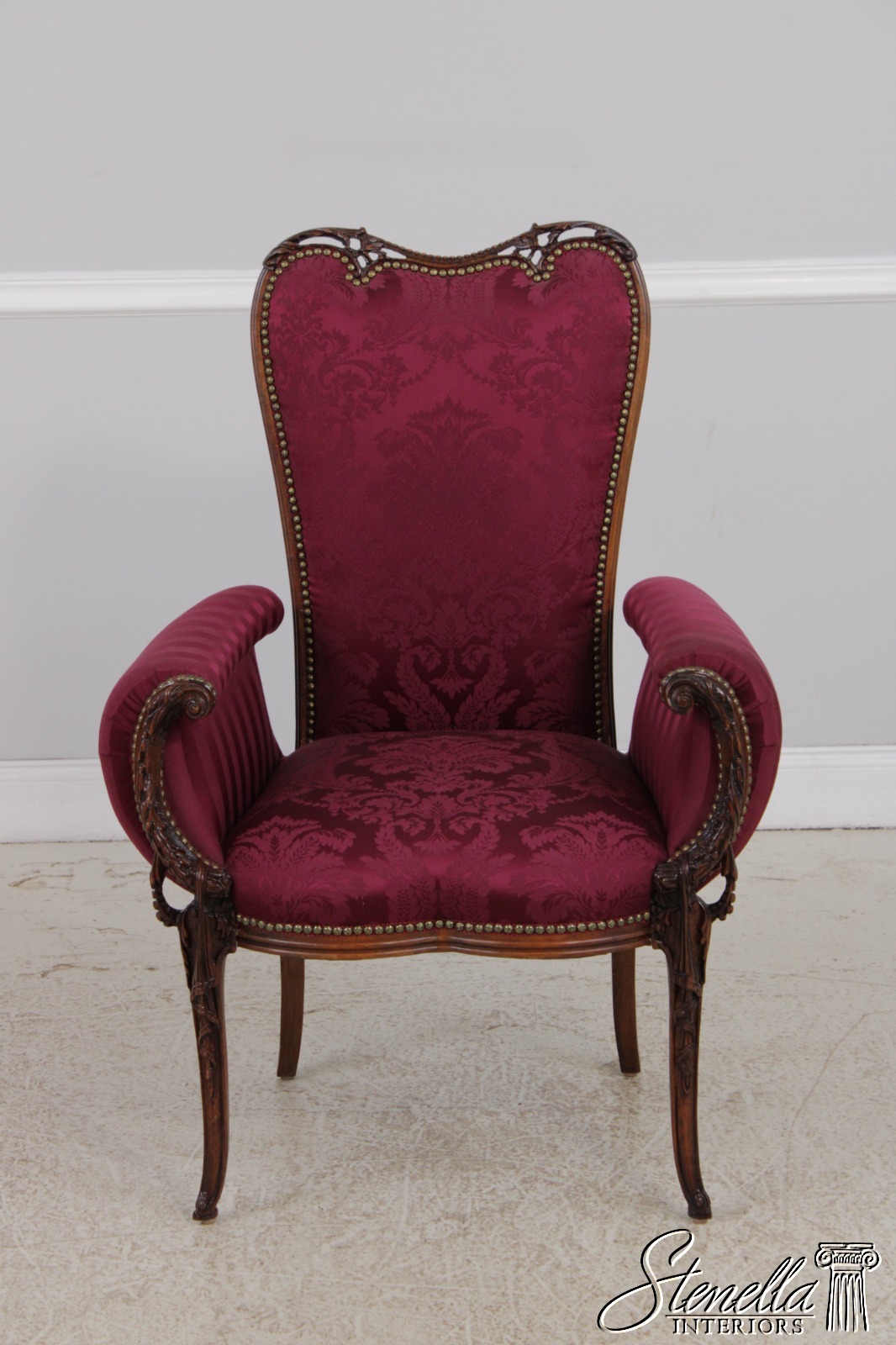 Details: Mahogany Fine Carved Details High Quality Construction Queen Anne Legs & Pad Feet French Style Stunning Damask & Striped Upholstery Floral Motif Tack Head Trim Curved Scroll Arms Saber Legs Professionally Reupholstered Approx. 3 Years Ago Offered @ Fraction Original Retail Cost