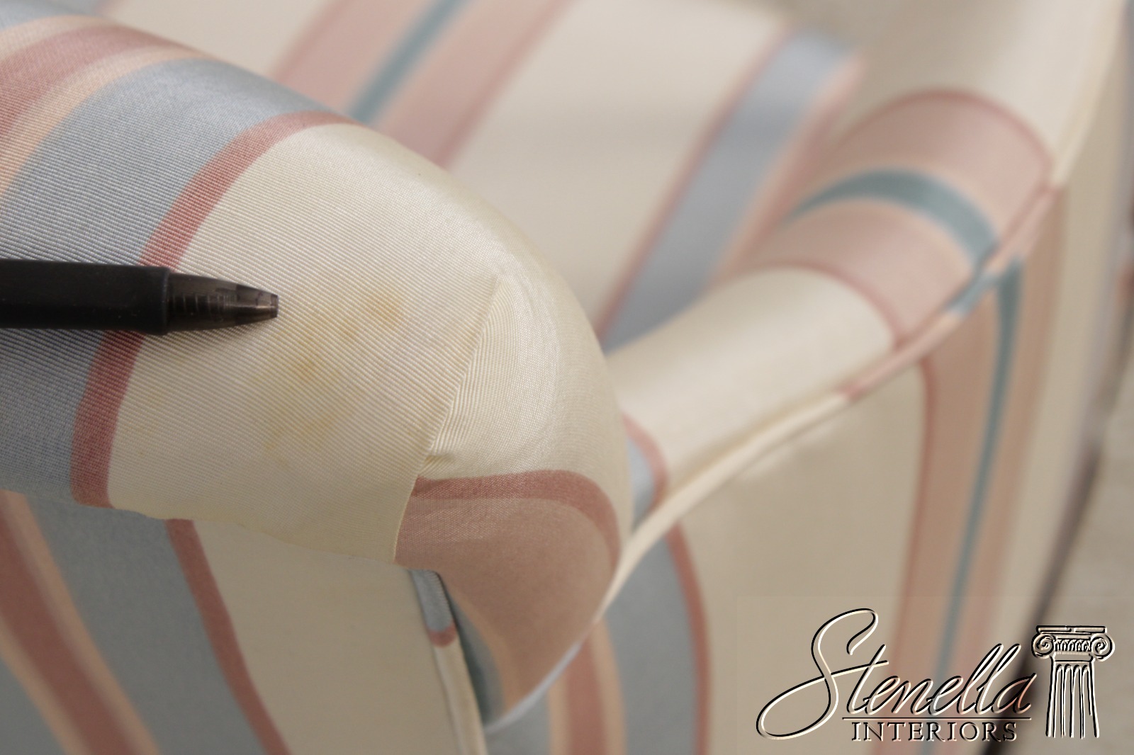 Sometimes upholstered items may show some wear or minor use. Or you may want to have recovered in different upholstery to match your decor’. Please feel free to contact us for information on having this or any of our items professionally re-upholstered in the fabric of your choice. We are able to make recommendations.
