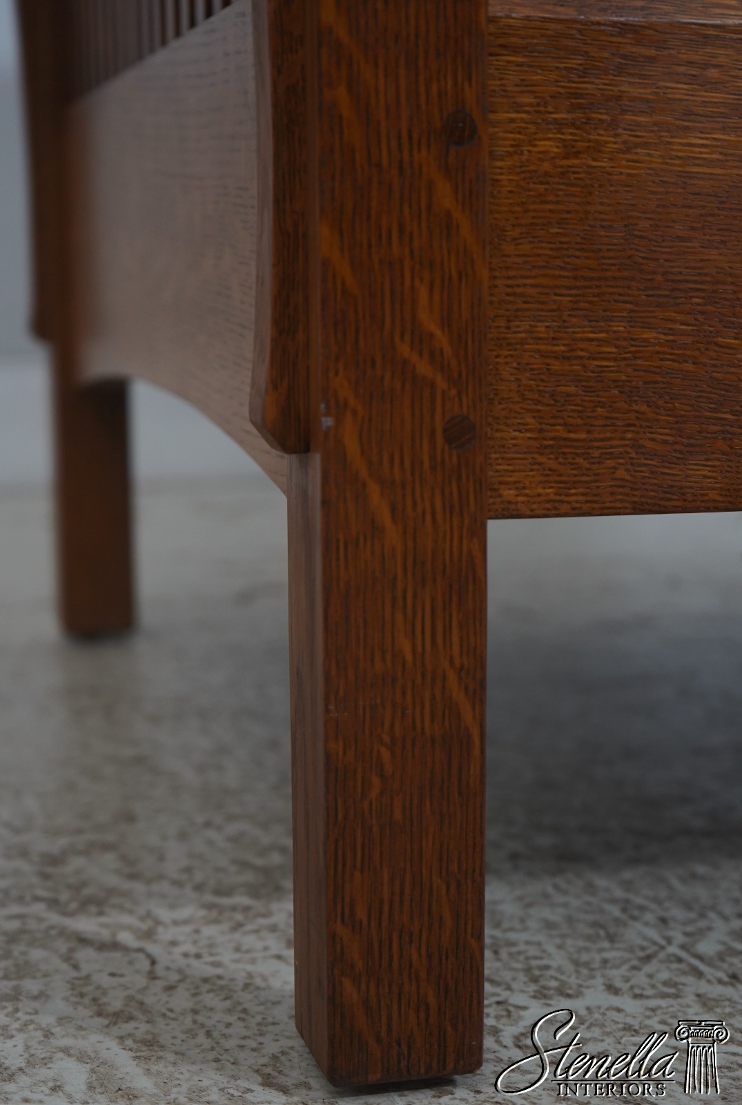 Details: Finish no 35 See Other Offerings For Matching Chair High Quality Construction Oak Arts & Crafts Style Spindle Sides & Back Mortise & Tenon Construction Message Us About Having Black Fabric Replaced On Underside Of Seat Offered @ Fraction Original Retail Cost
