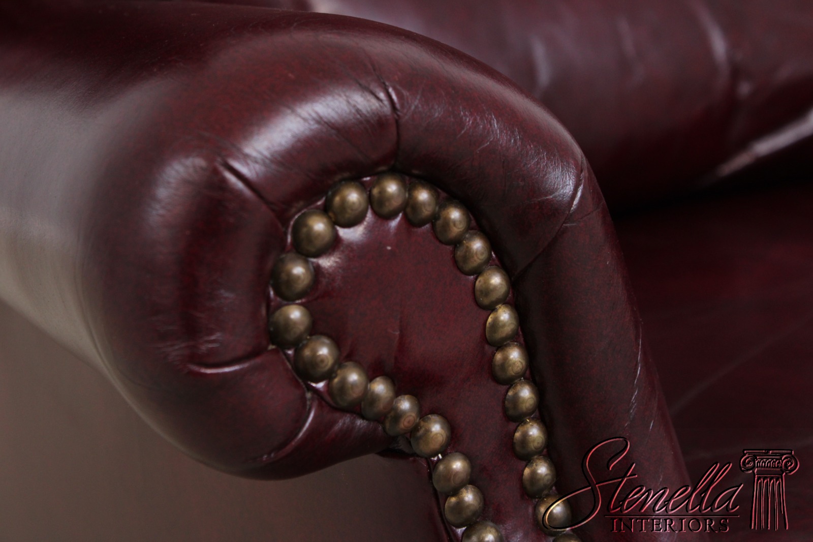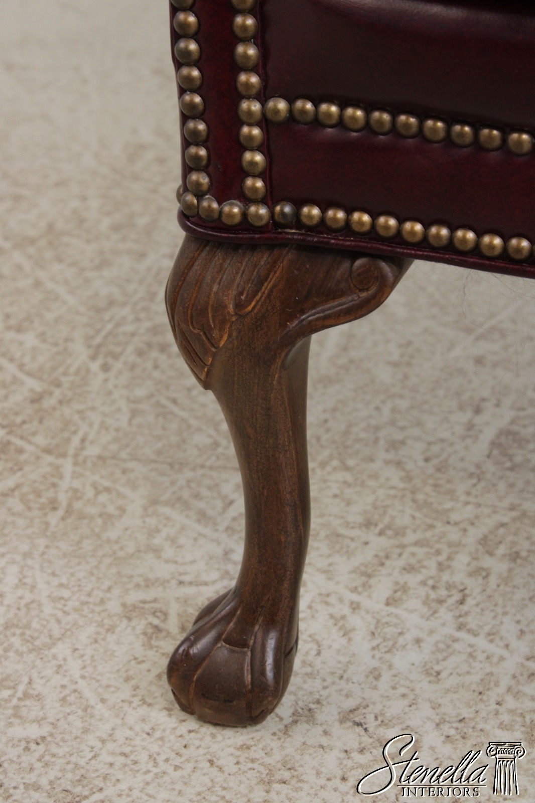 Details: Ball & Claw Feet Fine Carved Details High Quality Construction Nice Tooled Leather Queen Anne Legs & Pad Feet 18 C. Design Chippendale Style English Style Traditional Style Tack Head Trim Rolled Arms Offered @ Fraction Original Retail Cost