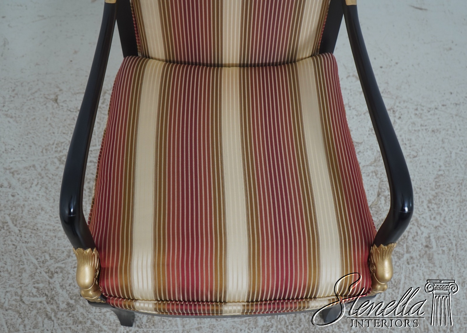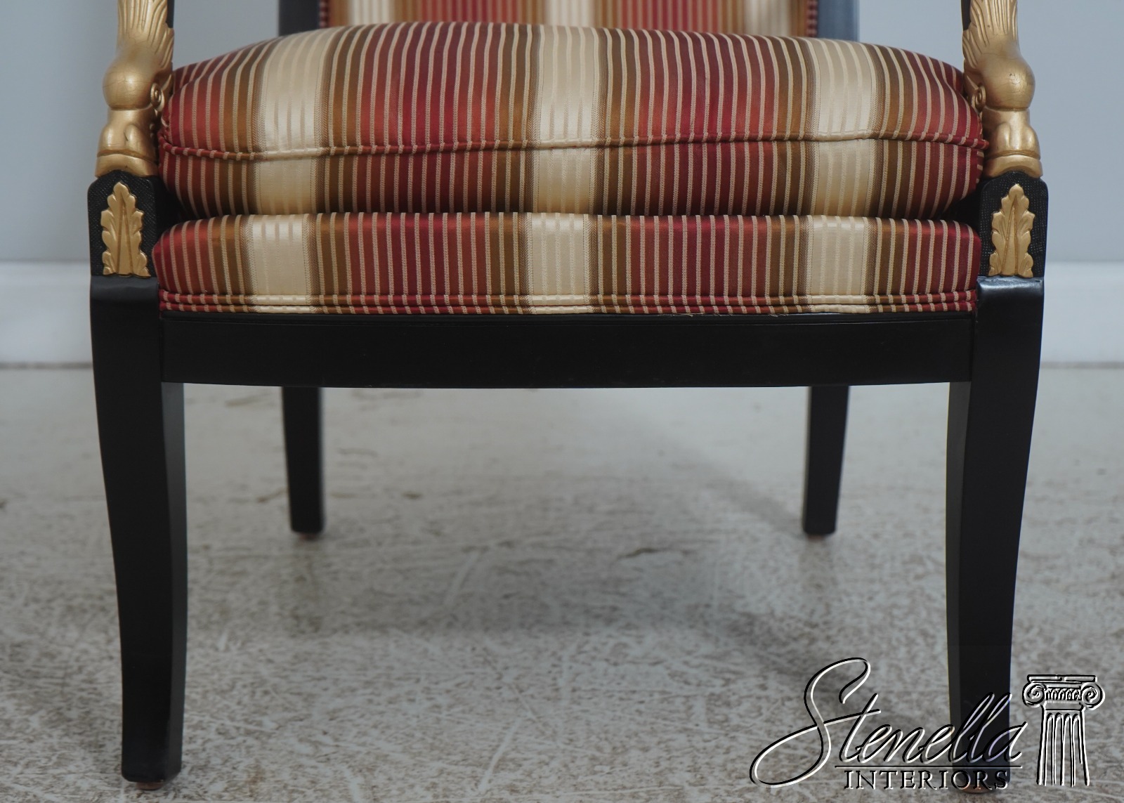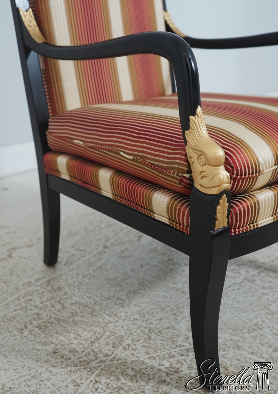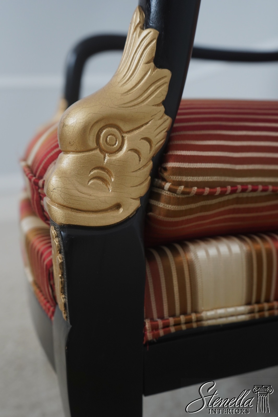 72384: Pair Neoclassical Dolphin Carved Arm Black Chairs