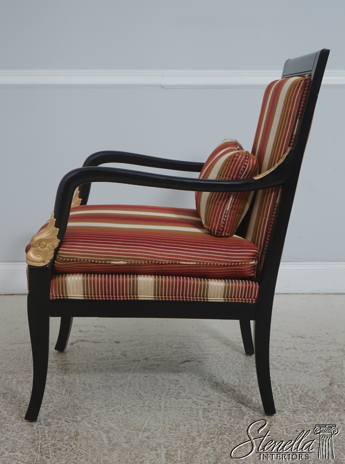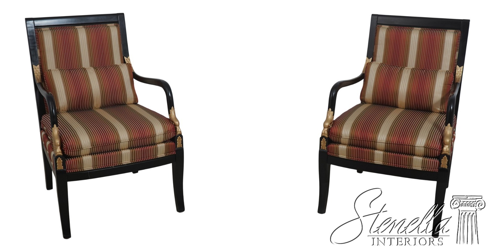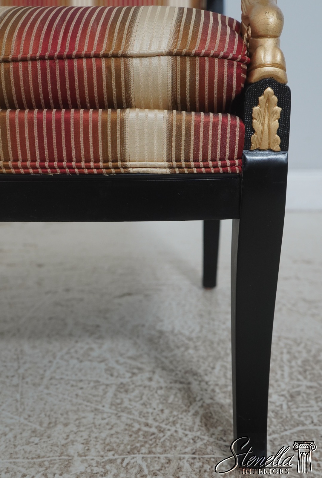 72384: Pair Neoclassical Dolphin Carved Arm Black Chairs