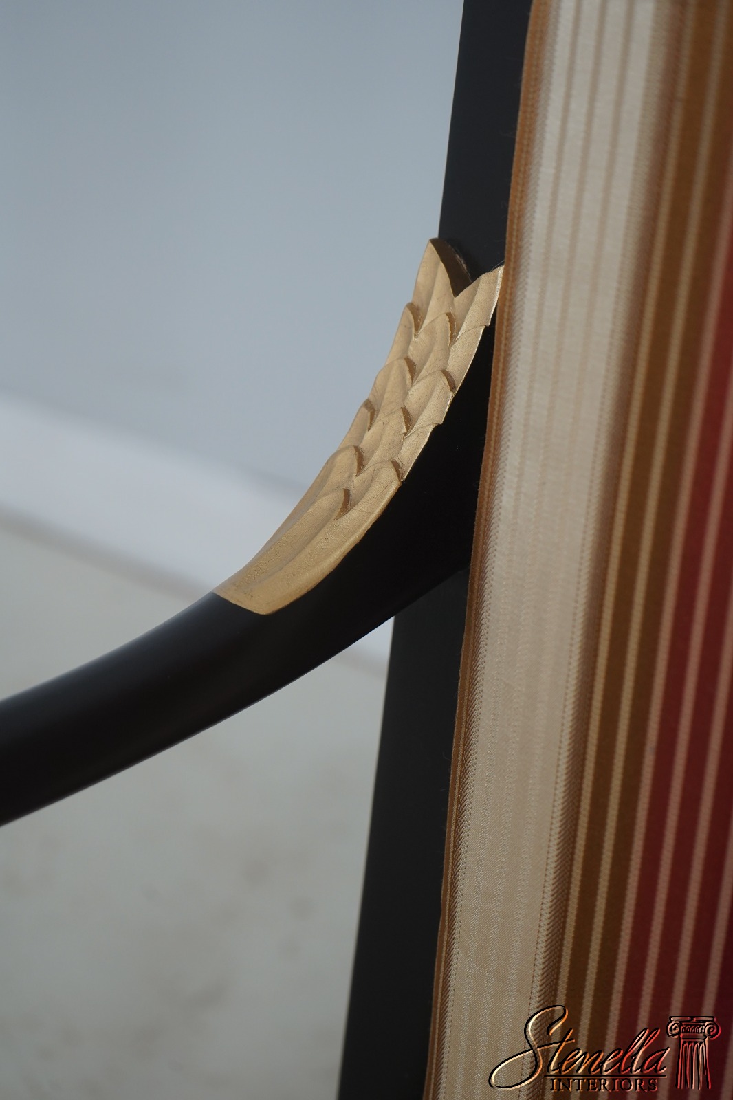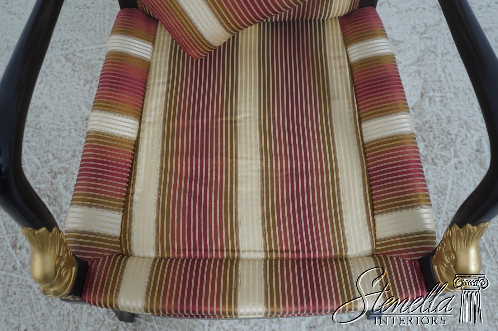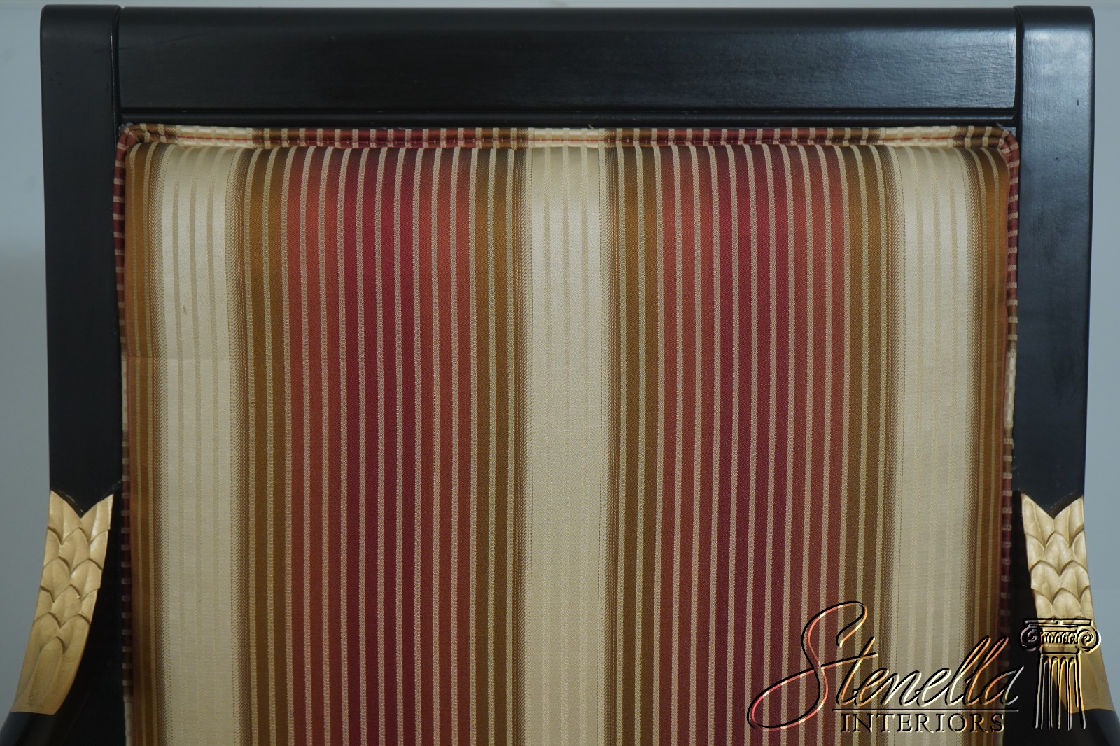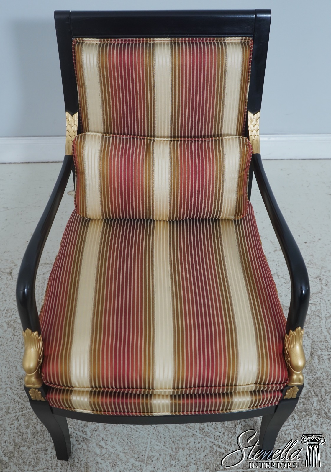 72384: Pair Neoclassical Dolphin Carved Arm Black Chairs