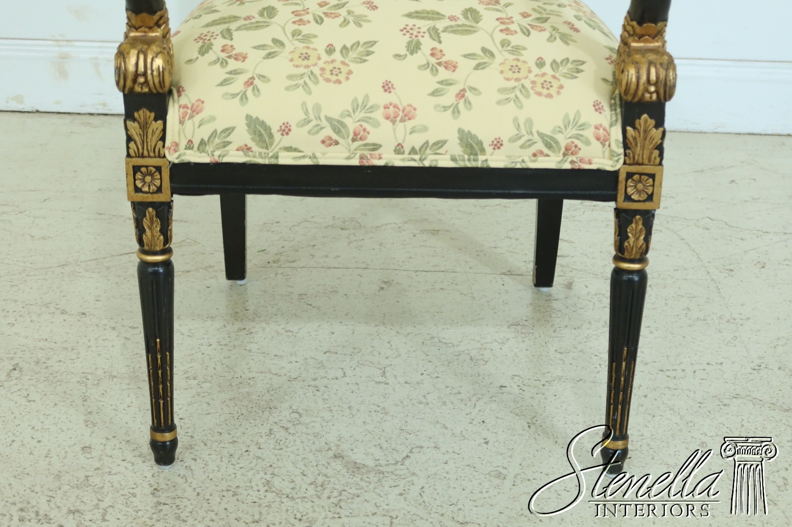 F25718: TROUVAILLES Regency Style Black & Gold Upholstered Armchair
