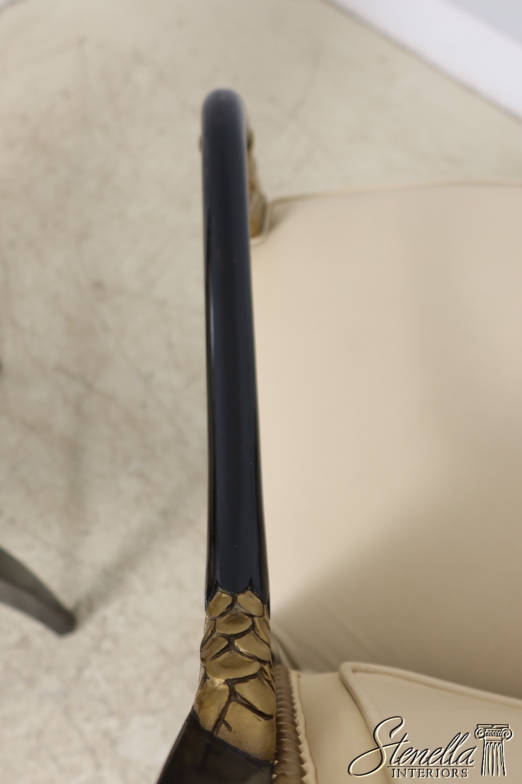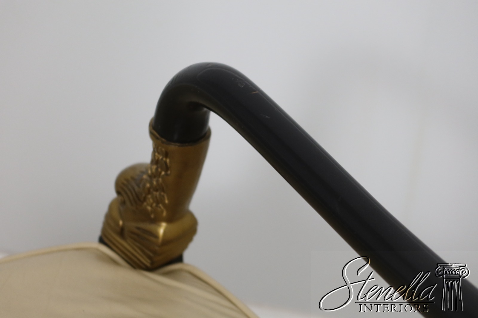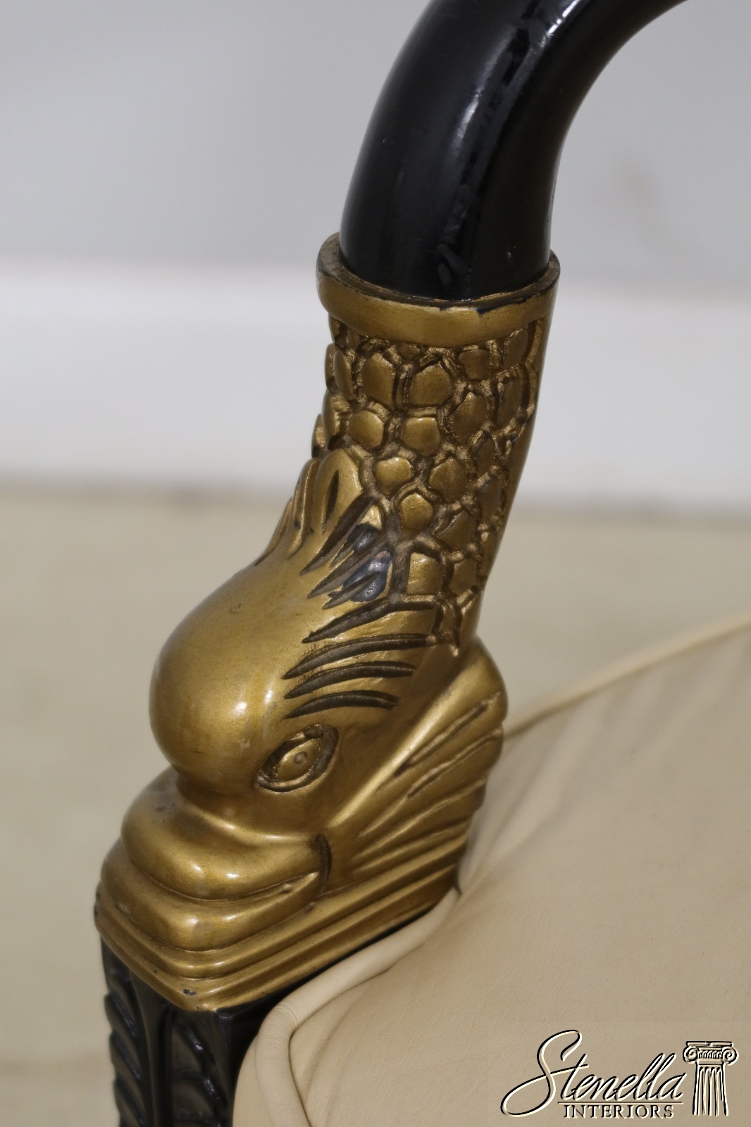 F56077EC: Pair CENTURY Regency Style Black & Gold Dolphin Armchairs