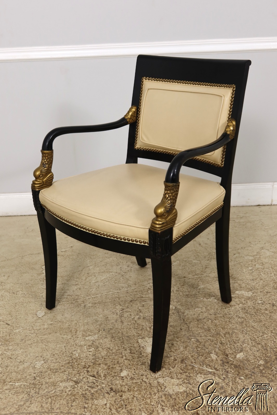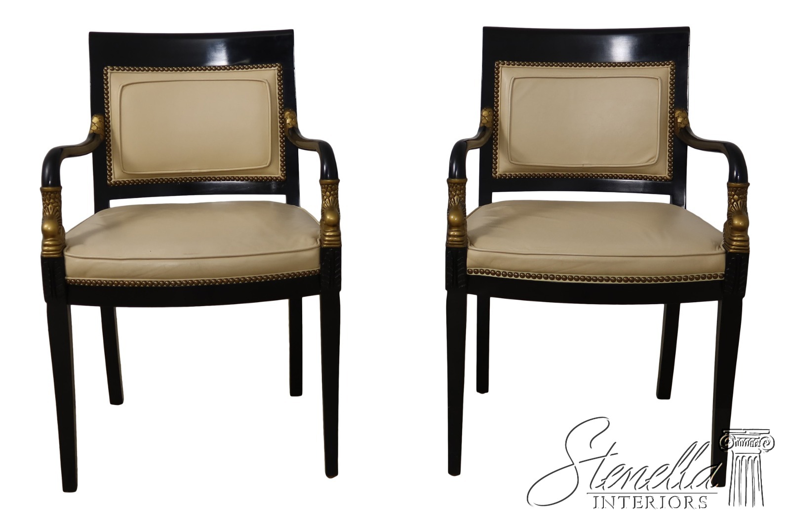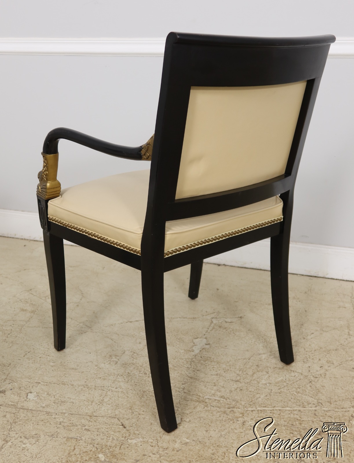 F56077EC: Pair CENTURY Regency Style Black & Gold Dolphin Armchairs