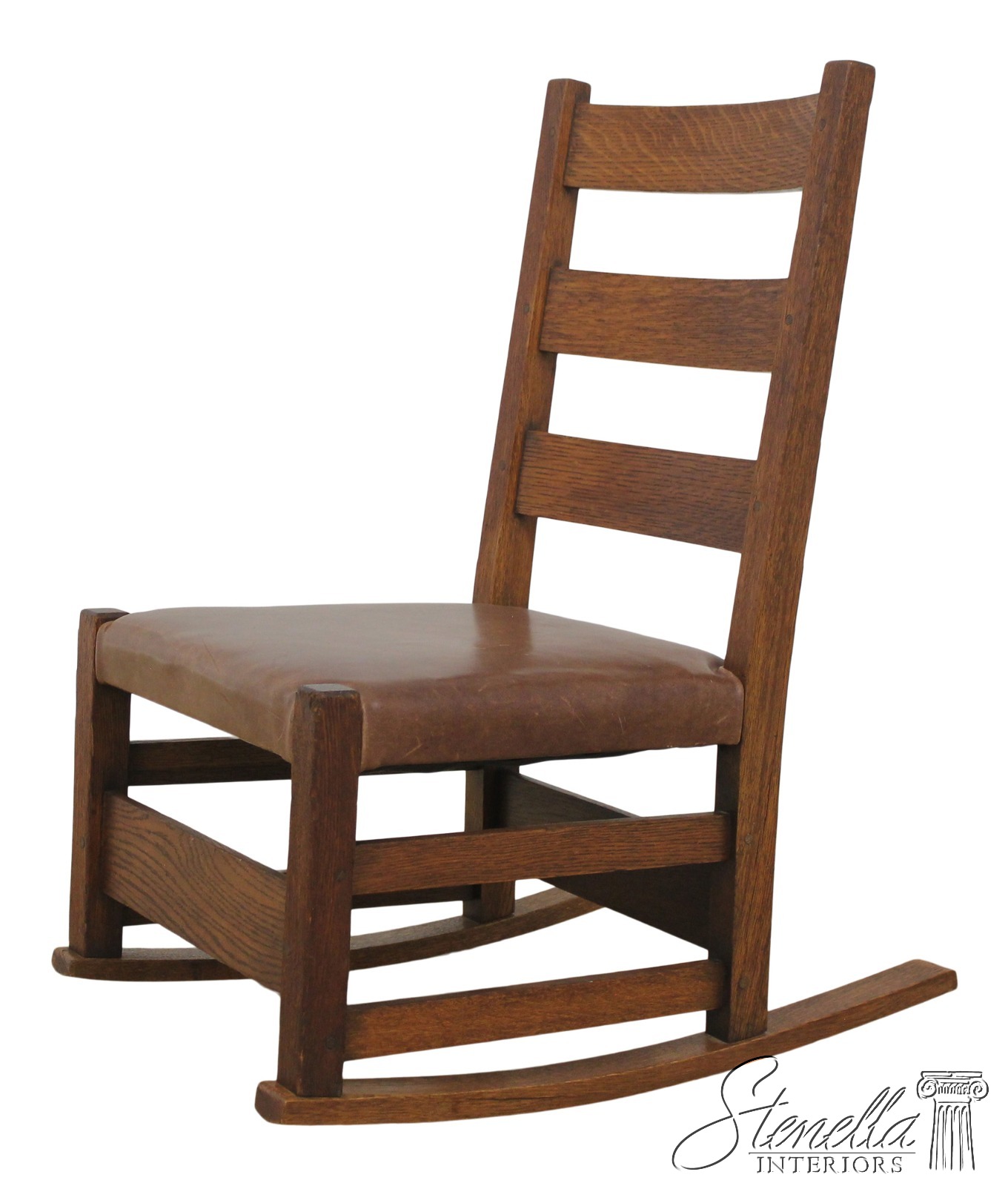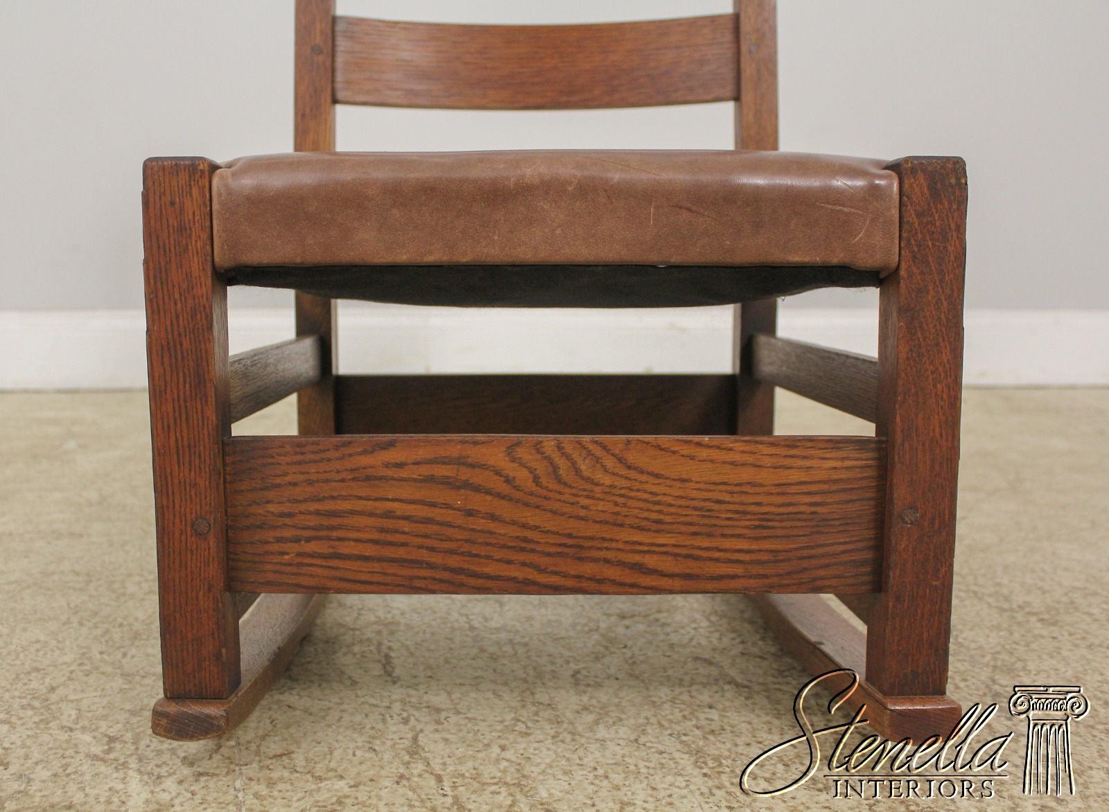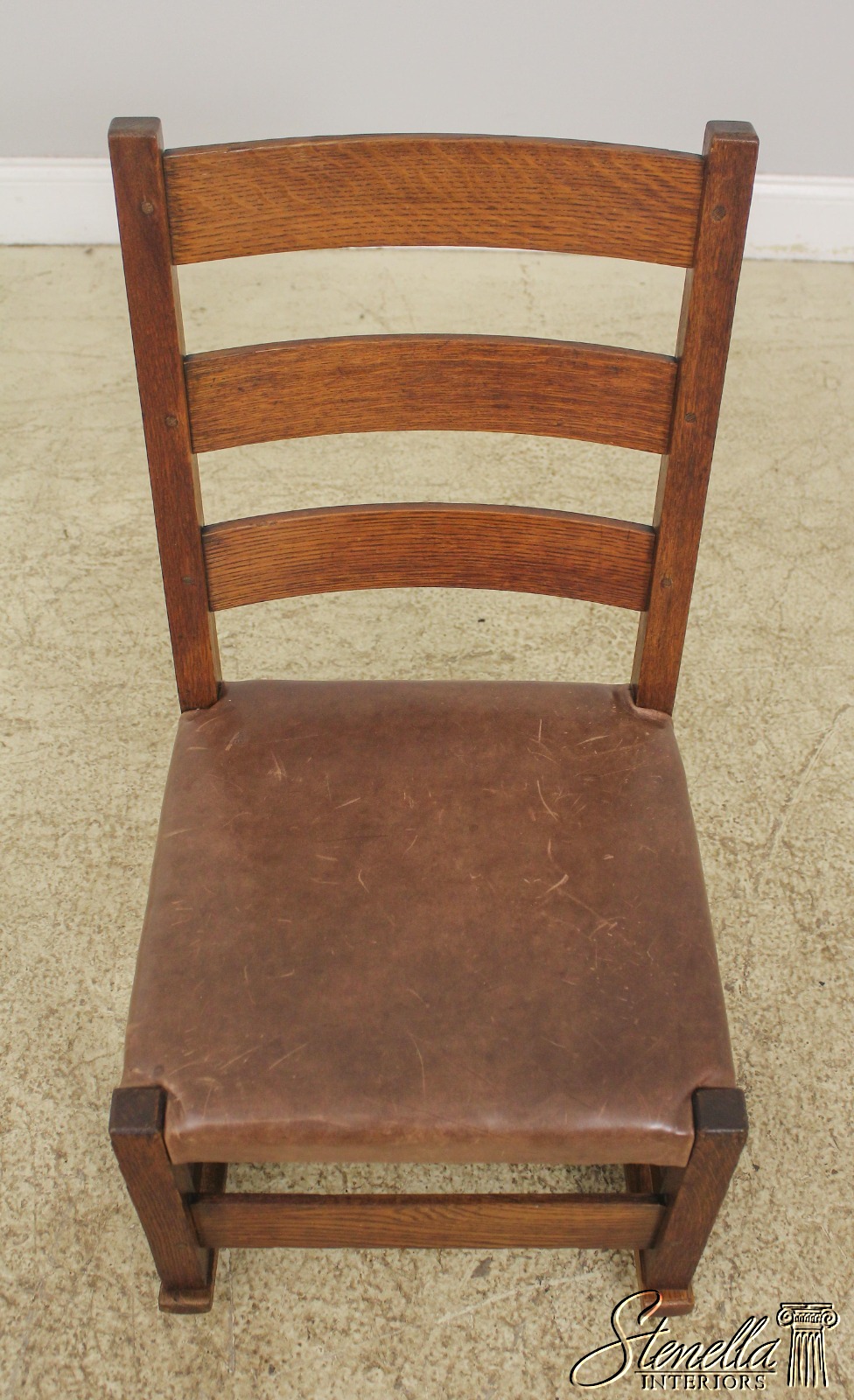 Details: High Quality Construction Original Vintage Chair Brown Leather Seat Original Red Craftsmen Stamp On Inside Back Rail Original Finish w. Some Wear
