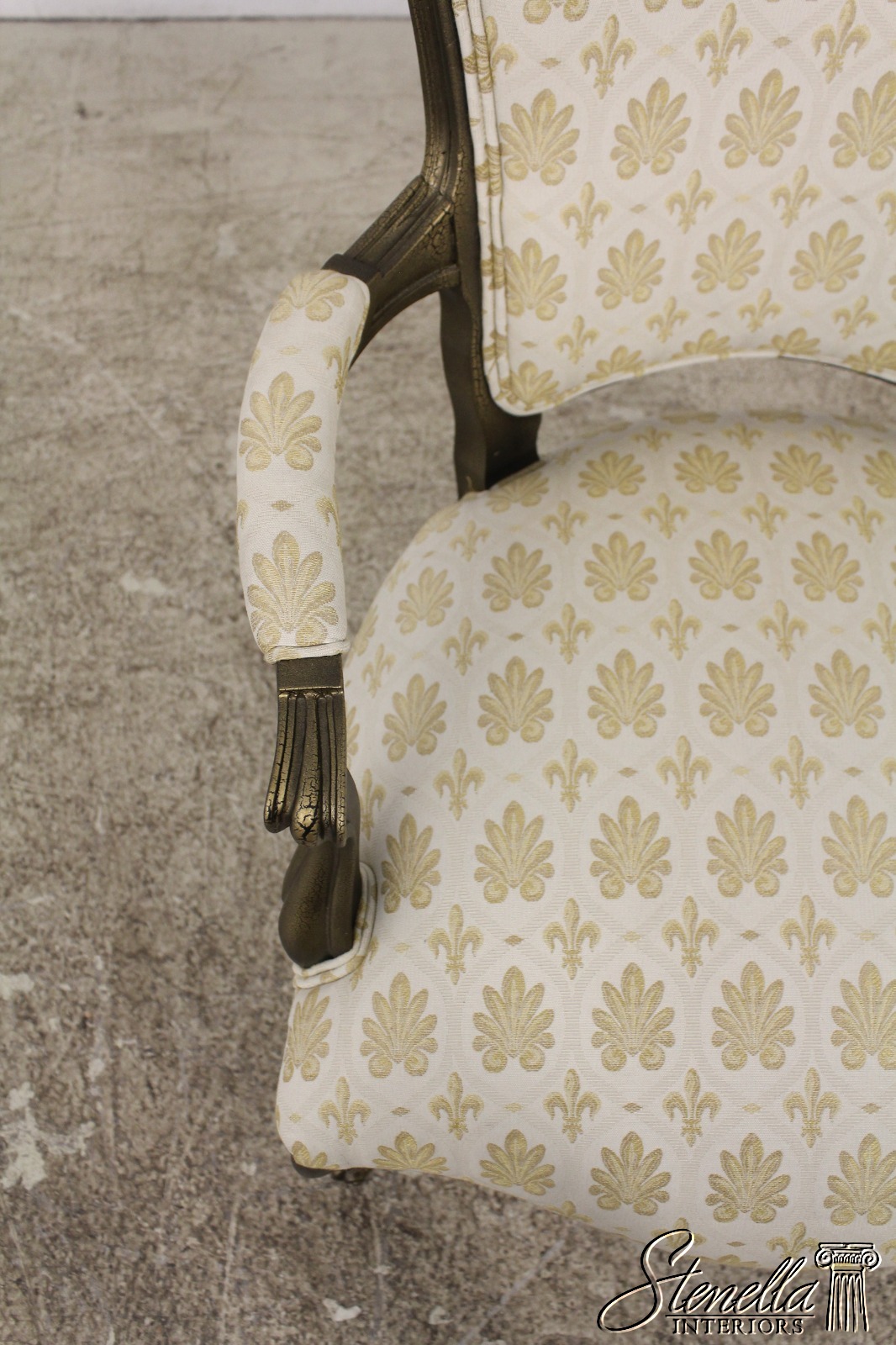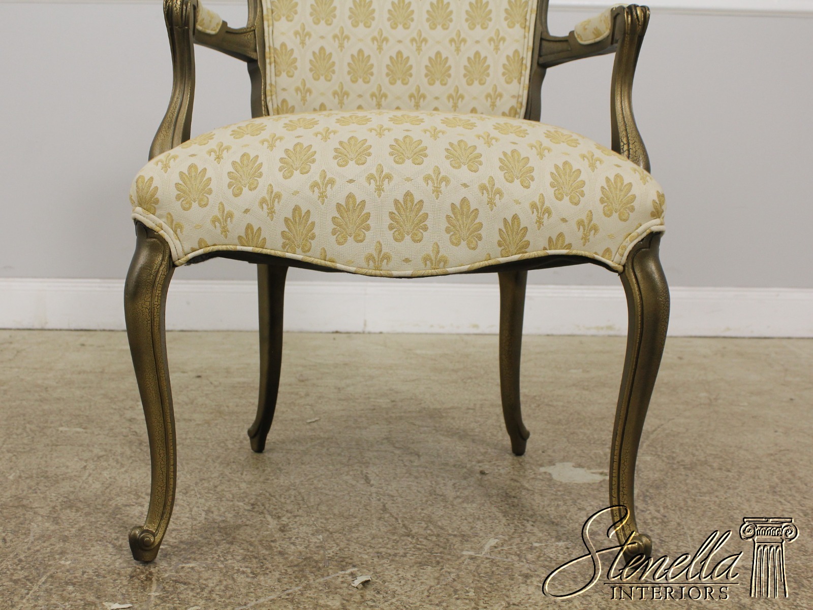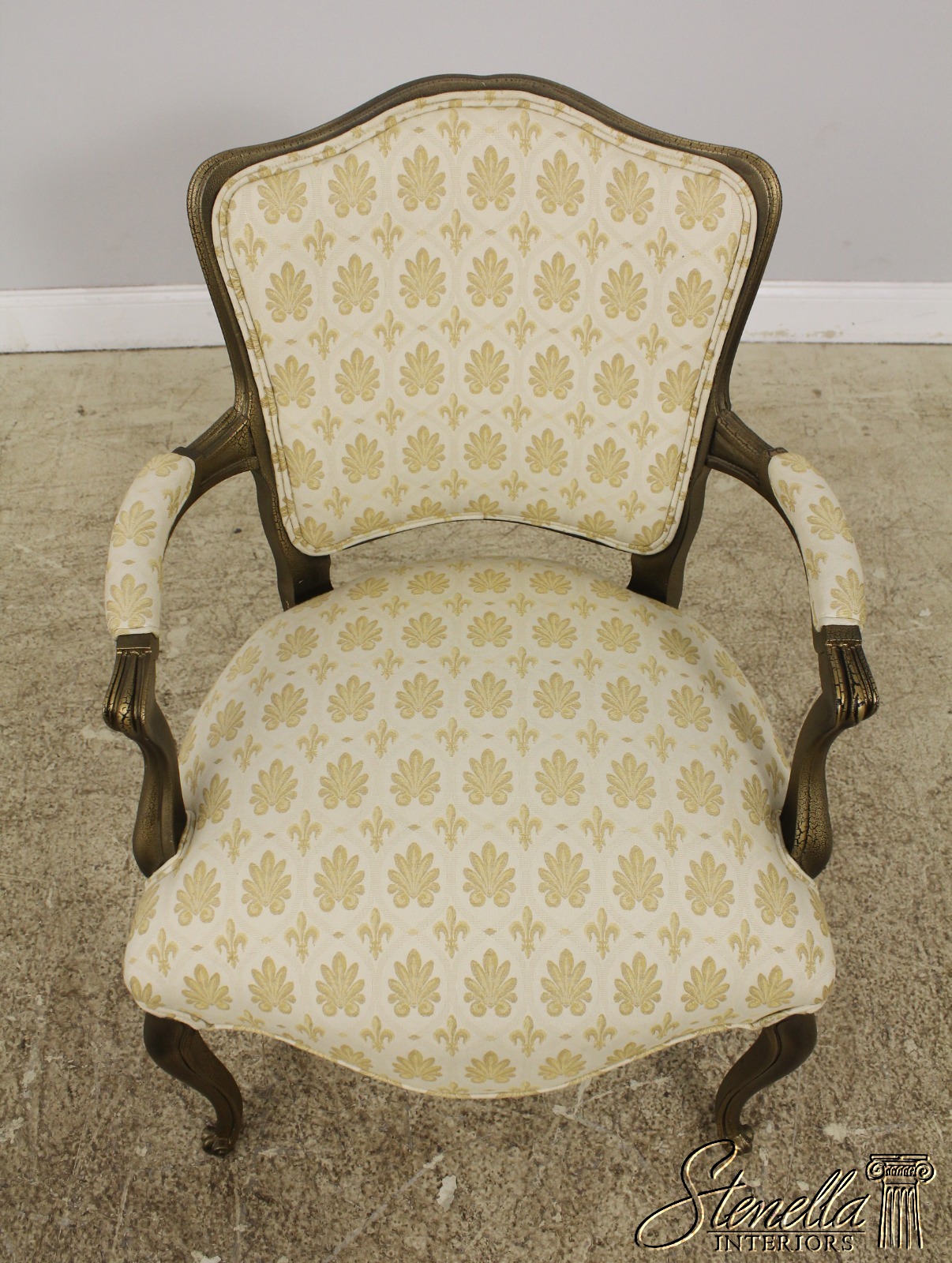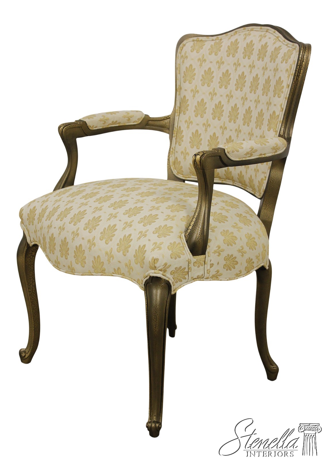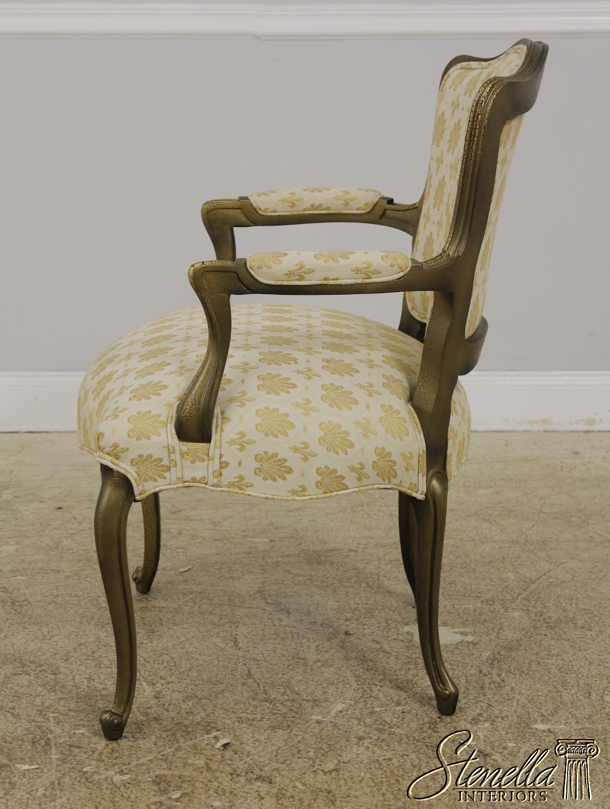 F56591EC: Gold French Louis XV Style Open Arm Upholstered Chair