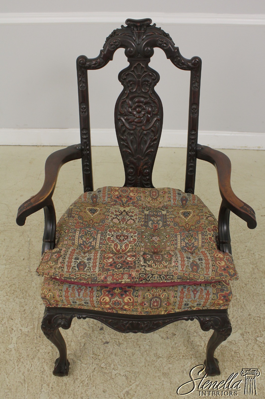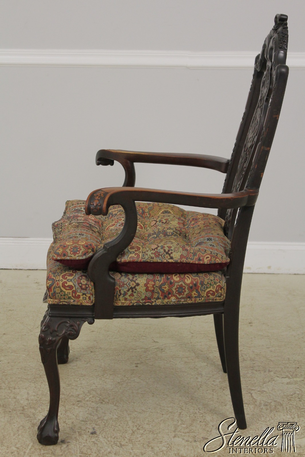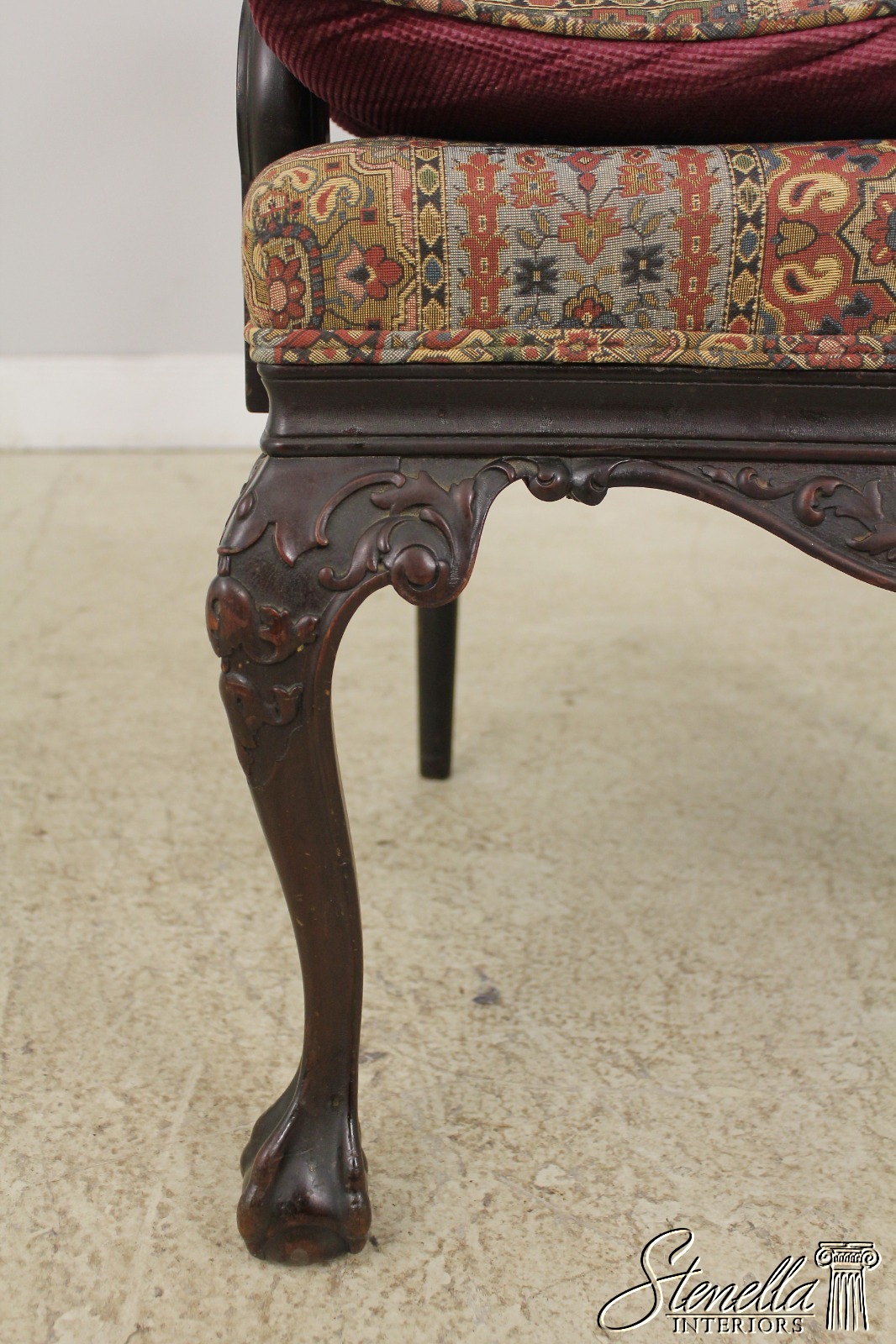 Details: Fine Carved Details High Quality Construction Original Finish w. Normal Wear & Patina 18 C. Design Chippendale Style Full Carved Back Custom Tufted Upholstered Seat